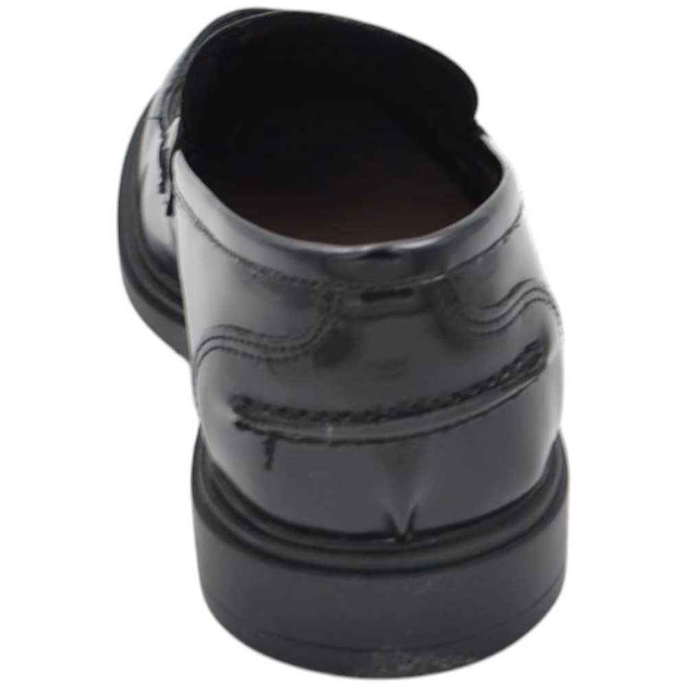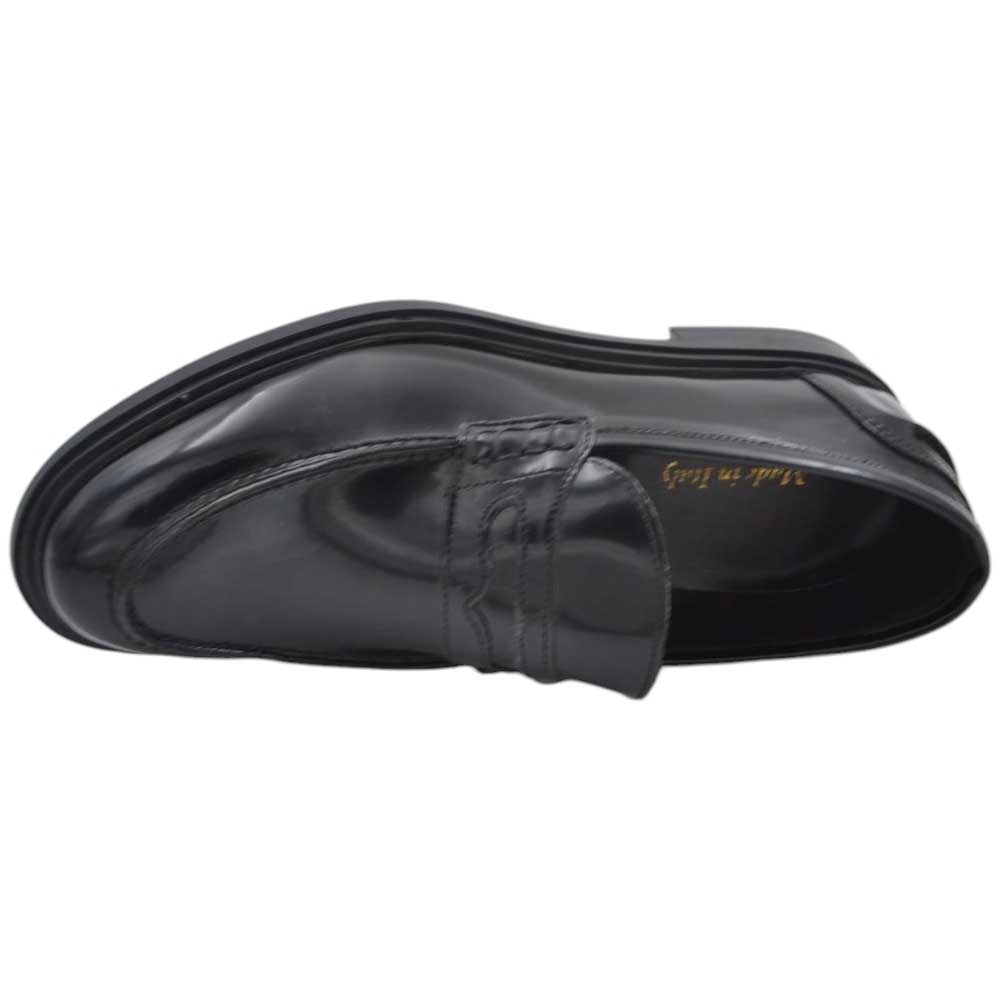 Scarpa mocassino uomo con morsetto argento vera pelle di nappa nero cucita a mano fondo sottile in gomma antiscivolo.