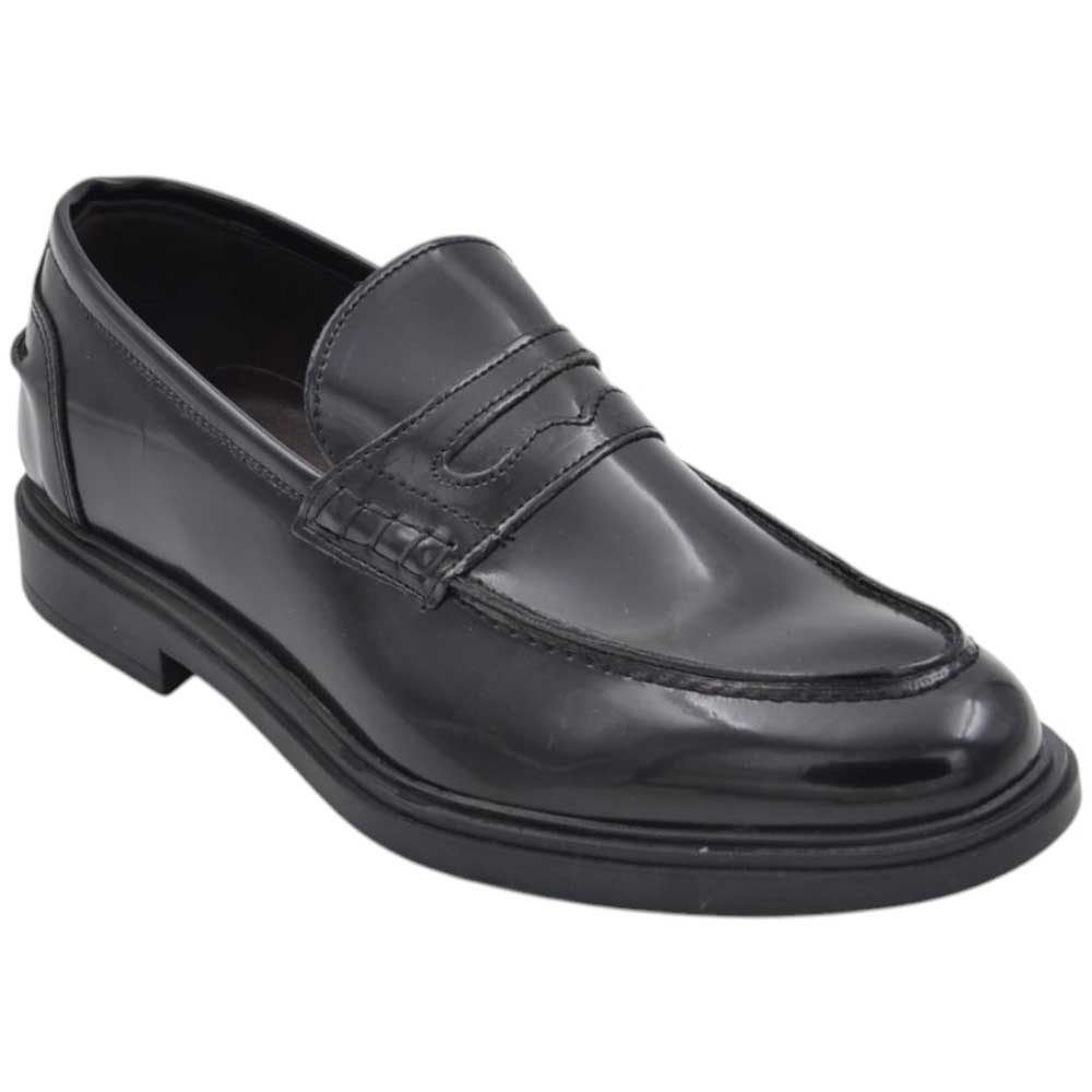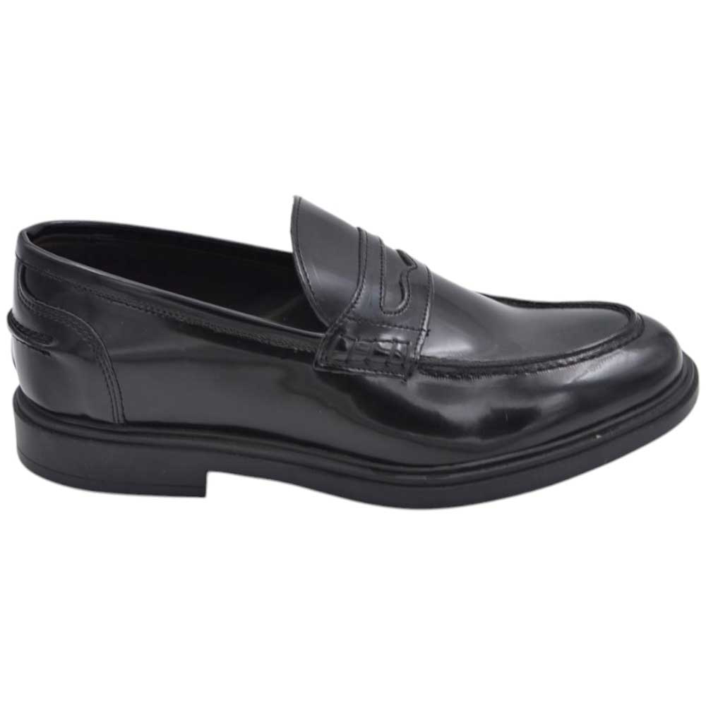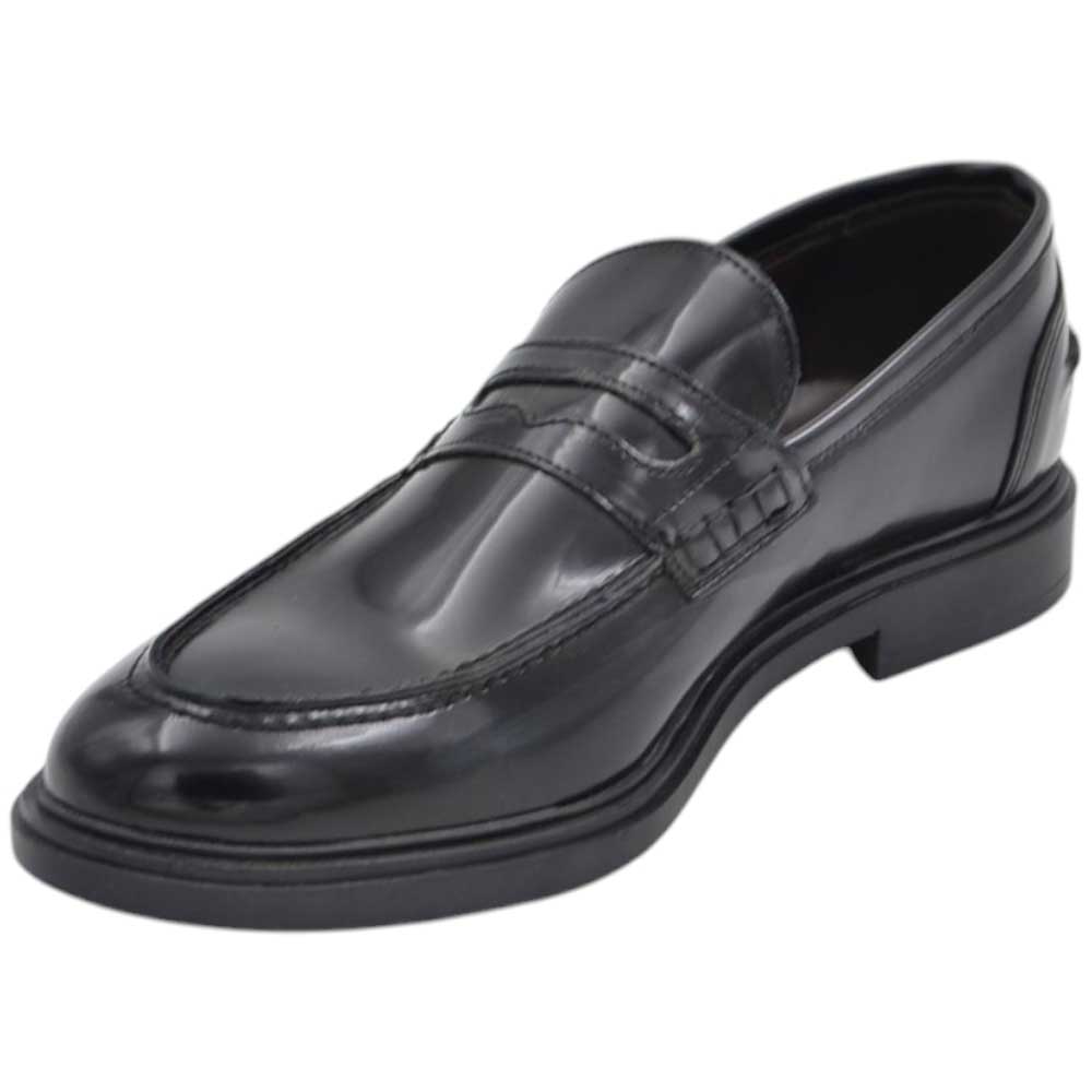 Scarpe uomo mocassino con bendina nera in vera pelle abrasivata business fondo gomma sottile antiscivolo