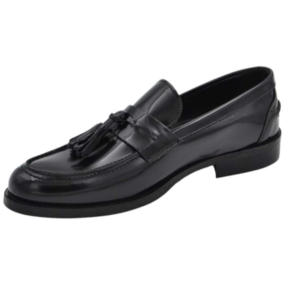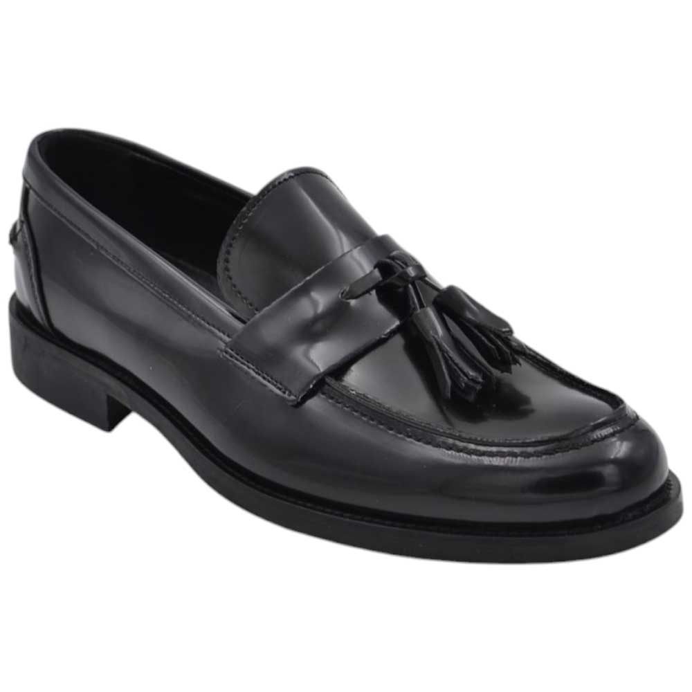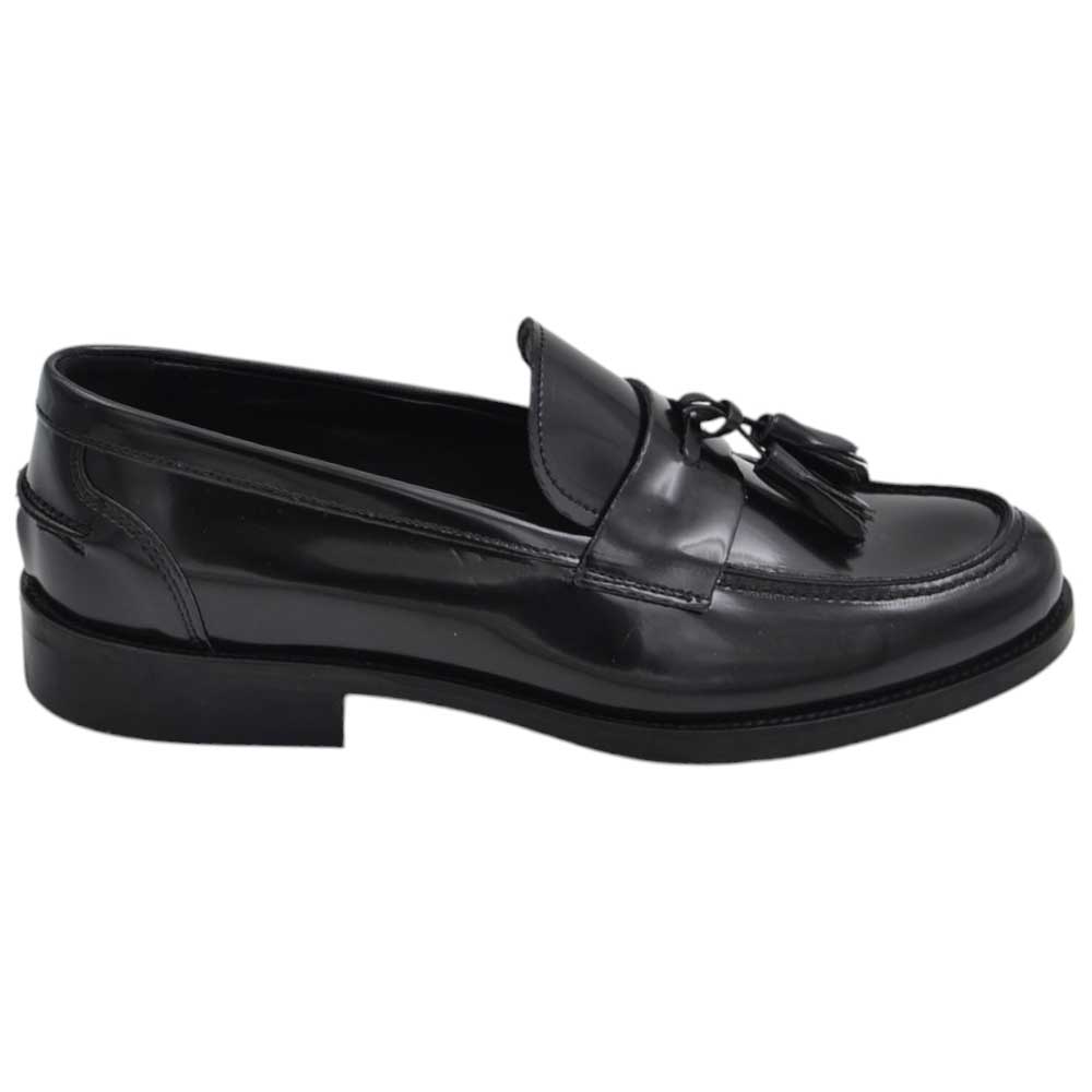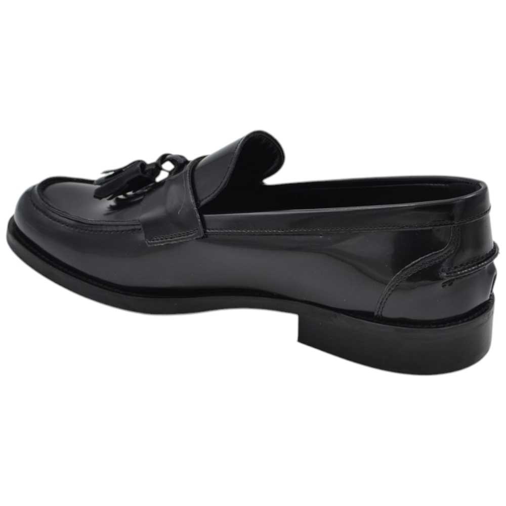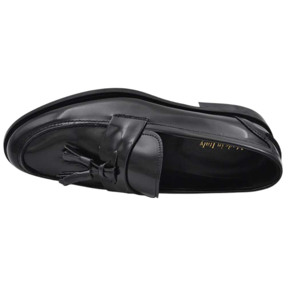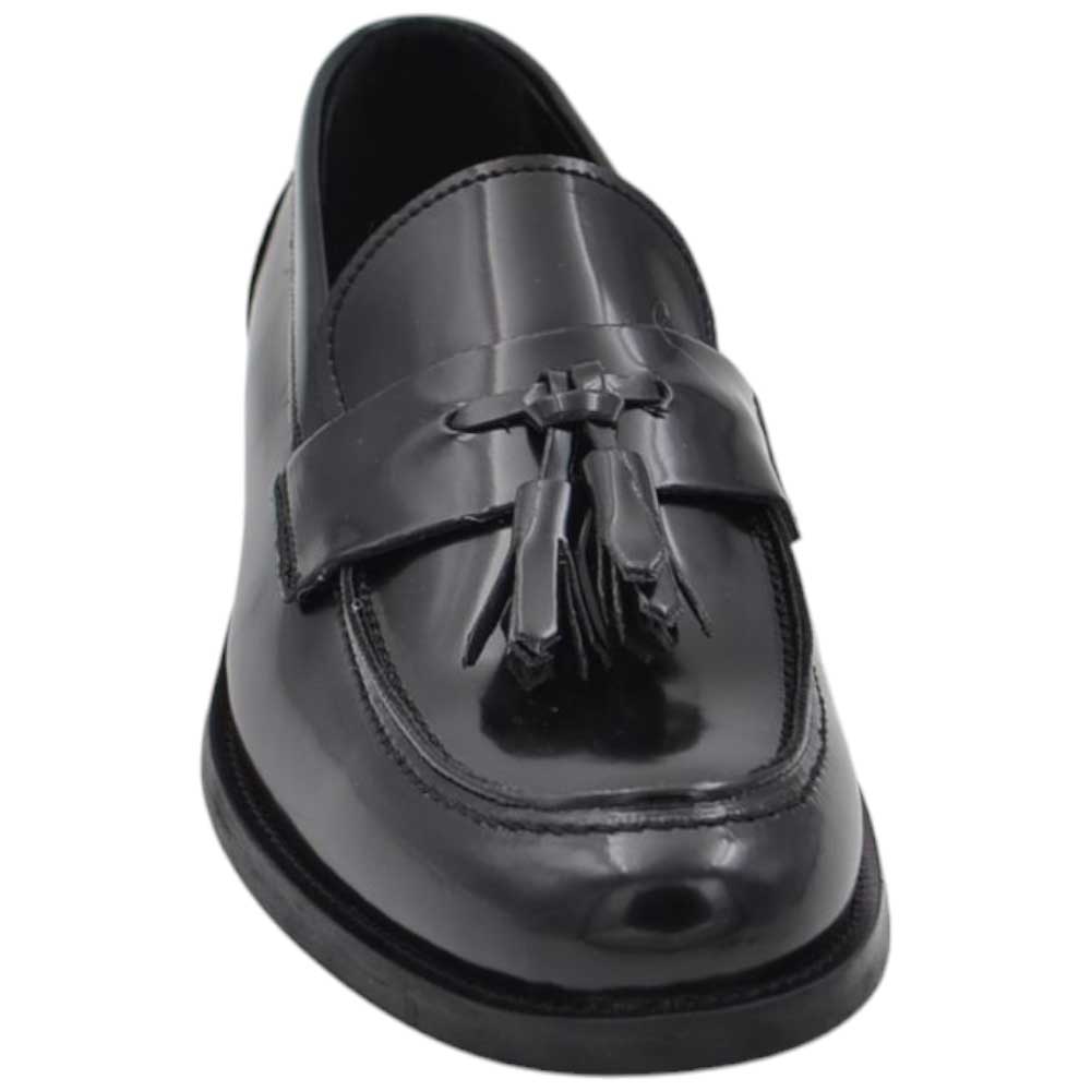 Scarpe uomo mocassini inglese college nappine bon bon vera pelle nero semilucido fondo cuoio con antiscivolo