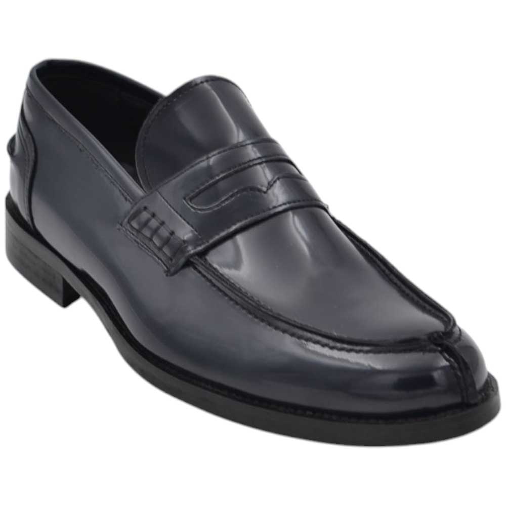 Mocassini uomo scarpa ls college bendina in vera pelle nappa nero spazzolato suola exclusive combat alta.