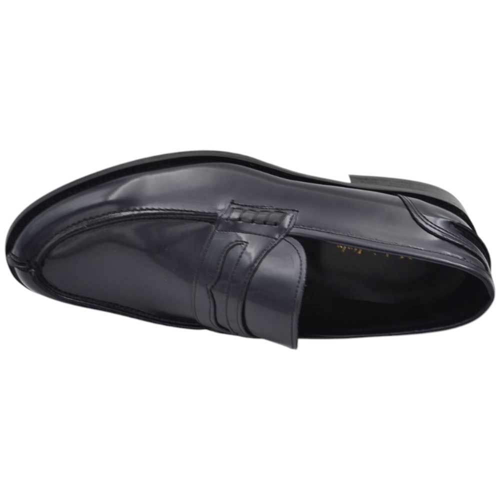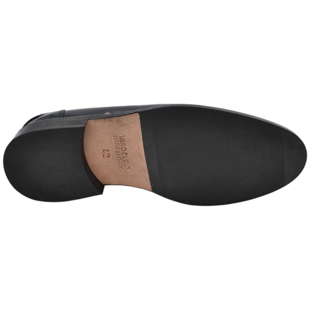 Scarpe uomo mocassino con bendina nero in vera pelle semilucida business fondo cuoio con antiscivolo