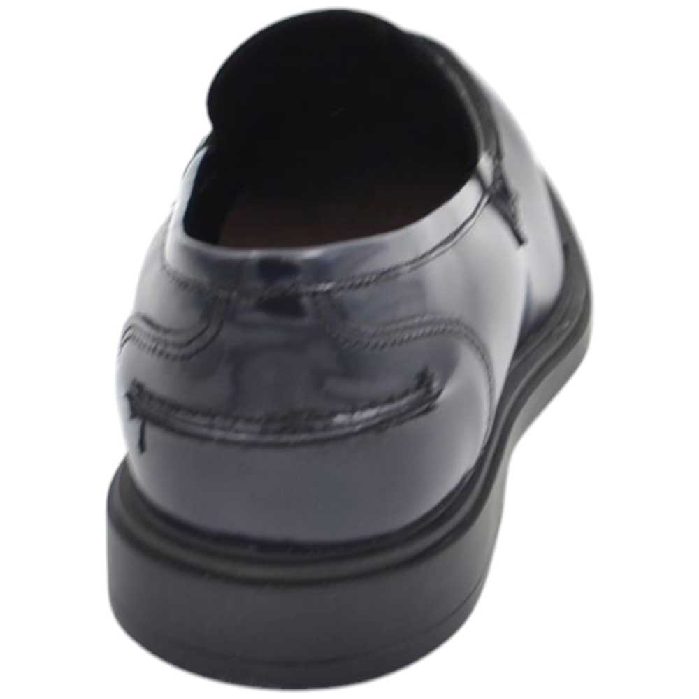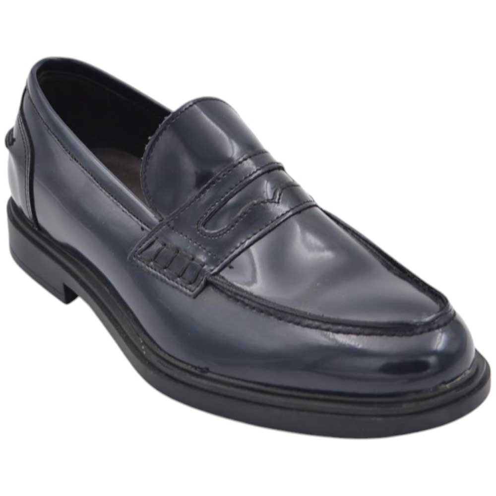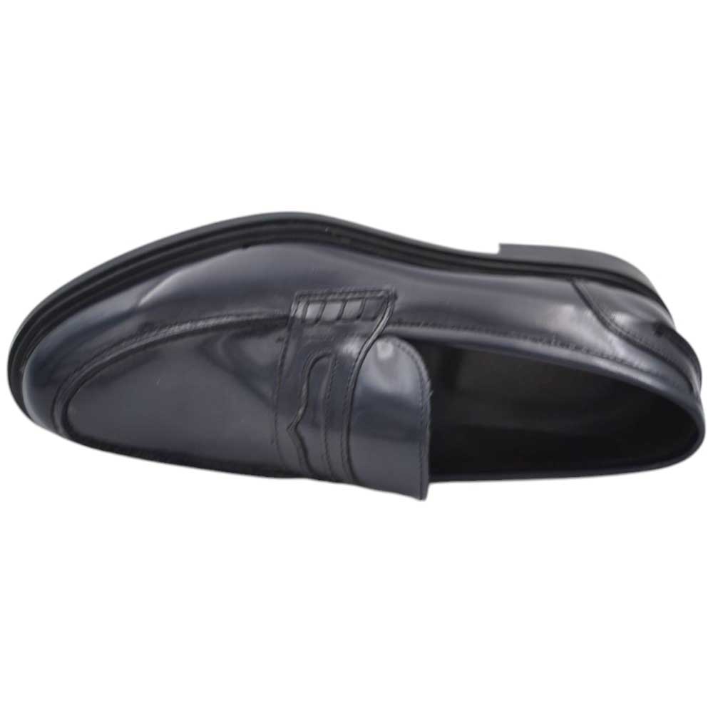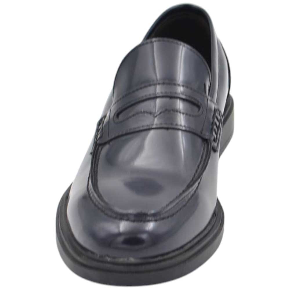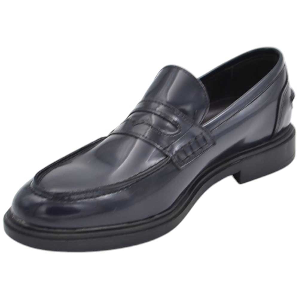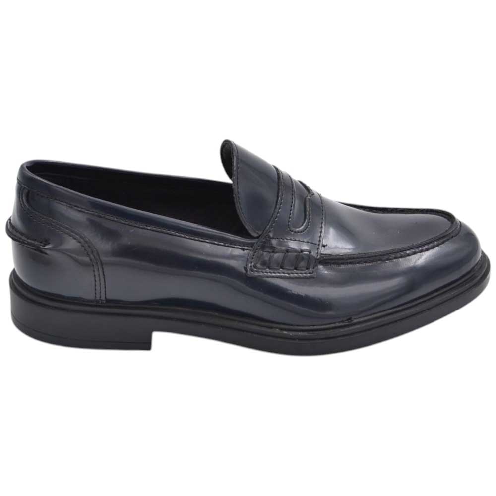 Scarpe uomo mocassini inglese college vera pelle semilucida blu con bendina made in italy fondo gomma