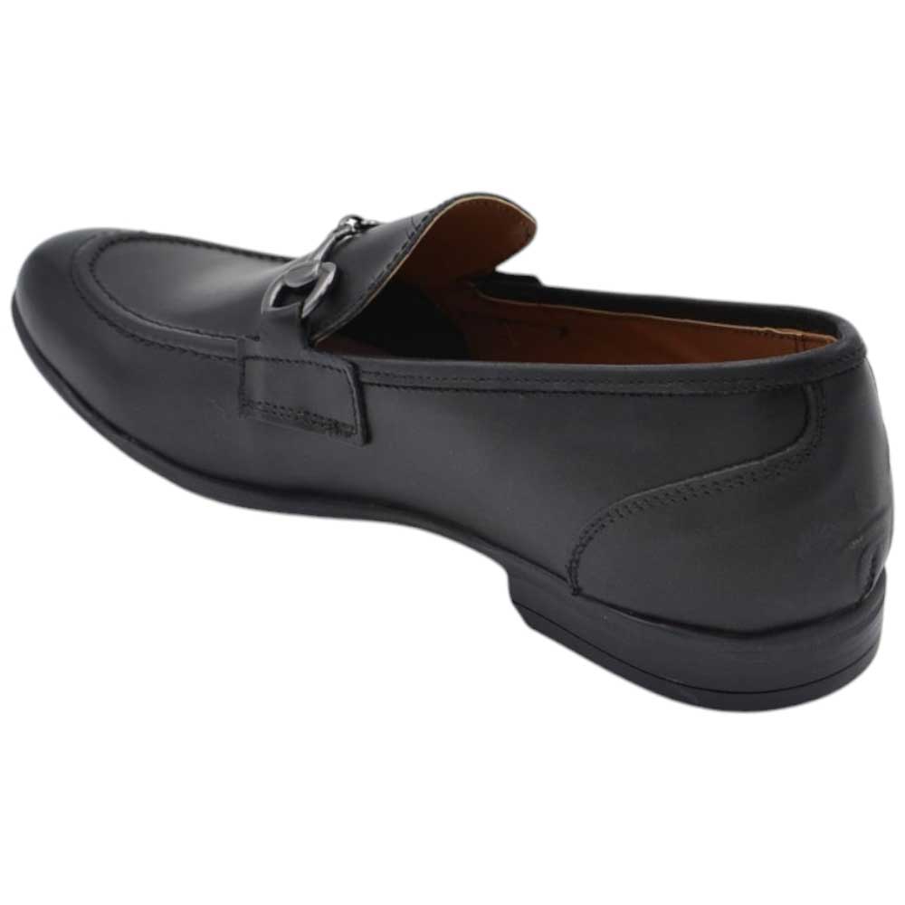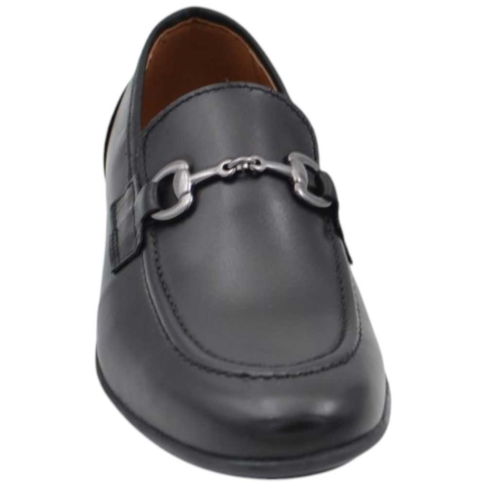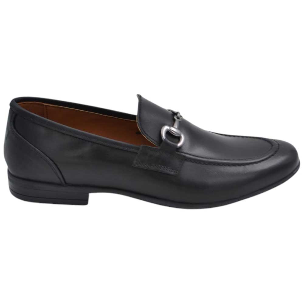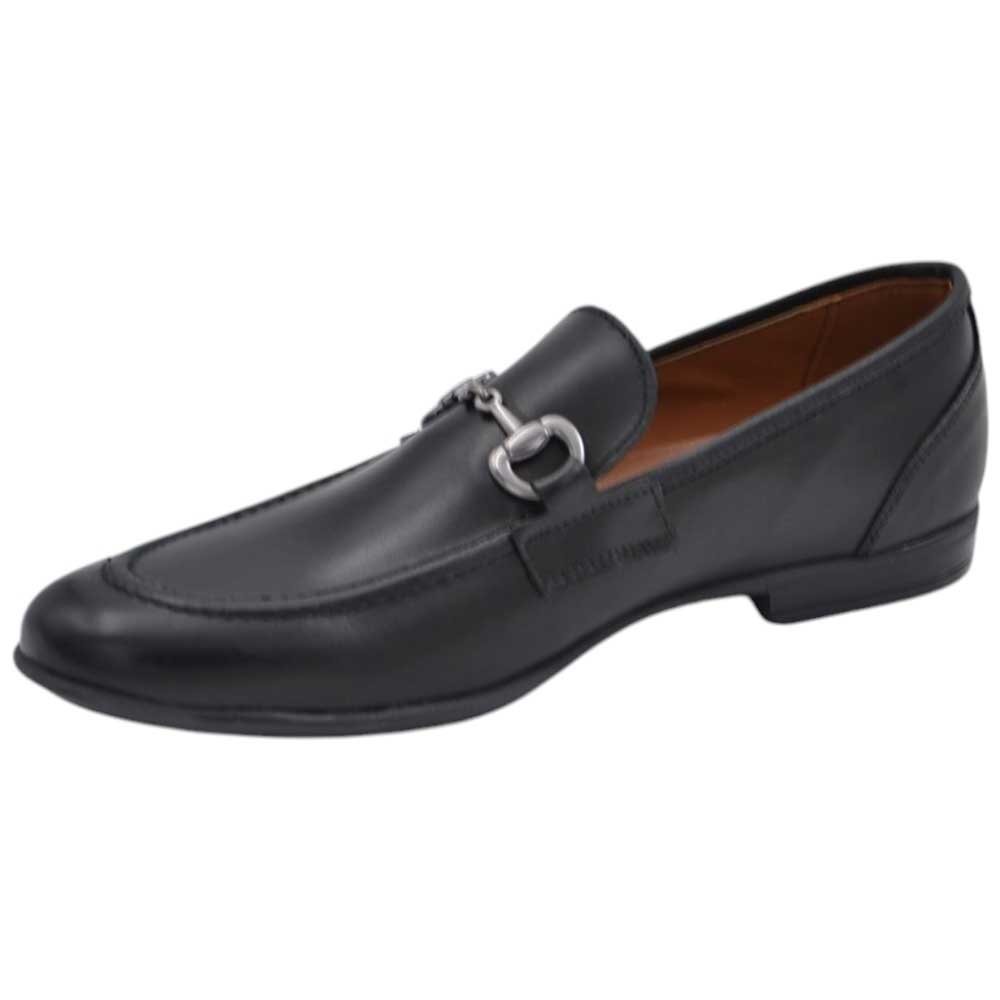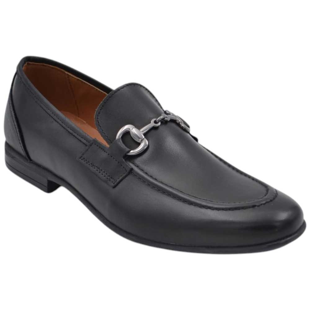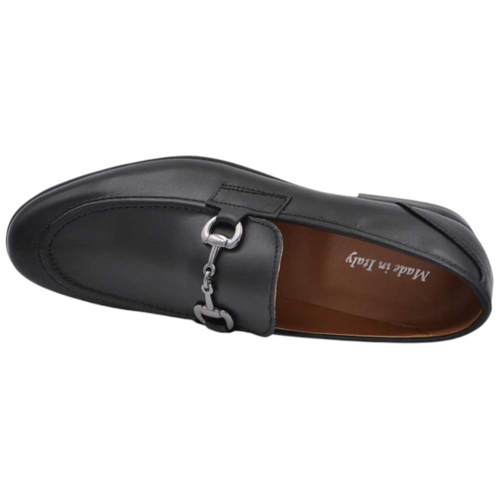 Scarpa mocassino uomo con morsetto argento vera pelle di nappa nero cucita a mano fondo sottile in gomma antiscivolo