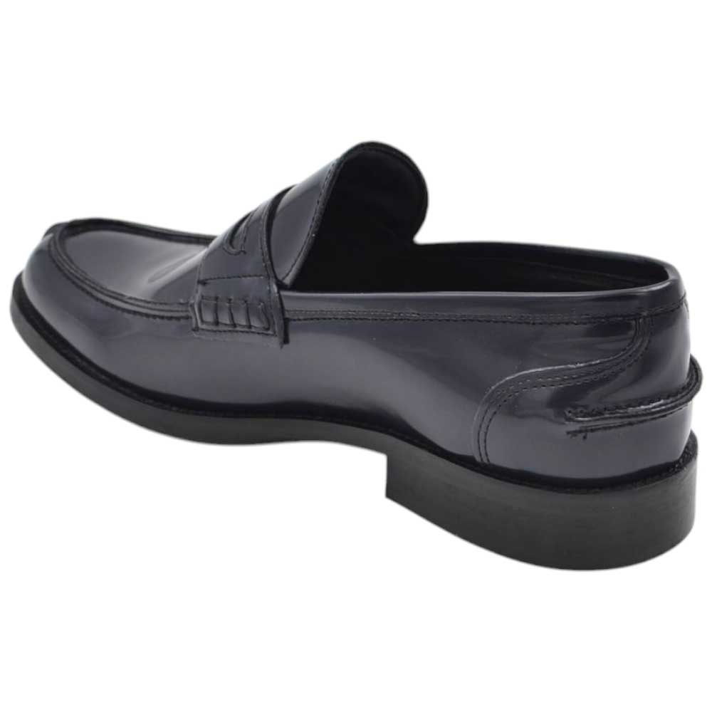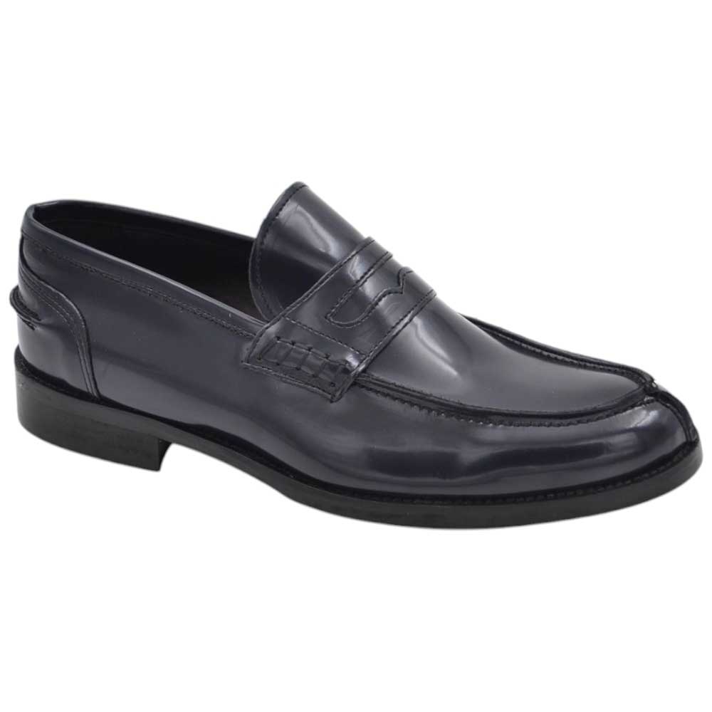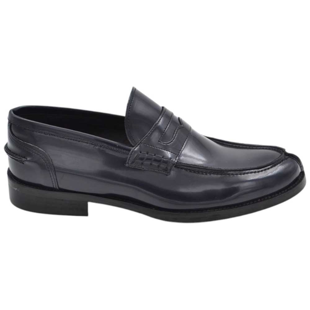 Scarpe uomo mocassino con bendina blu in vera pelle semilucida business fondo cuoio con antiscivolo
