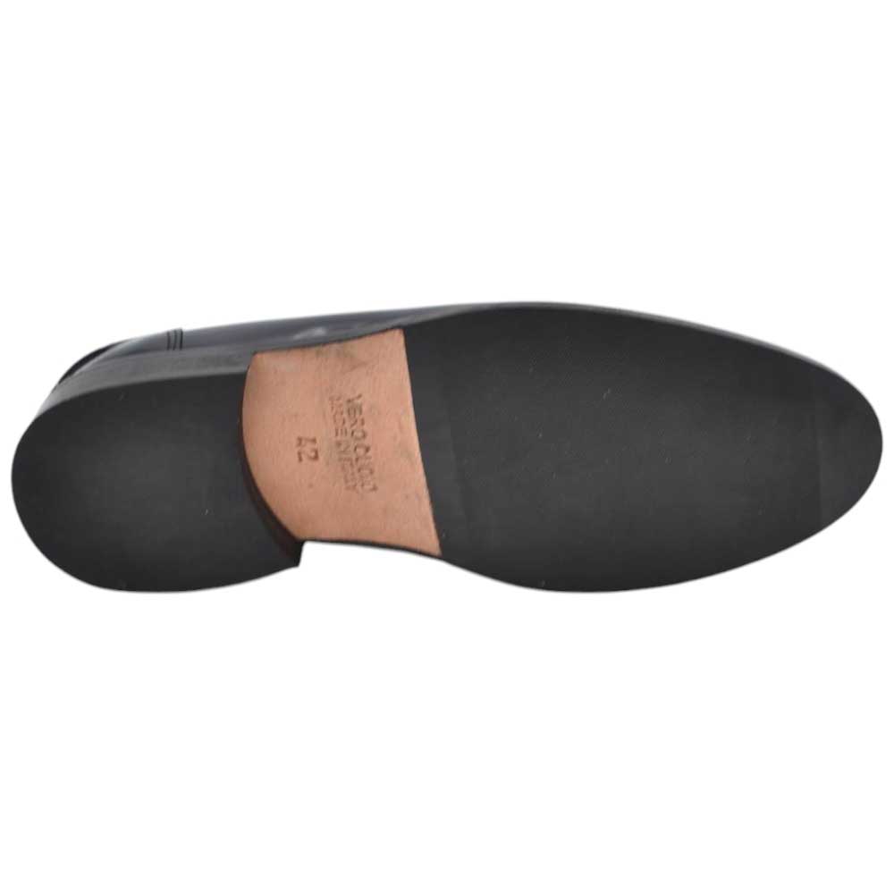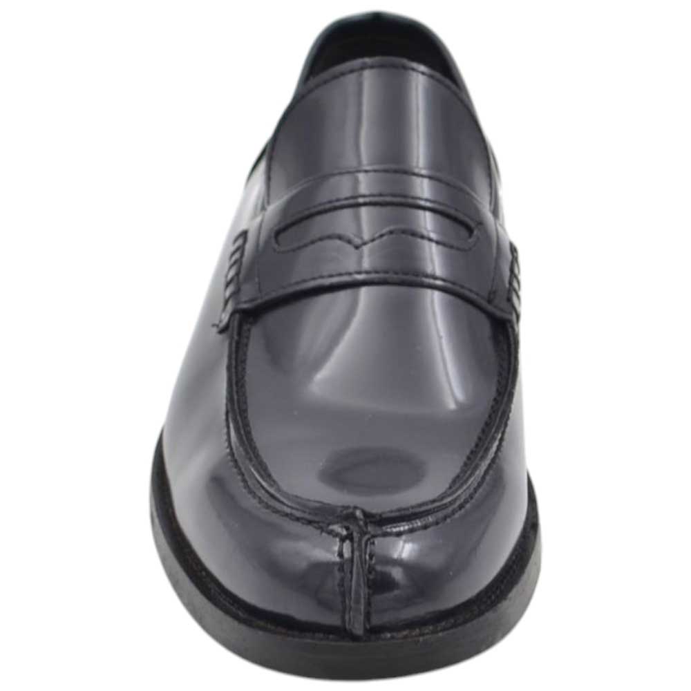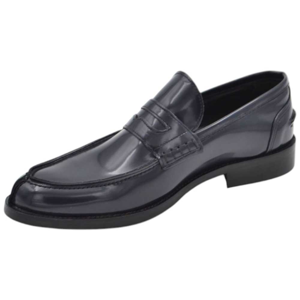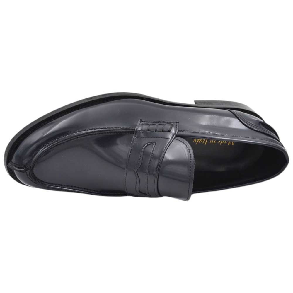 Scarpe uomo mocassino con bendina blu in vera pelle semilucida business fondo cuoio con antiscivolo