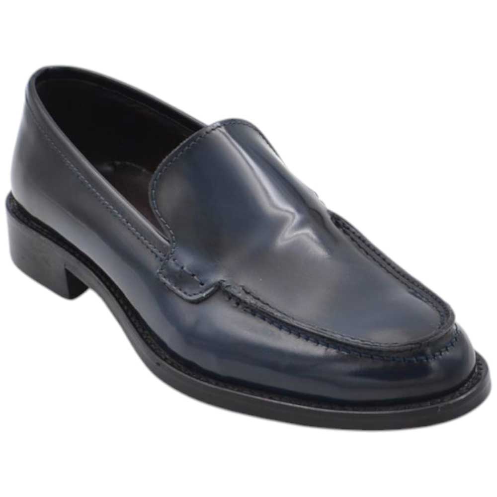 Scarpe uomo mocassini inglese college liscio vera pelle blu elegante made in italy fondo cuoio antiscivolo cerimonia