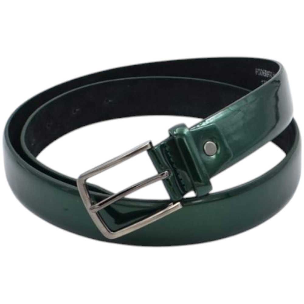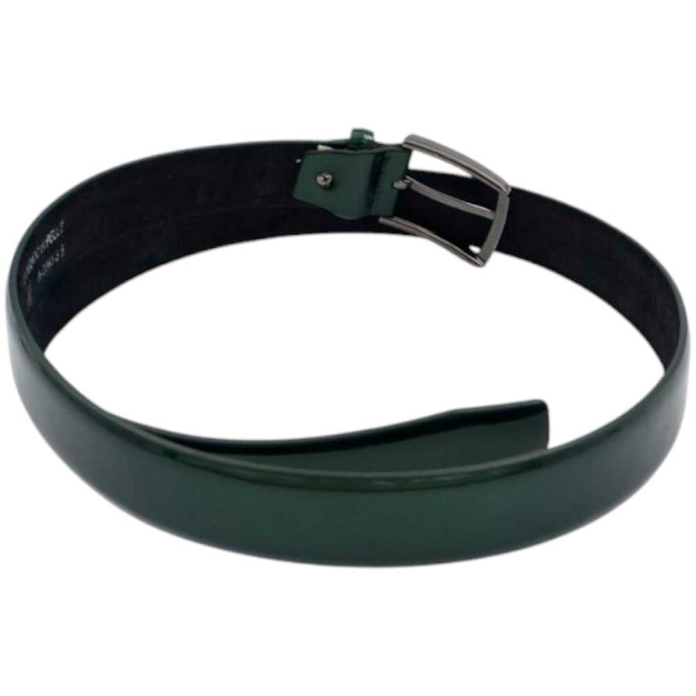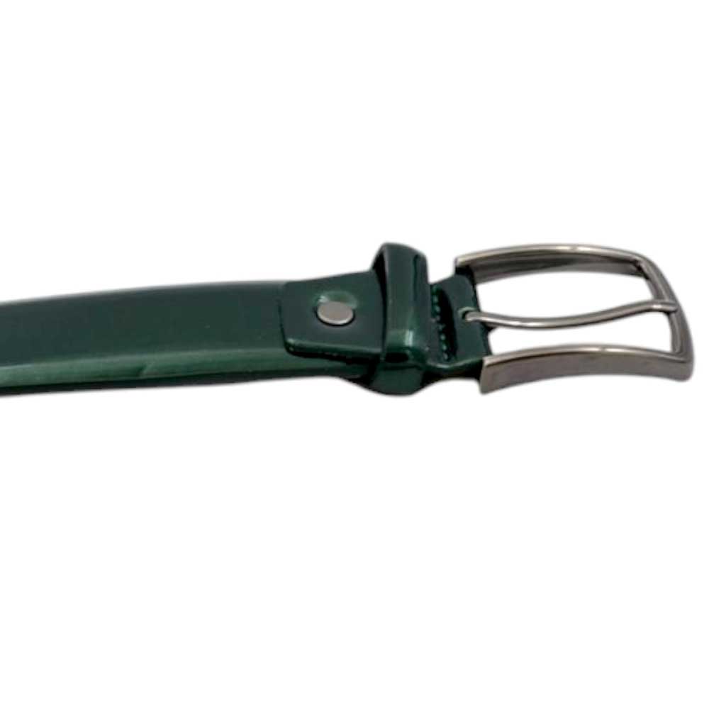 Cintura uomo vera pelle verde lucido con doppia cucitura fibbia in metallo cintura regolabile linea cerimonia
