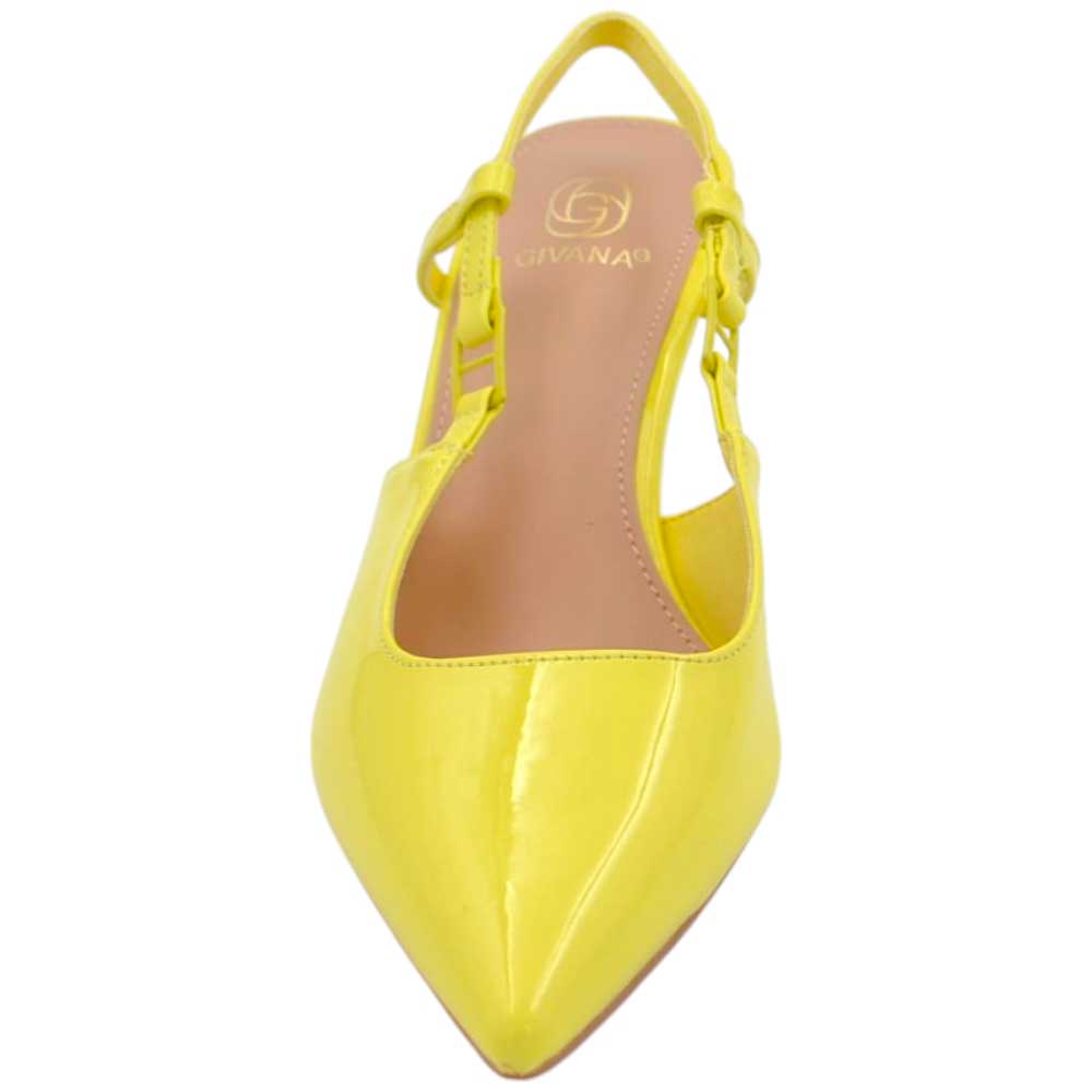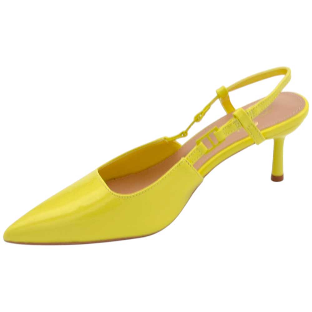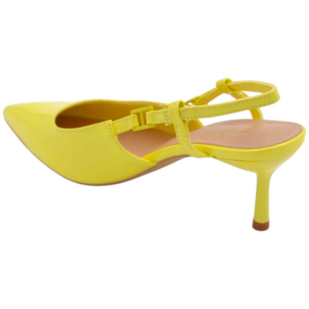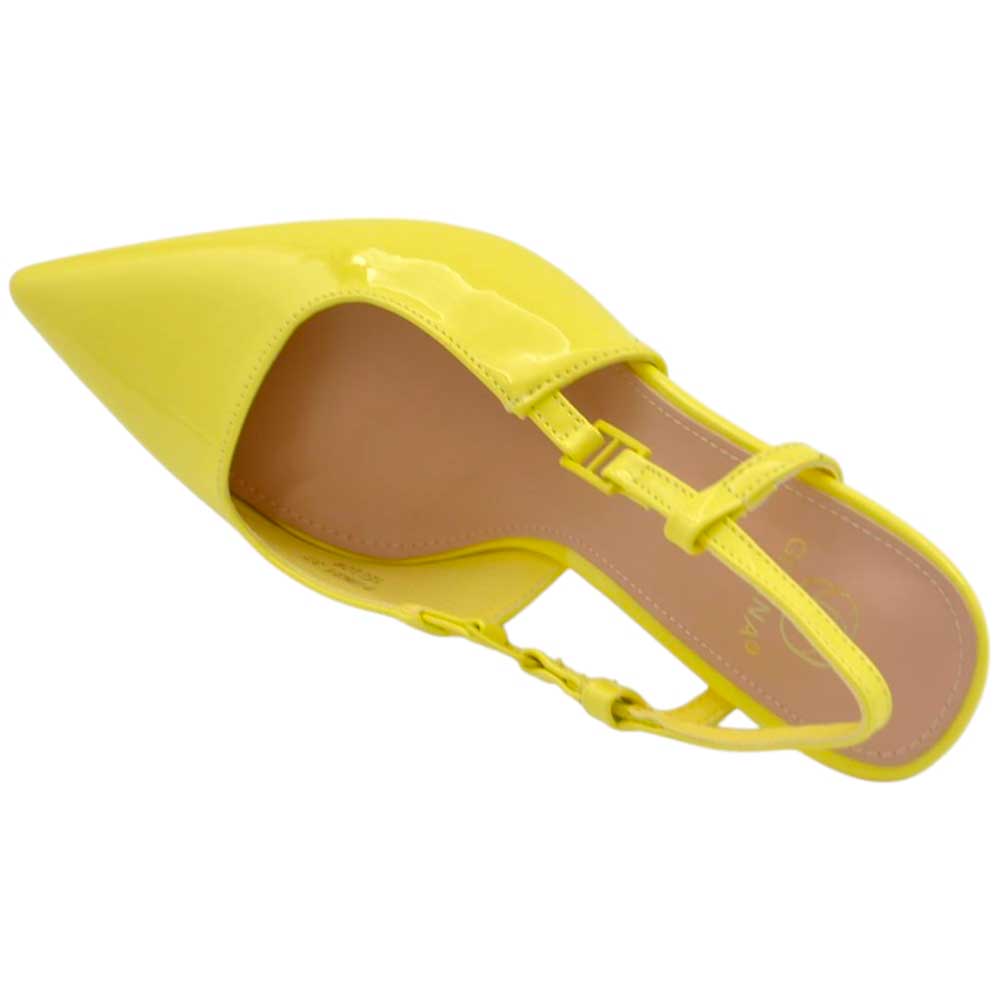 Decolette' donna in pelle lucida gialla punta tacco sottile 5 cm cinturino regolabile tallone