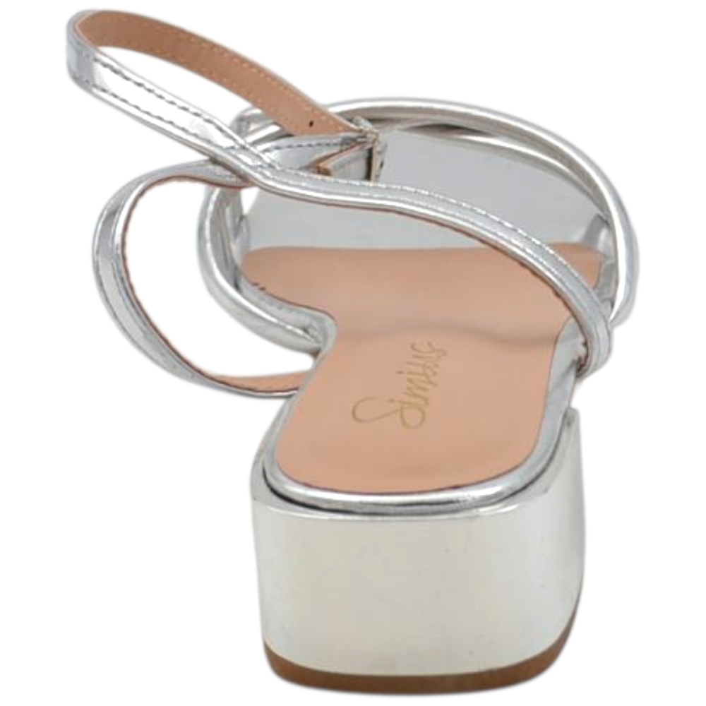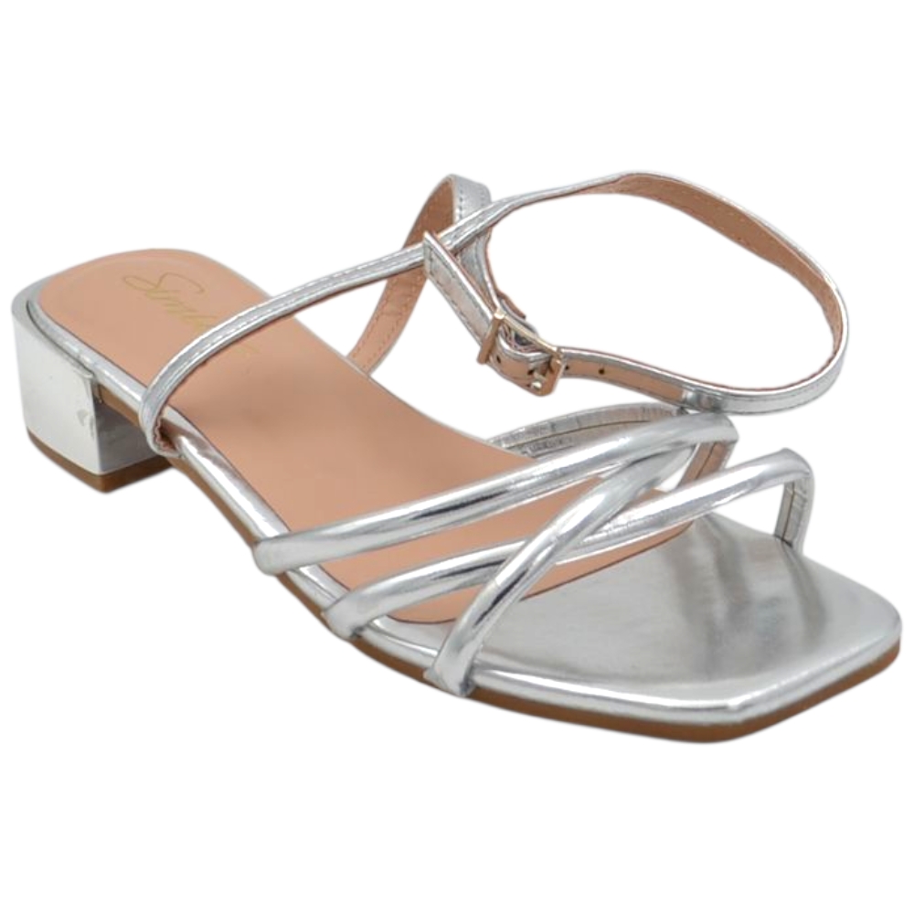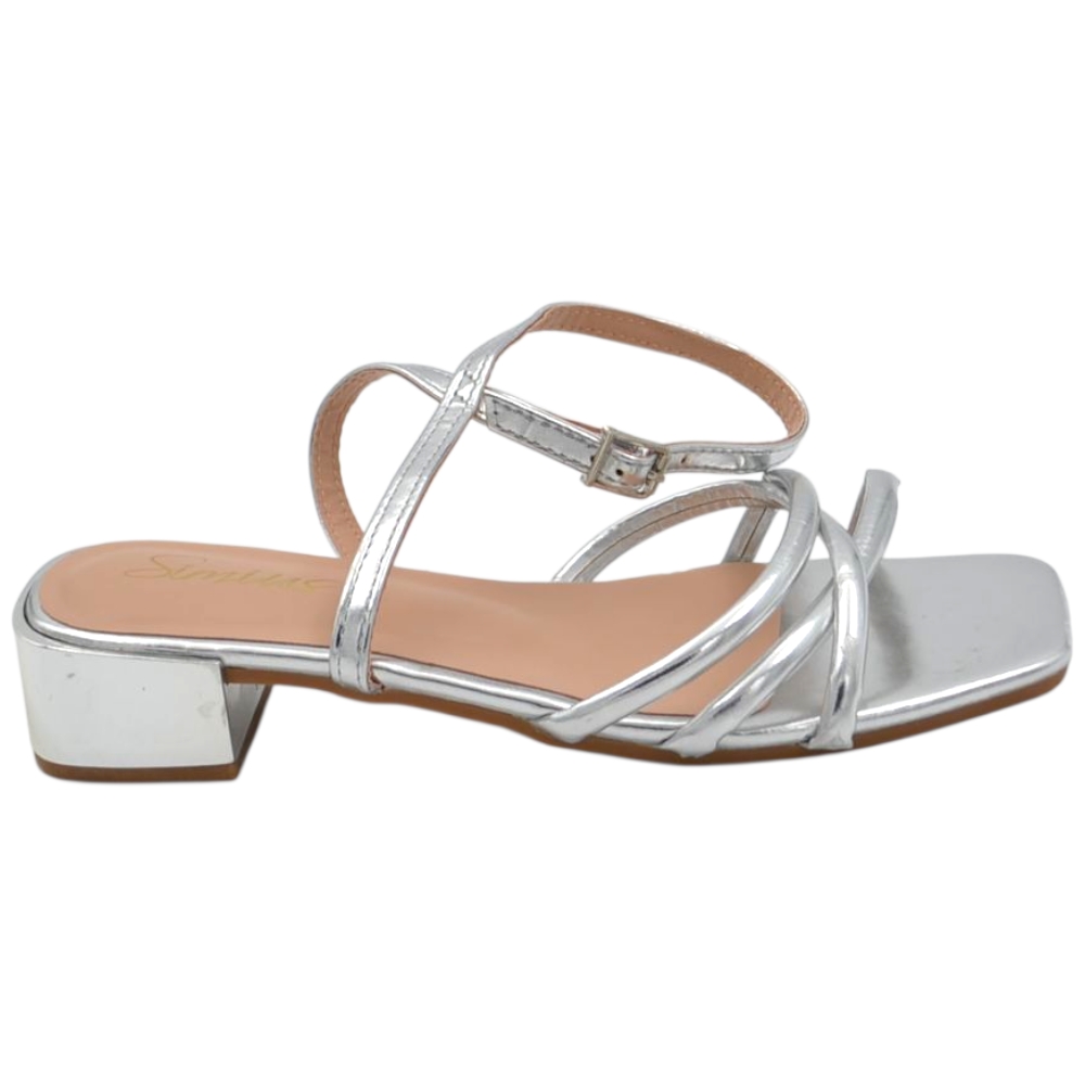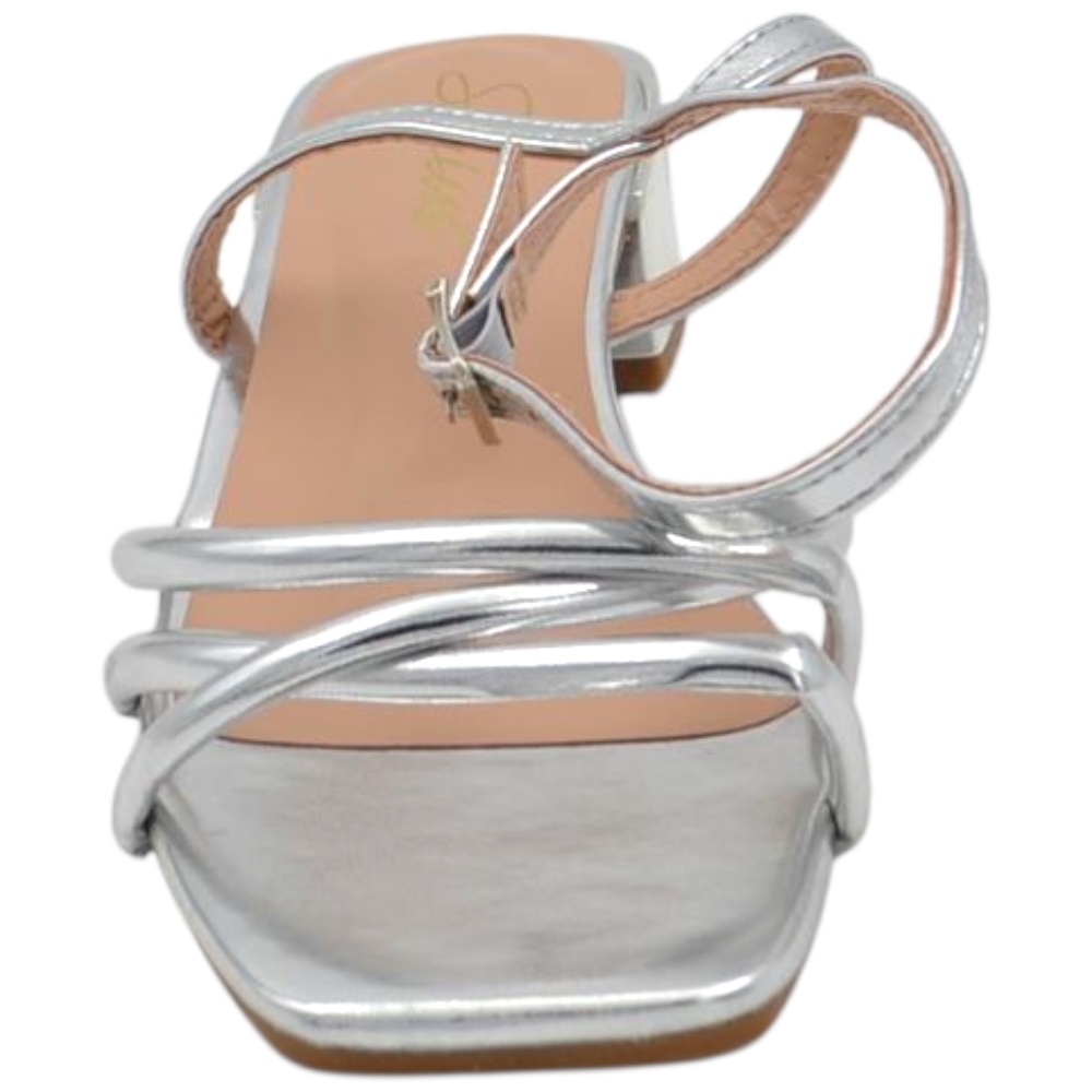 Sandali donna cerimonia con fascette incrociate in pelle argento tacco doppio 3 cm allacciatura alla caviglia moda