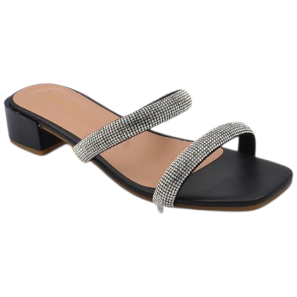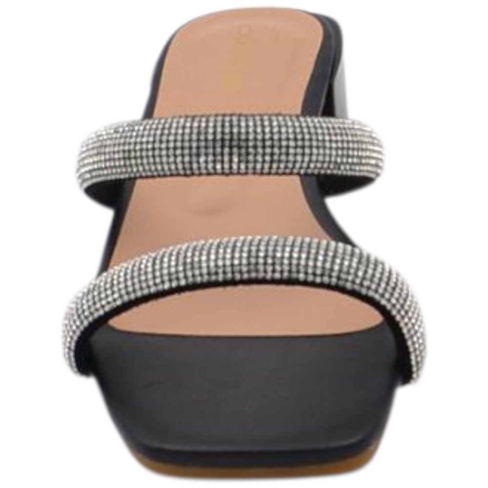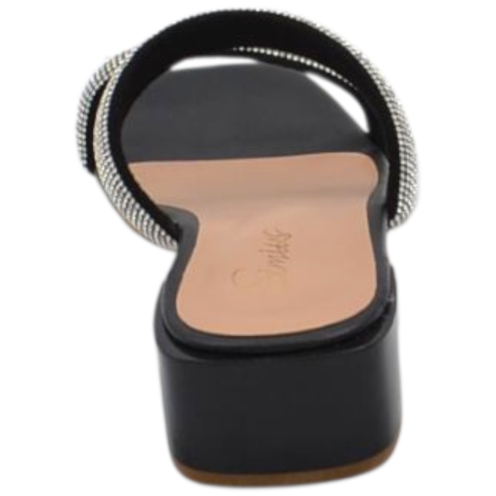 Sandali donna gioiello mule aperti nero lucido fascette brillantini tacco doppio 2 cm comode eleganti
