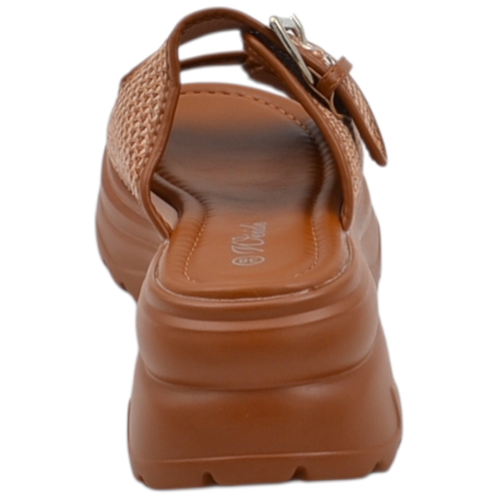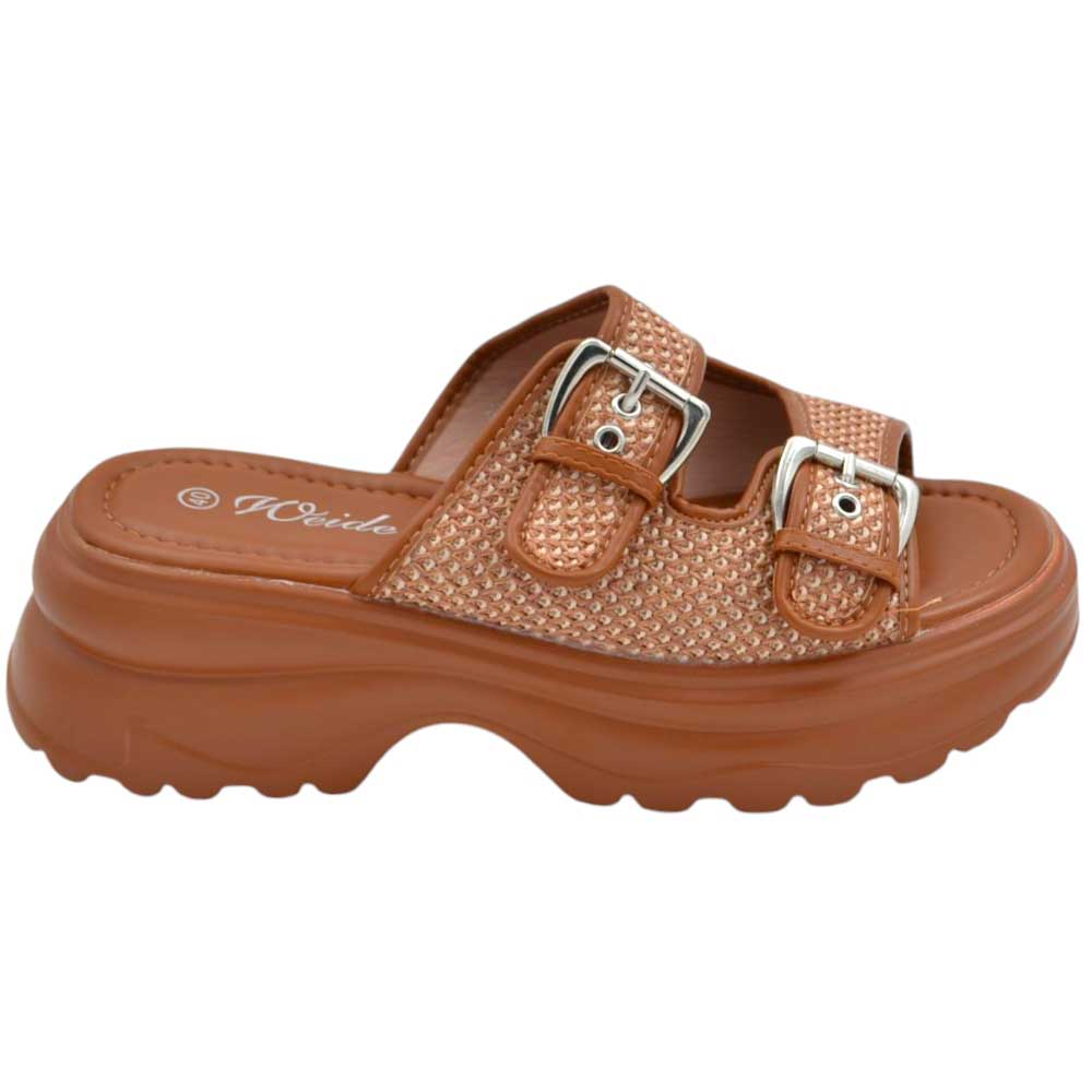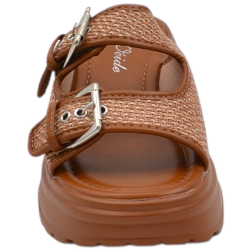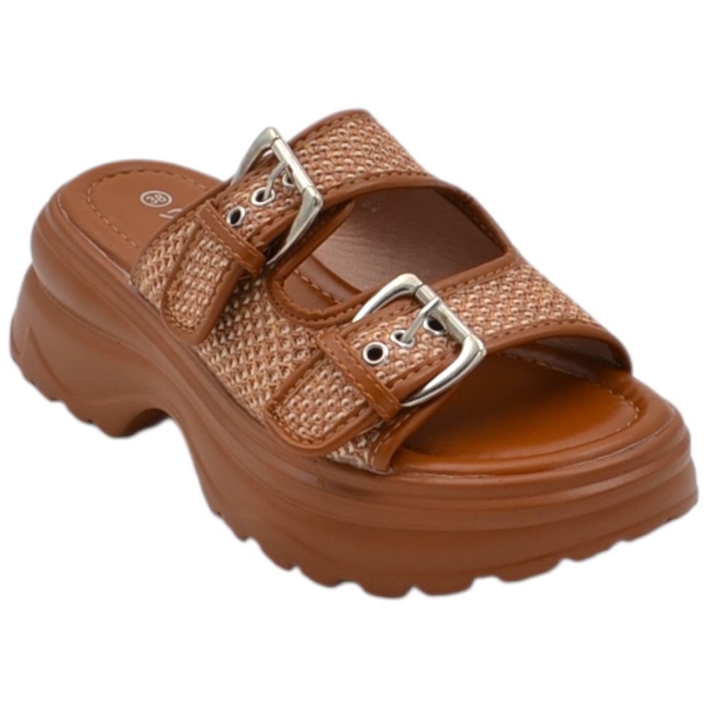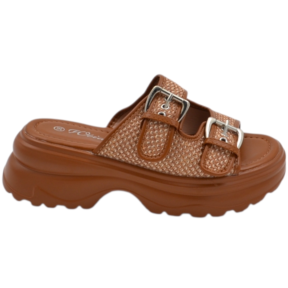 Pantofoline zeppa platform donna con doppia fibbia tessuto nido d'ape cuoio suola combat 7 cm zigrinato