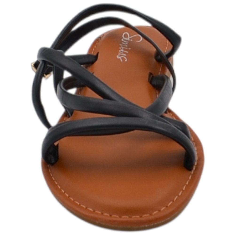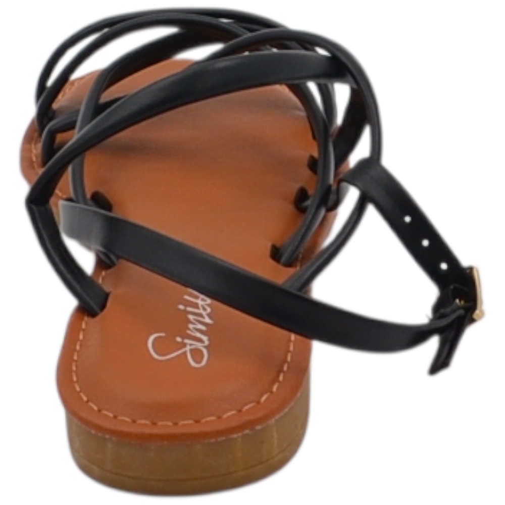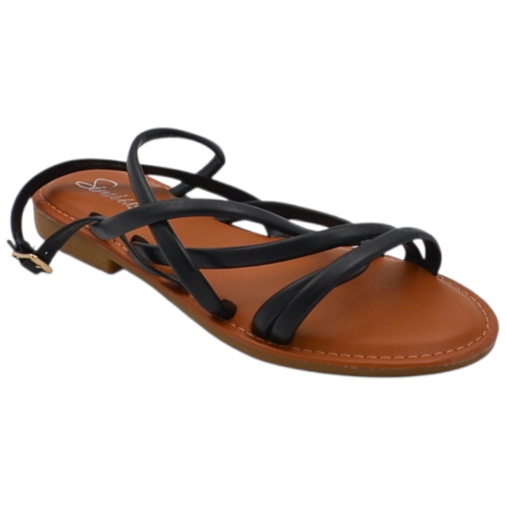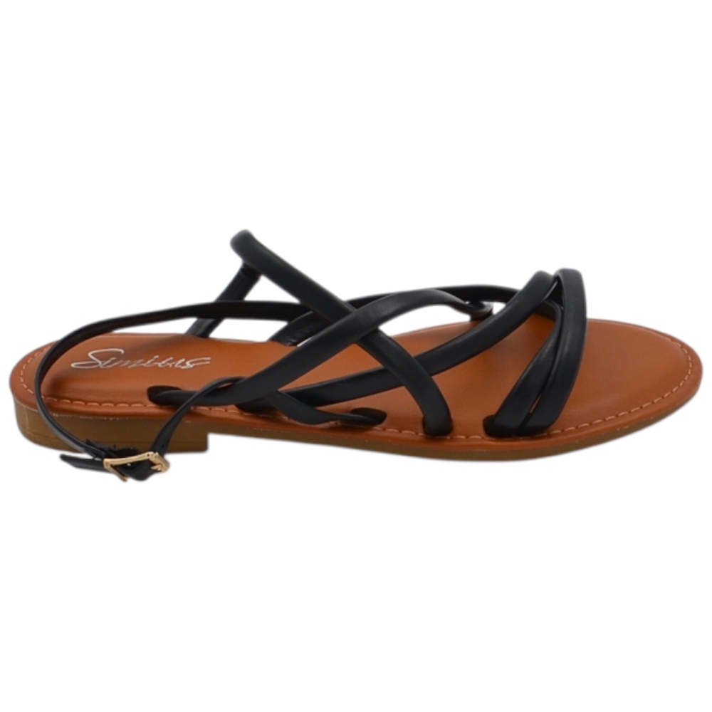 Sandalo basso donna cuoio ragnetto con chiusura fibbia alla caviglia fascetta incrociata basic fondo morbido comodi.