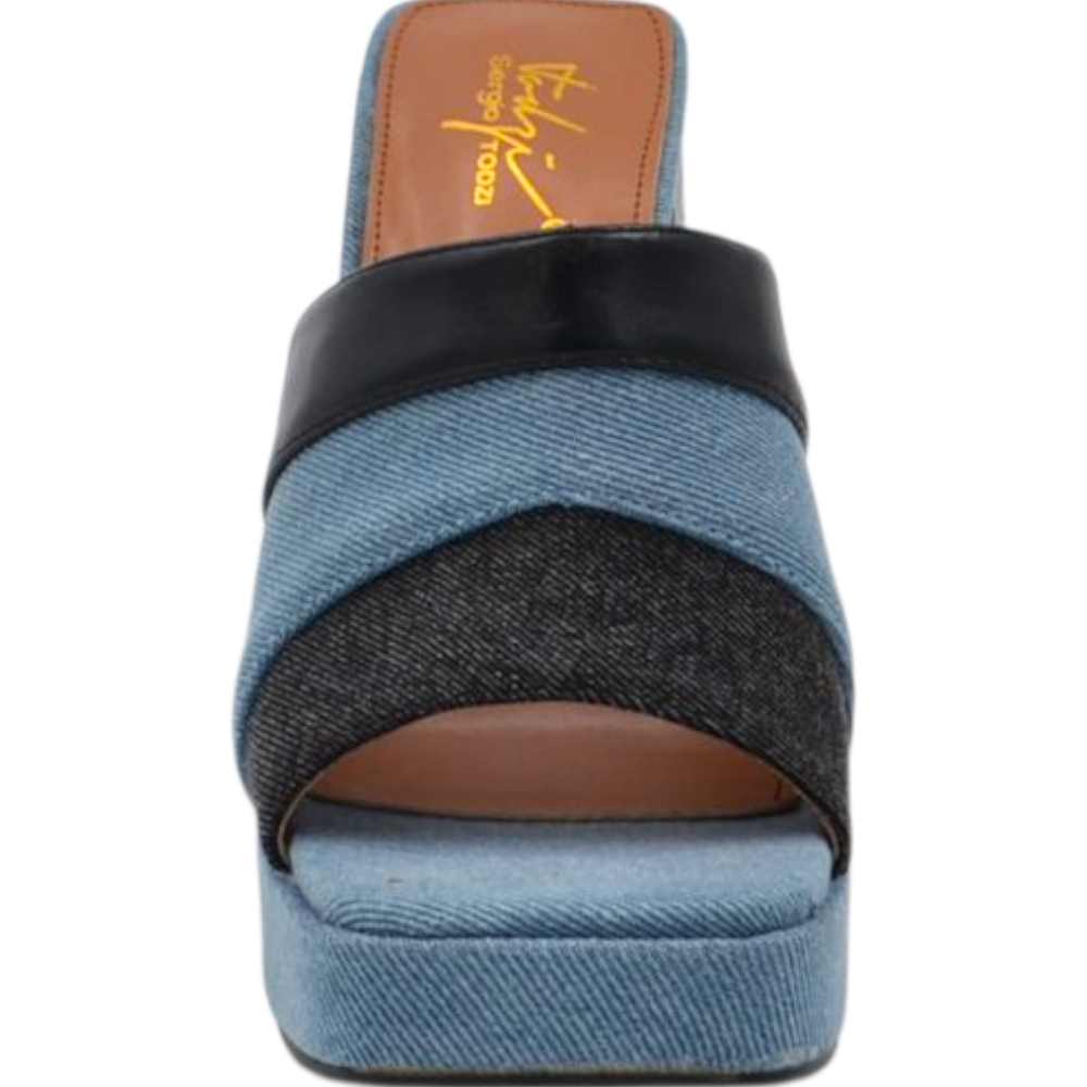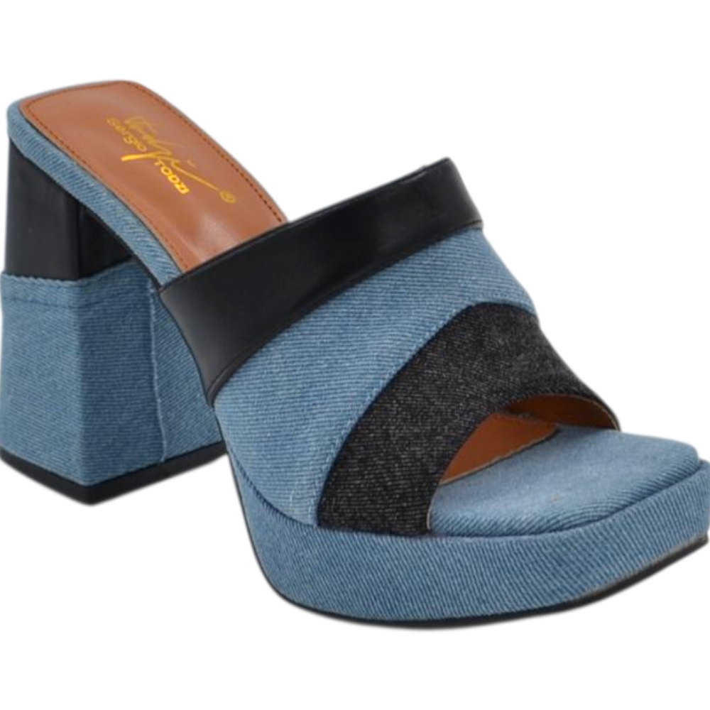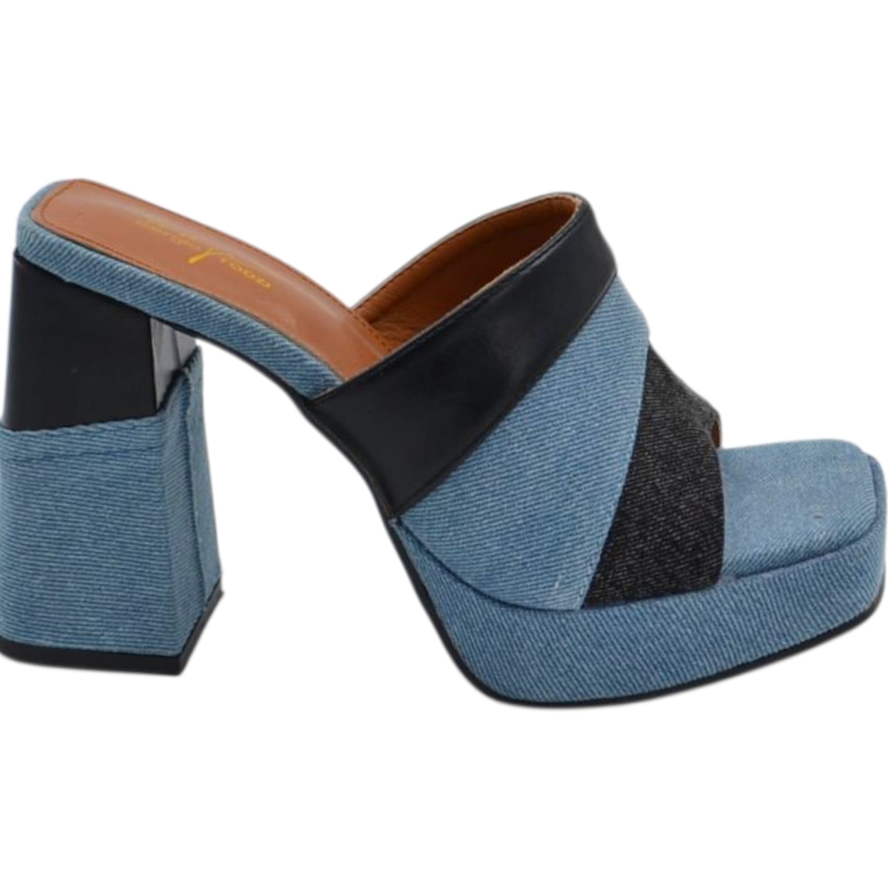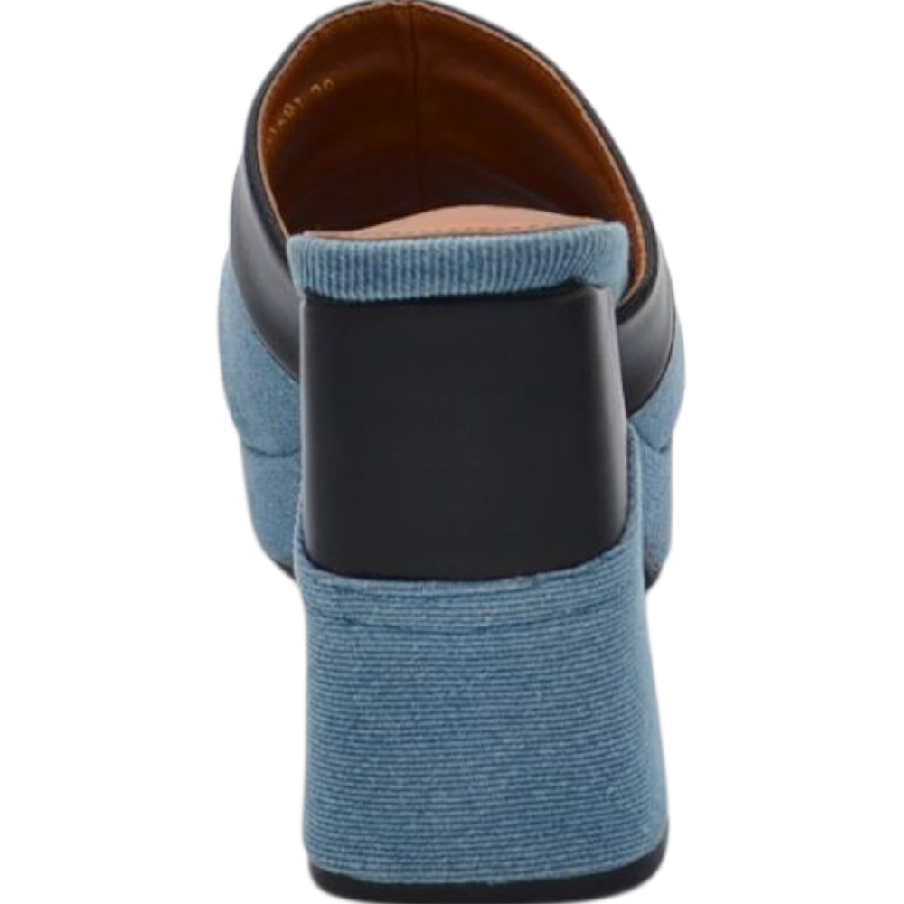 Sabot zoccolo donna estivo con plateau 2 cm tacco largo 10 jeansato bicolore denim comodo