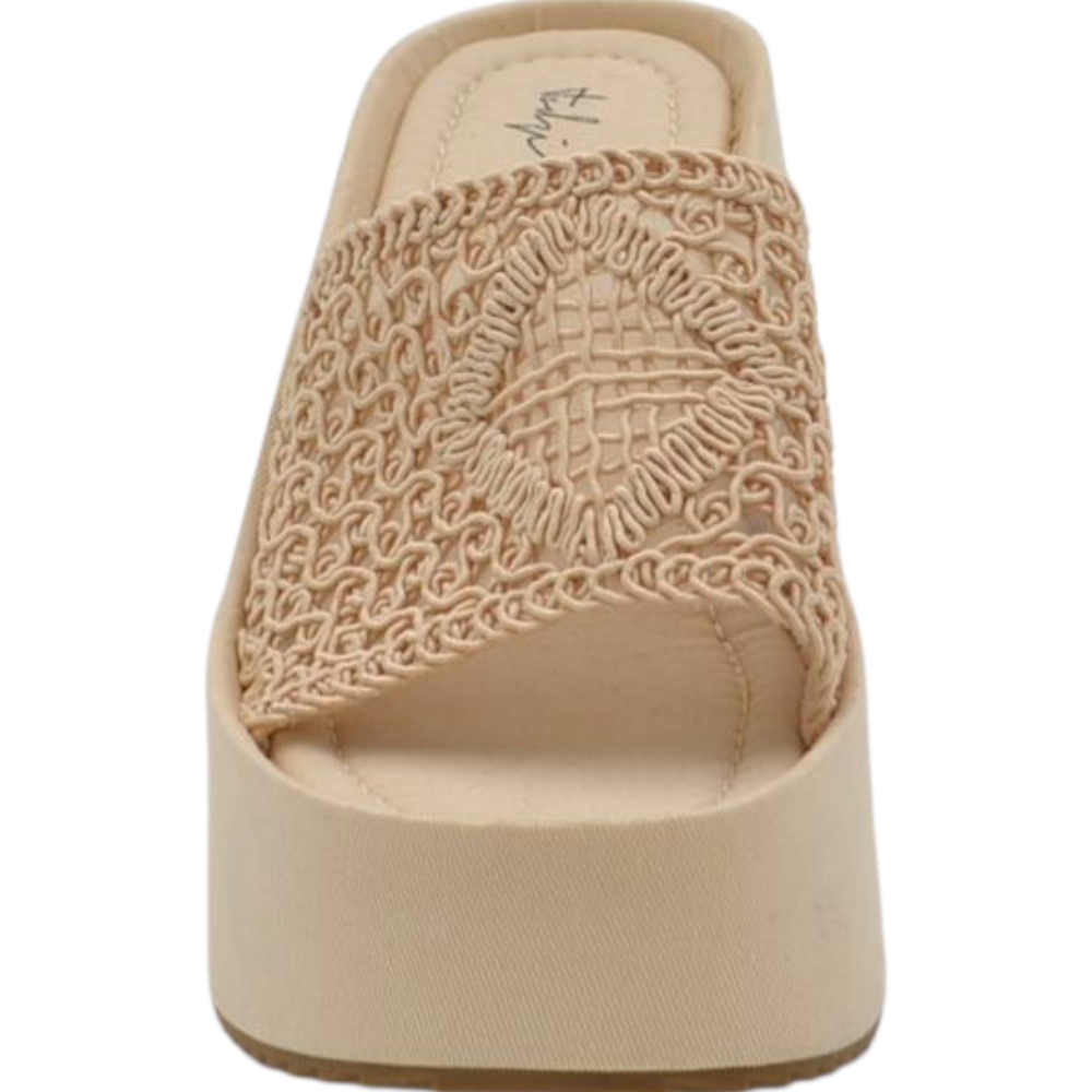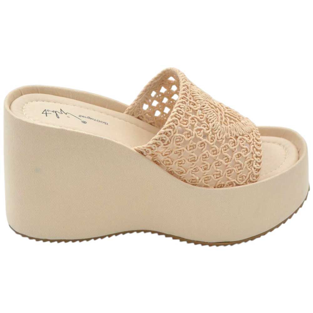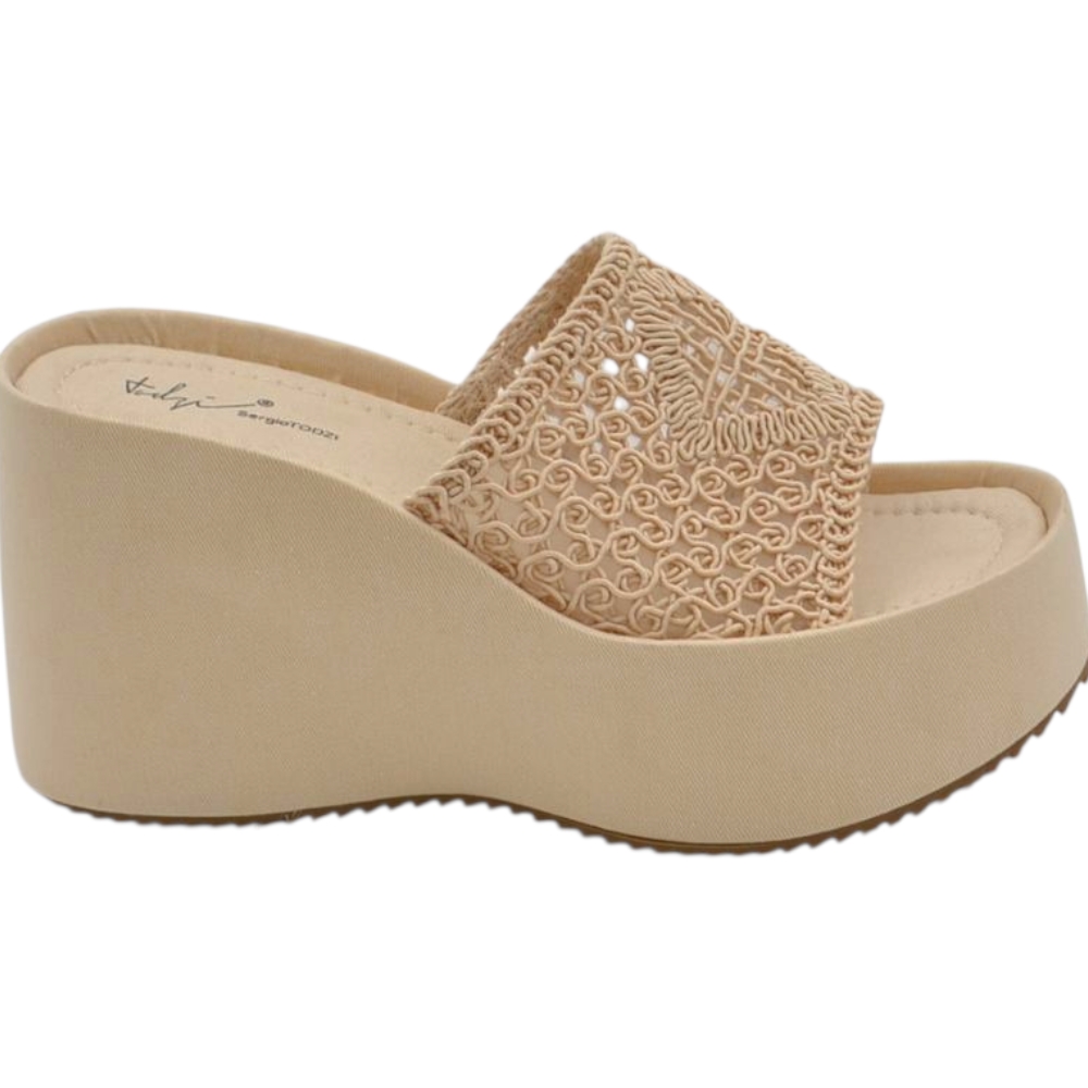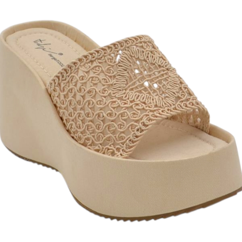 SANDALI ZEPPE DONNA BEIGE PLATFORM 10 CM CON SUOLA IN GOMMA E FASCIA RICAMATA IN FILO COMODA