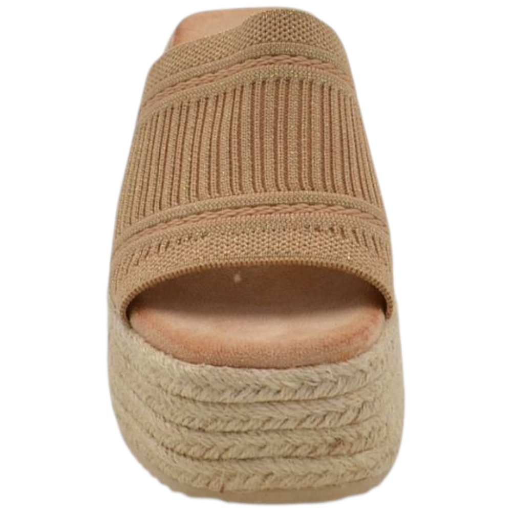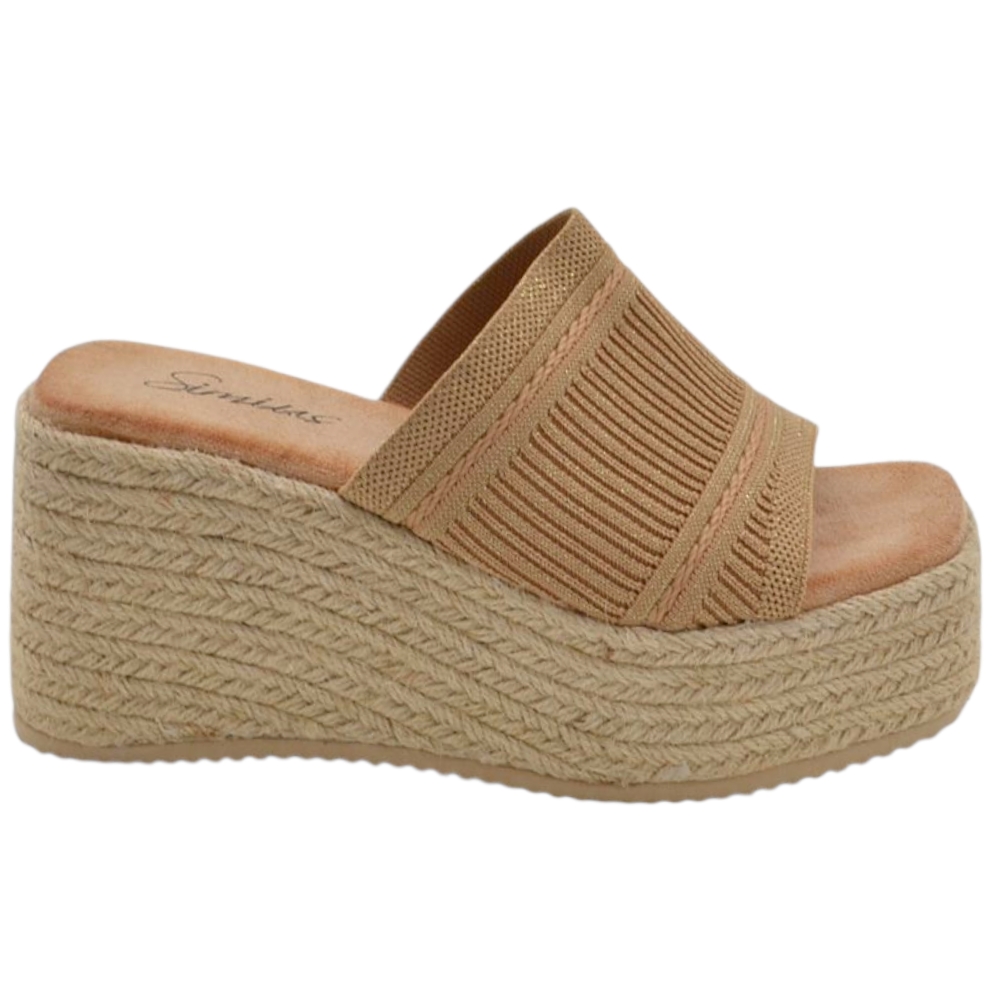 SANDALI ZEPPE DONNA NUDE PLATFORM 10 CM CONH SUOLA IN PAGLIA E FASCIA IN ELASTENE COMODA