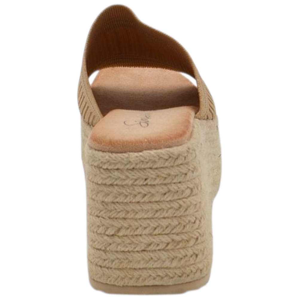 L'interno e il sottopiede sono in comodo tessuto, la suola è in corda alta 4 cm, senza chiusura