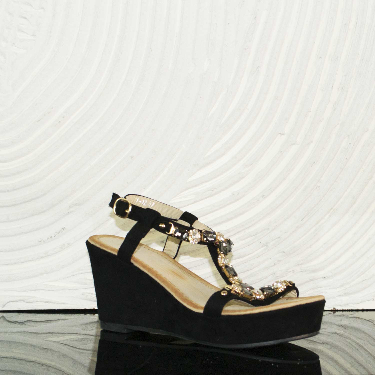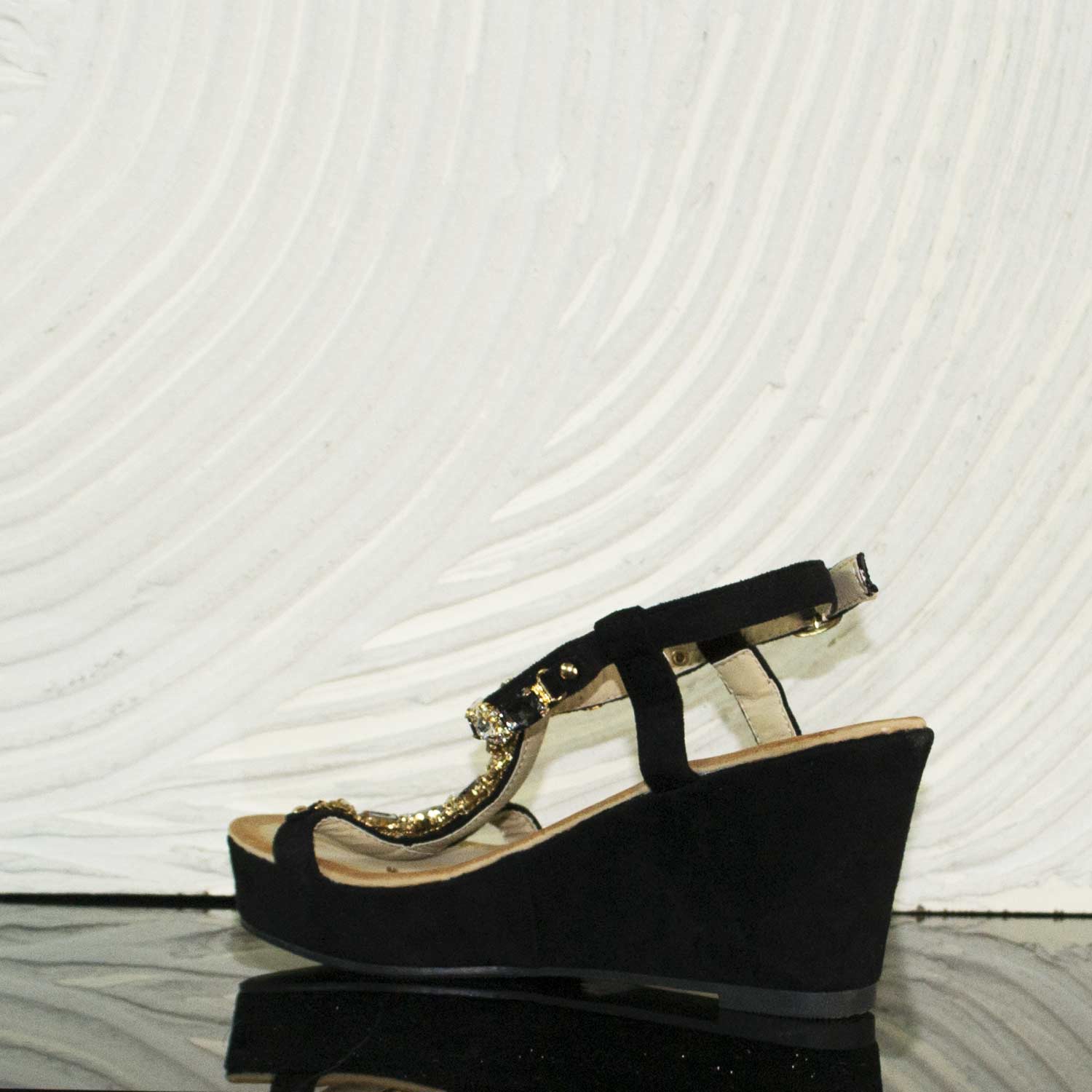 sandali gioiello zeppe donna girl leggere nero camoscio interno cuoio comfort