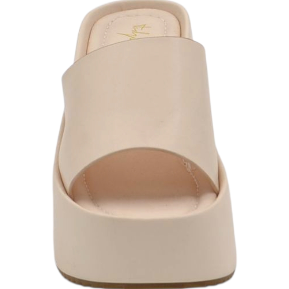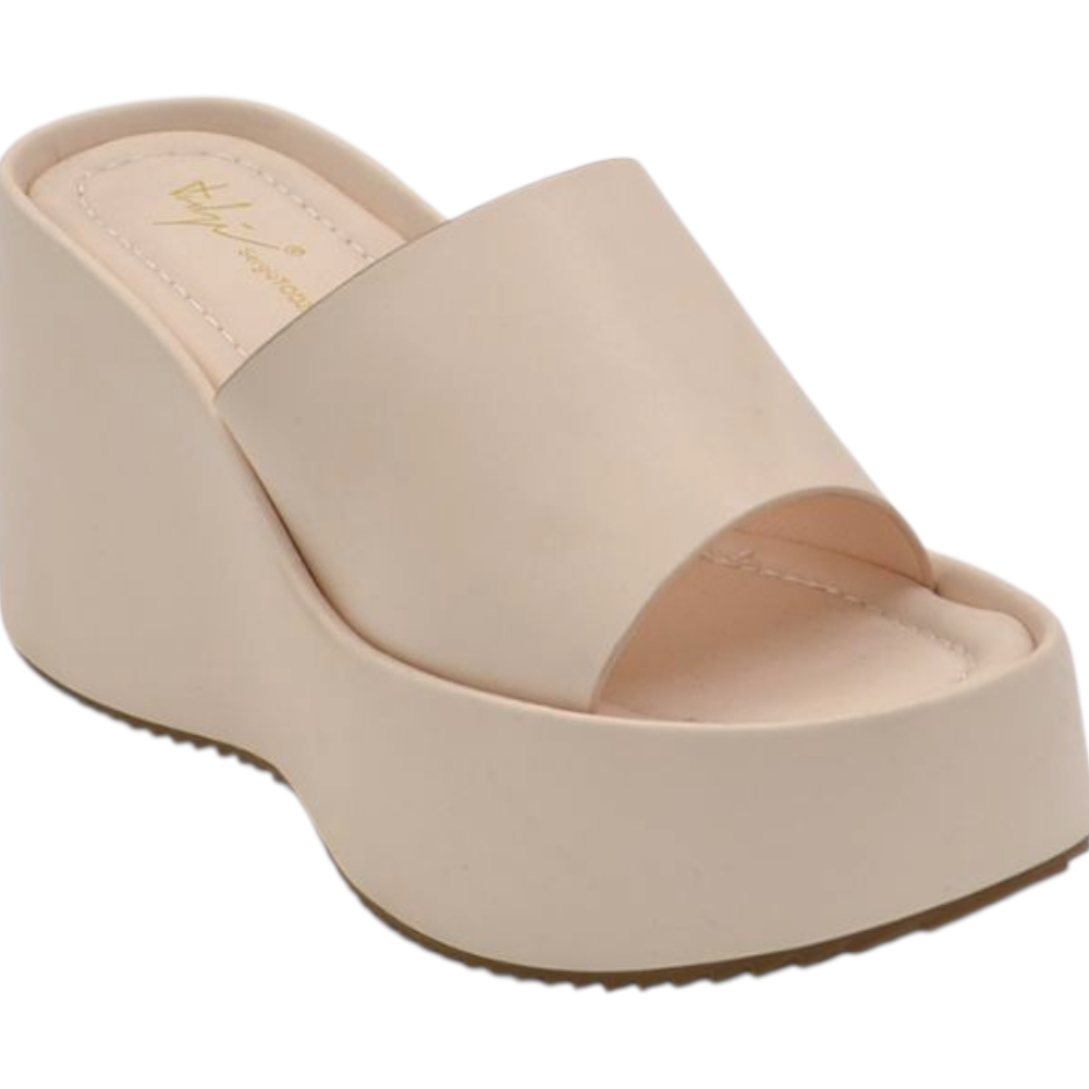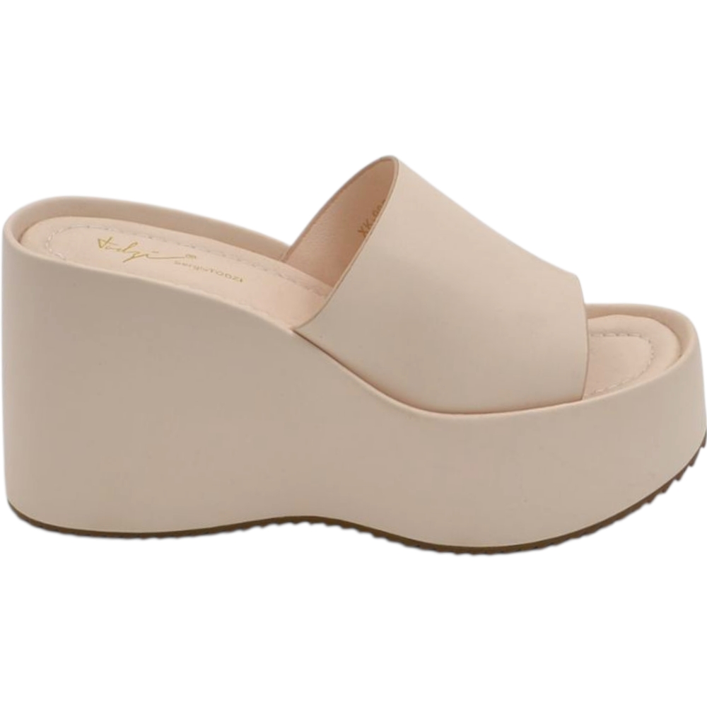 Sandali zeppe donna beige platform 10 cm con suola in gomma e fascia in pelle comoda