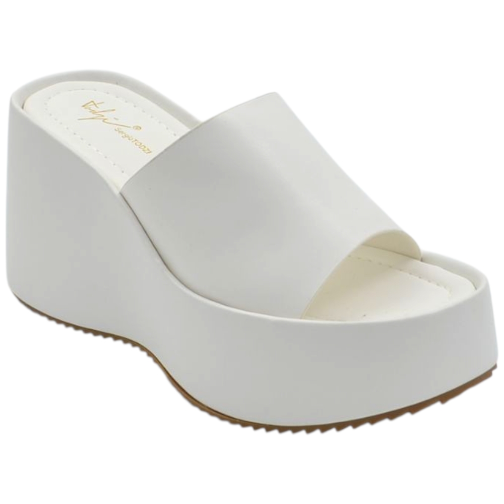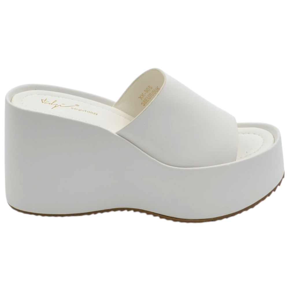Sandali zeppe donna bianco platform 10 cm con suola in gomma e fascia in pelle comoda