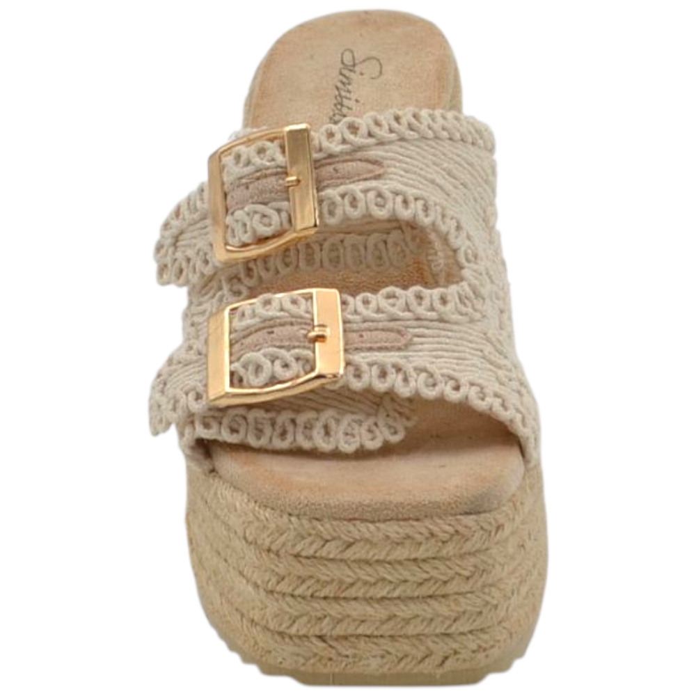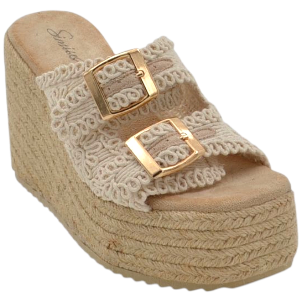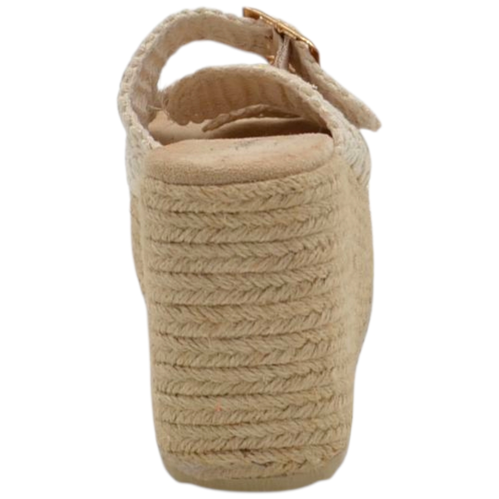 Sandali zeppe donna beige platform 10 cm conh suola in paglia e fascia in elastene comoda.