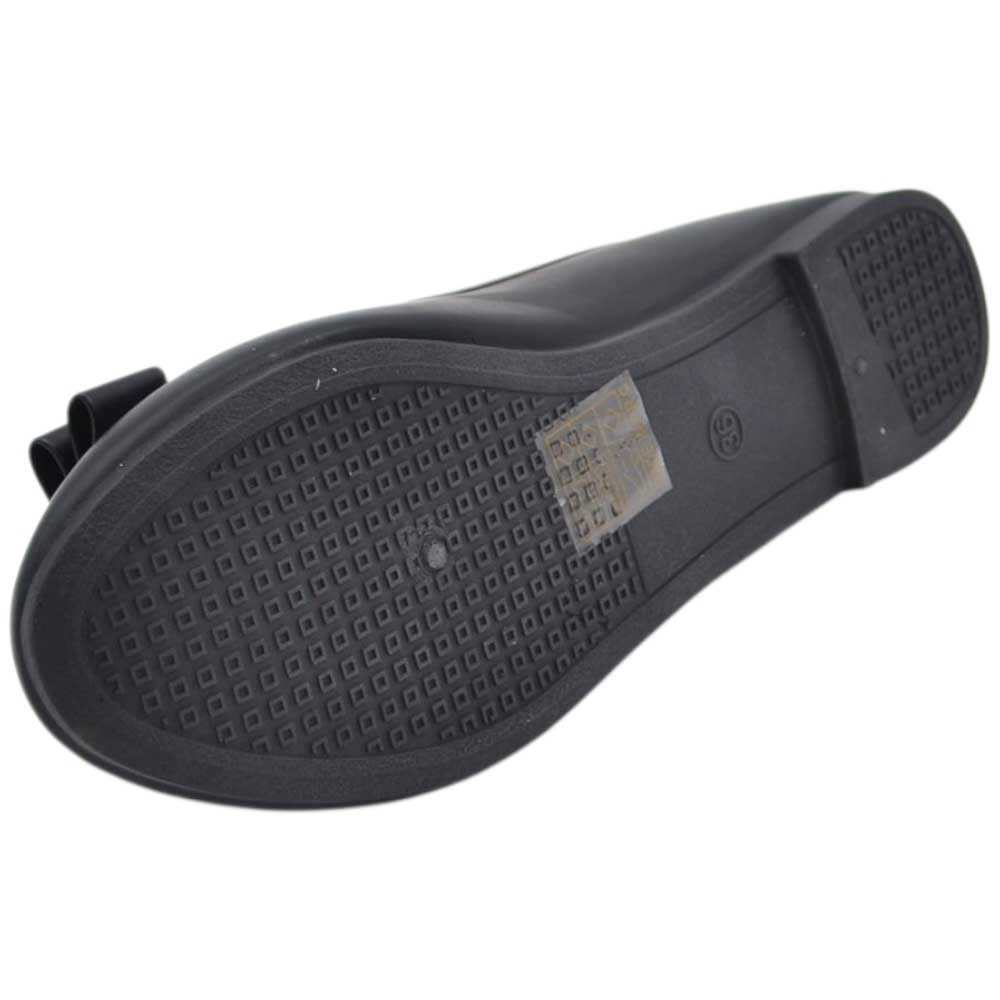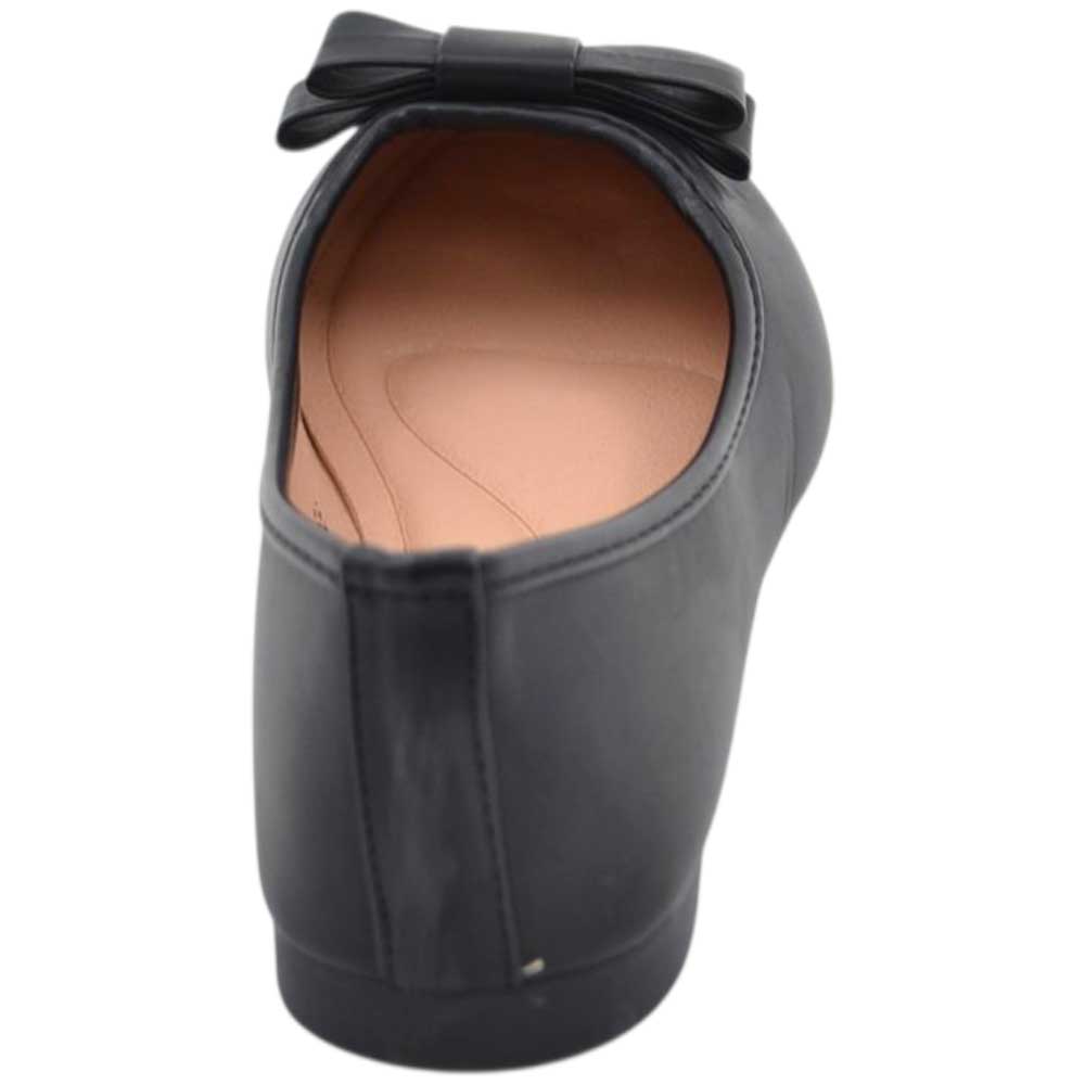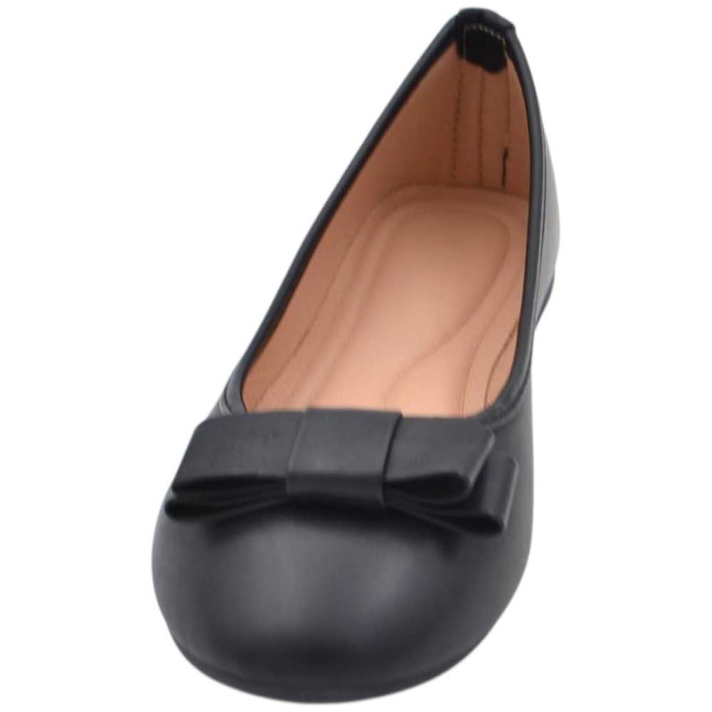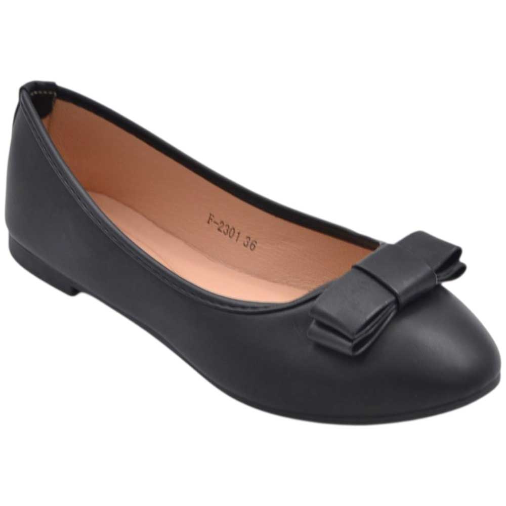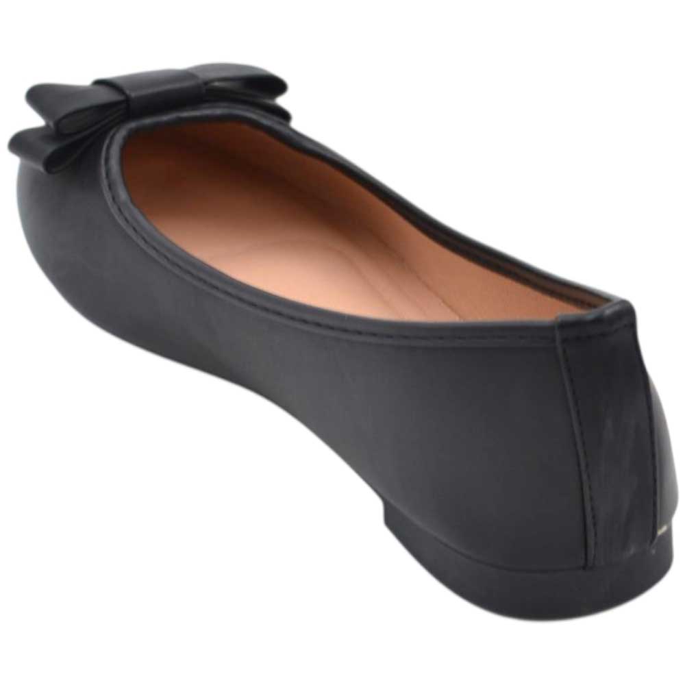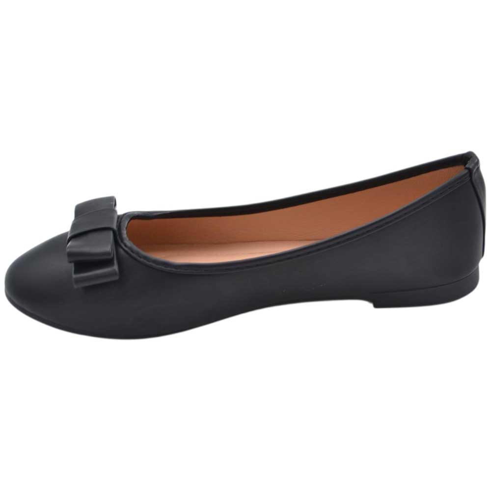 Scarpe ballerine donna nero a punta tonda raso terra con fiocco superiore moda comfort fondo antiscivolo