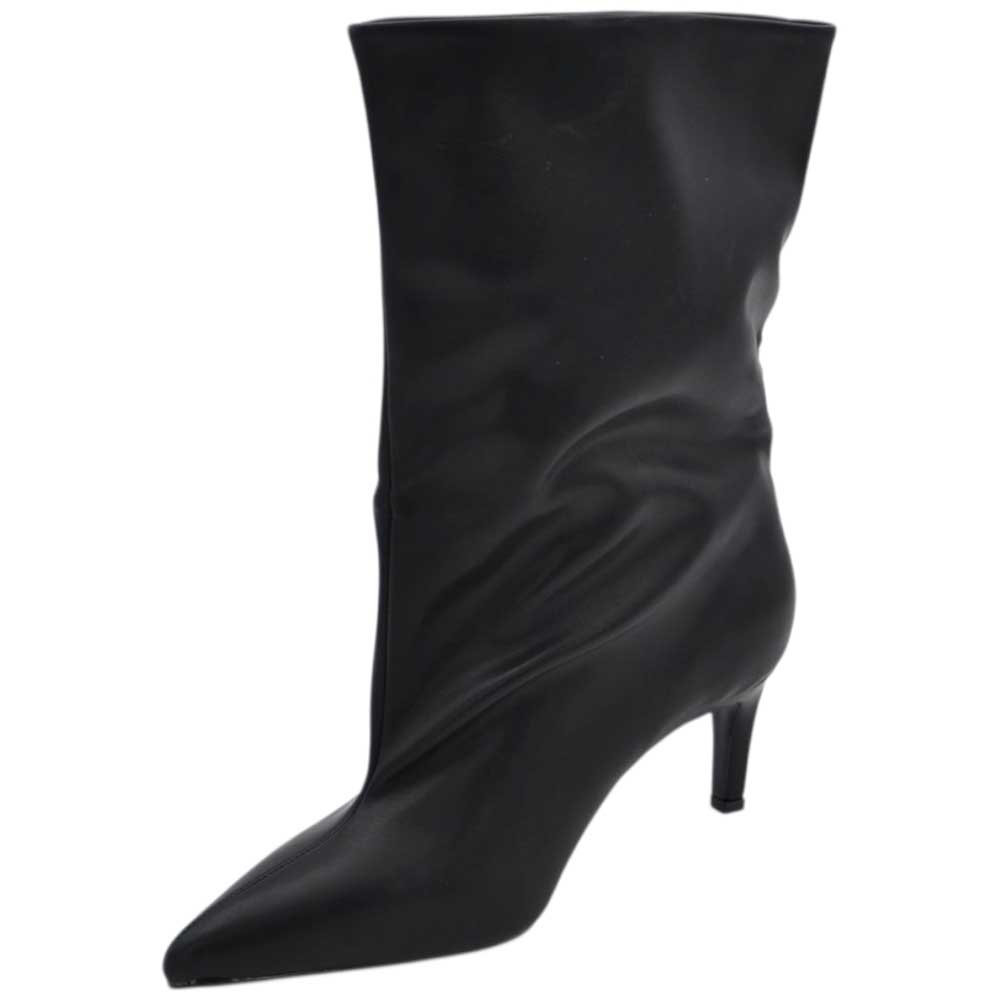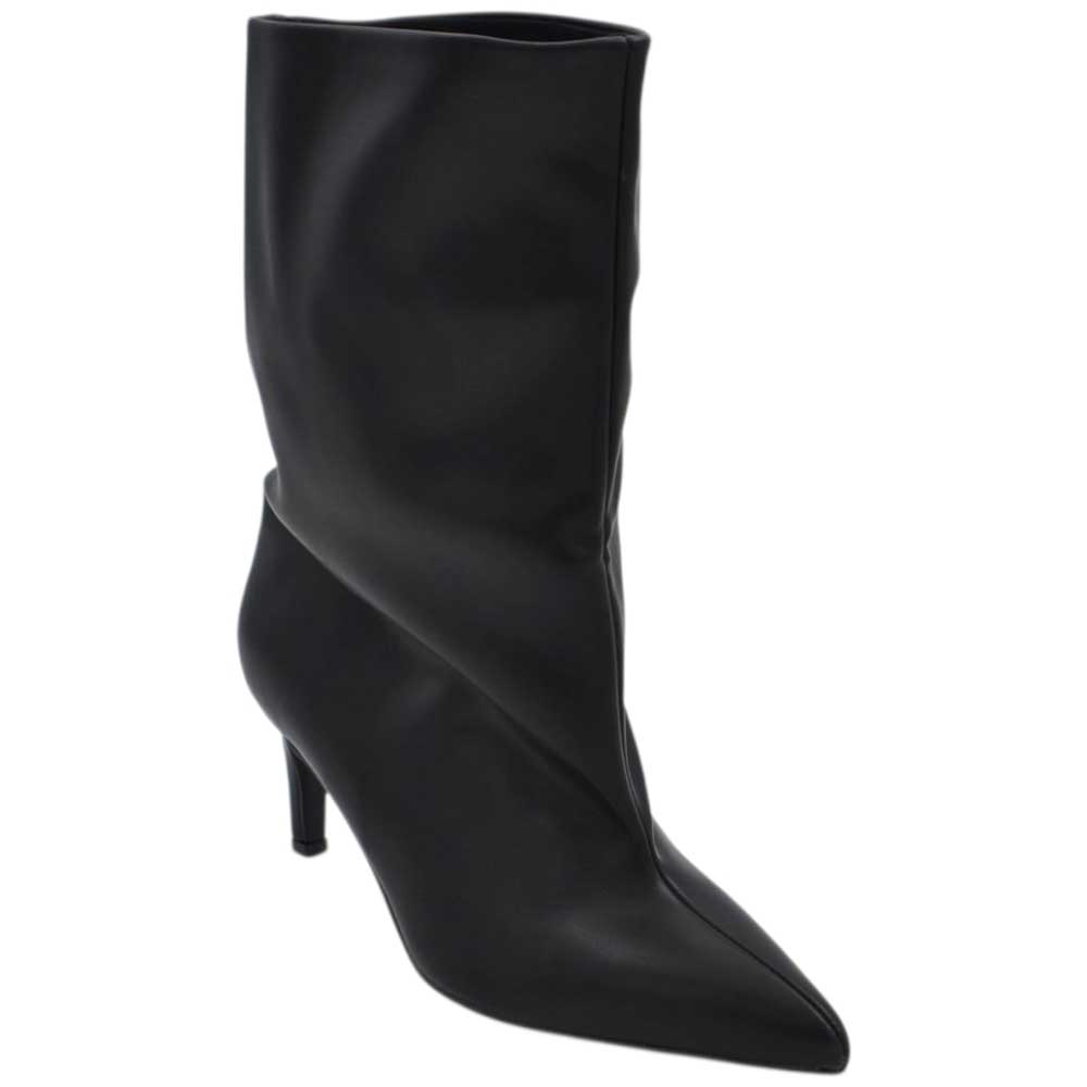 Tronchetto stivaletto nero donna linea Basic con tacco a spillo basso 5 cm vestibilita' over con zip a punta