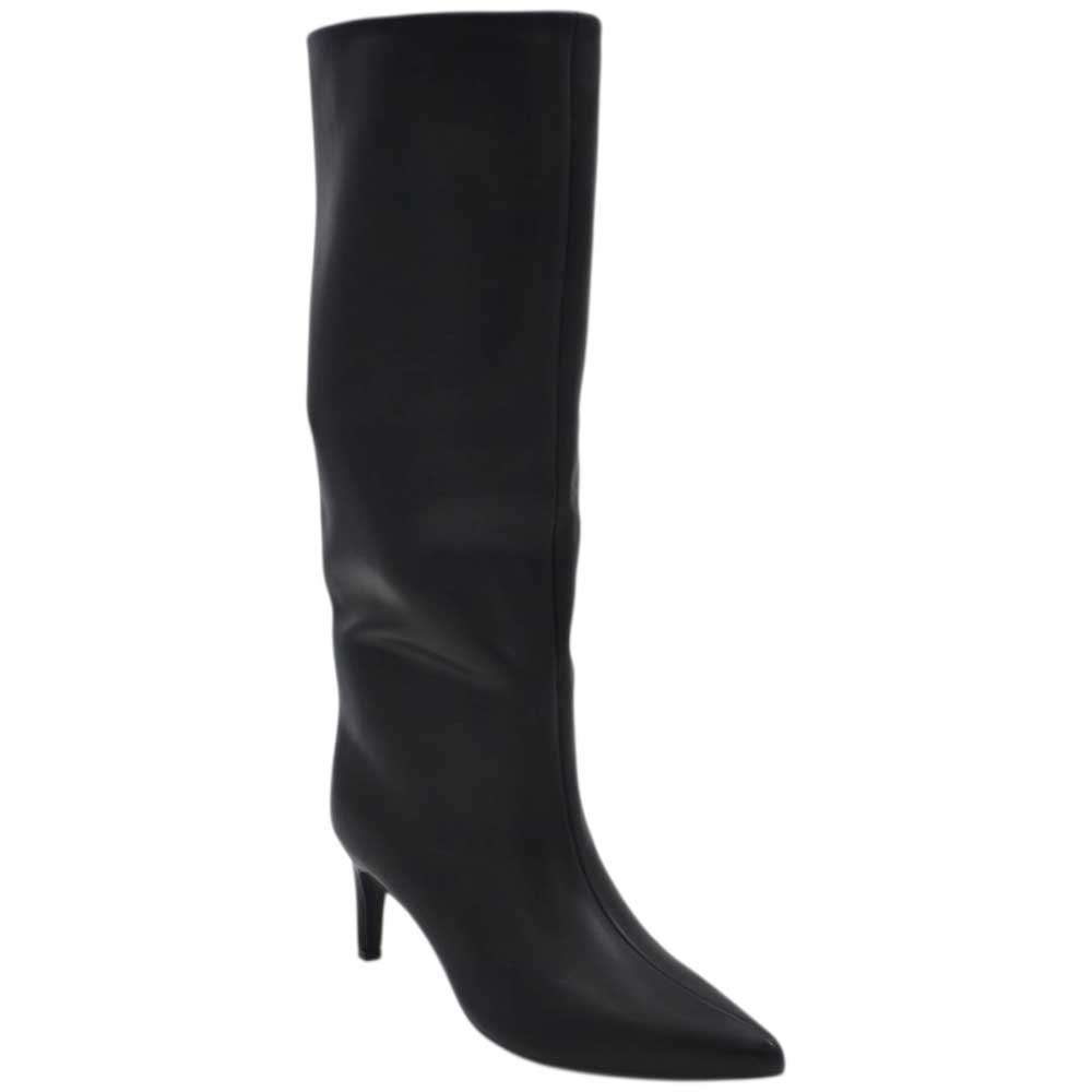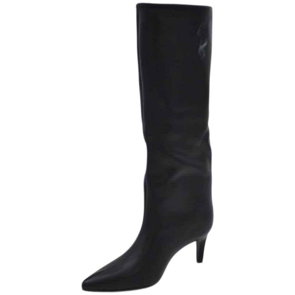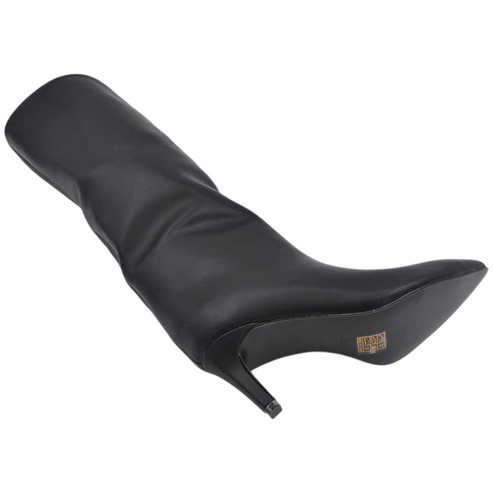 Stivali donna nero camoscio a punta con tacco largo comodo 10 cm gambale largo polpaccio comodo elastico.