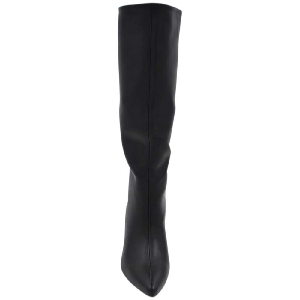 Stivali alti donna al ginocchio in pelle nero a punta tacco a spillo 8 cm zip lunga aderente moda linea Basic