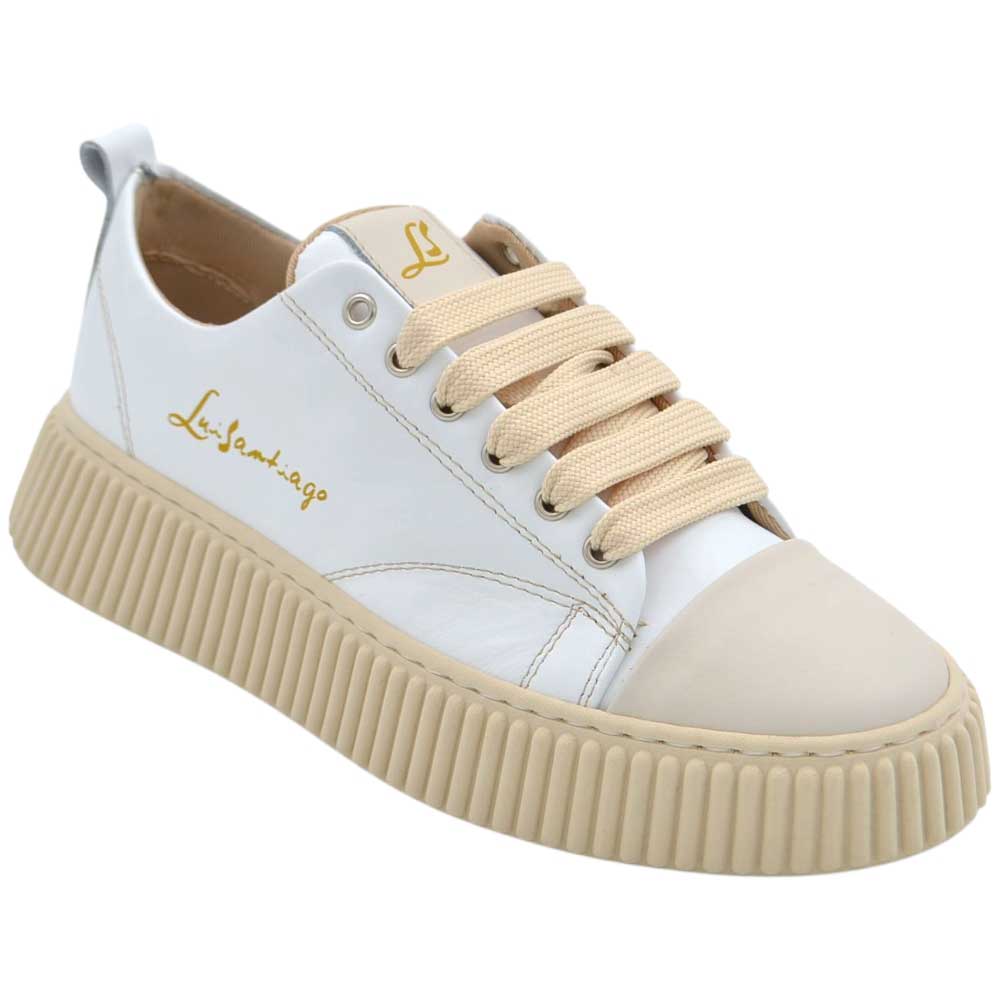 Luisantiago LS X-Ray Sneakers in vera pelle di vitello Latte e Bianco con suola EVA effetto vintage color crema
