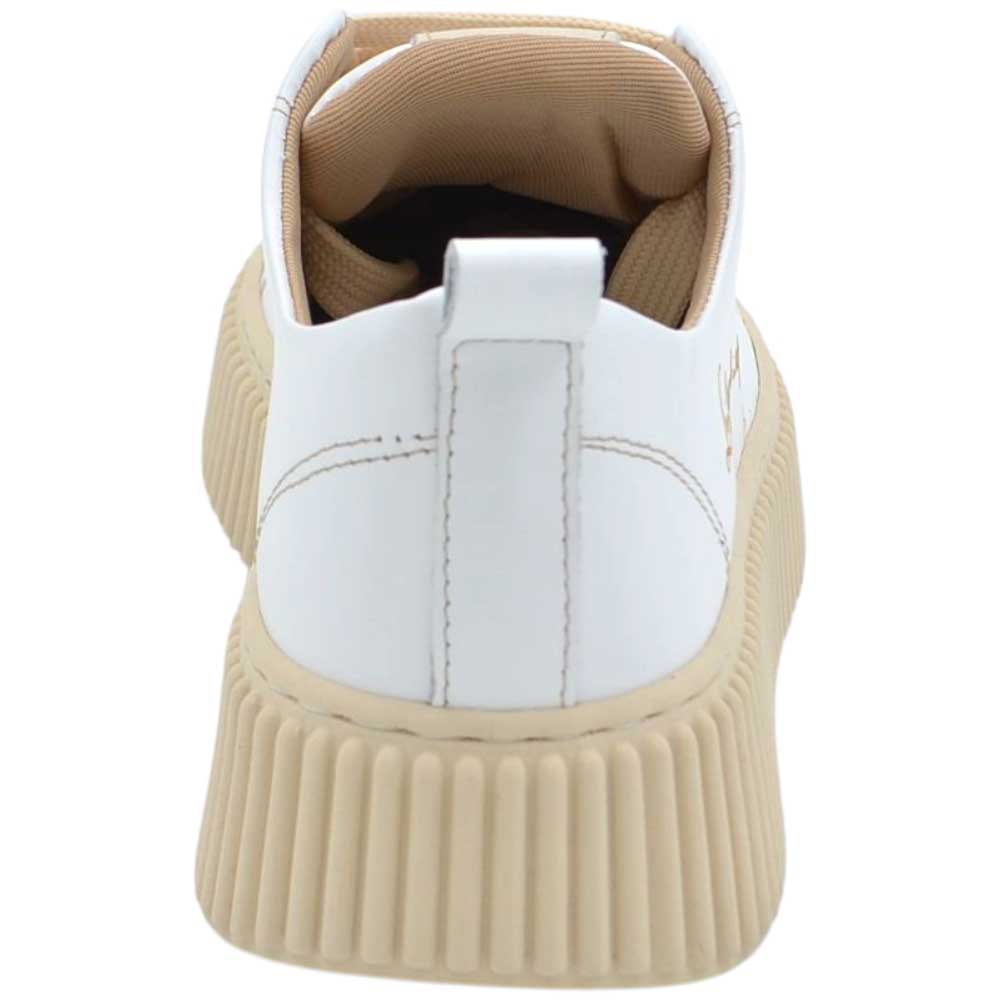 Una sneaker costruita con vera pelle di vitello color latte bianco, arricchita da inserti nero intenso che ne esaltano le linee pulite e la struttura equilibrata.