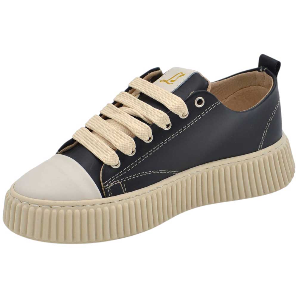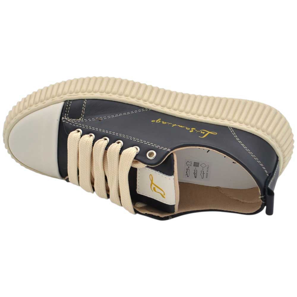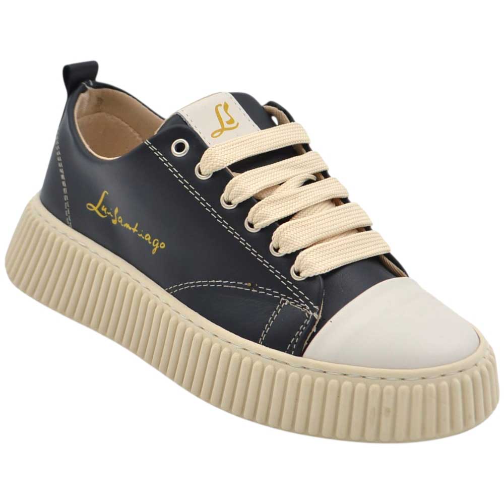 Luisantiago LS X-Ray Sneakers in vera pelle di vitello Nero e Bianco Latte con suola EVA effetto vintage color crema