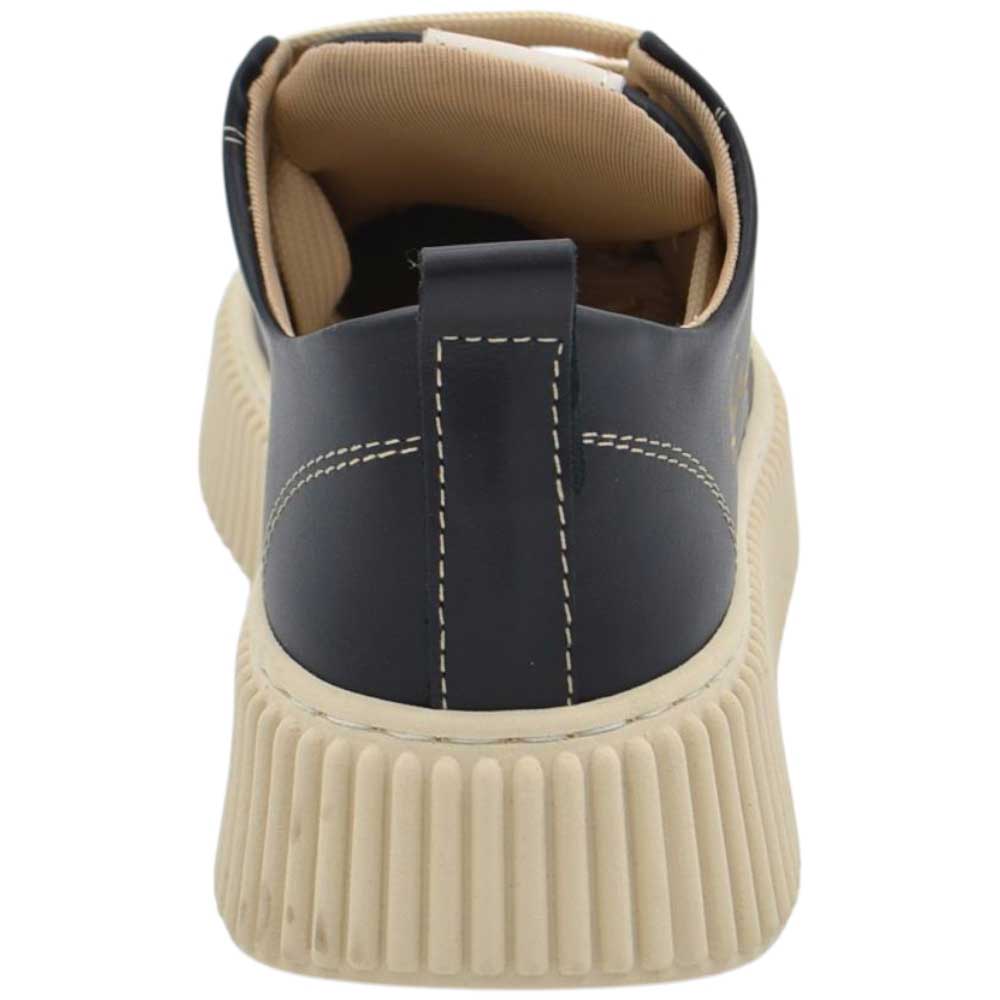 Una sneaker costruita con vera pelle di vitello color latte bianco, arricchita da inserti nero intenso che ne esaltano le linee pulite e la struttura equilibrata.