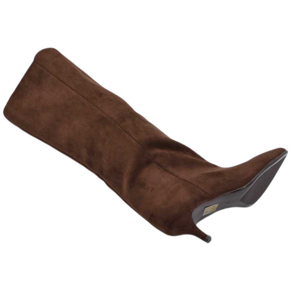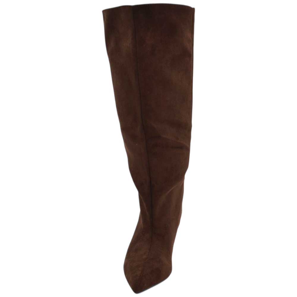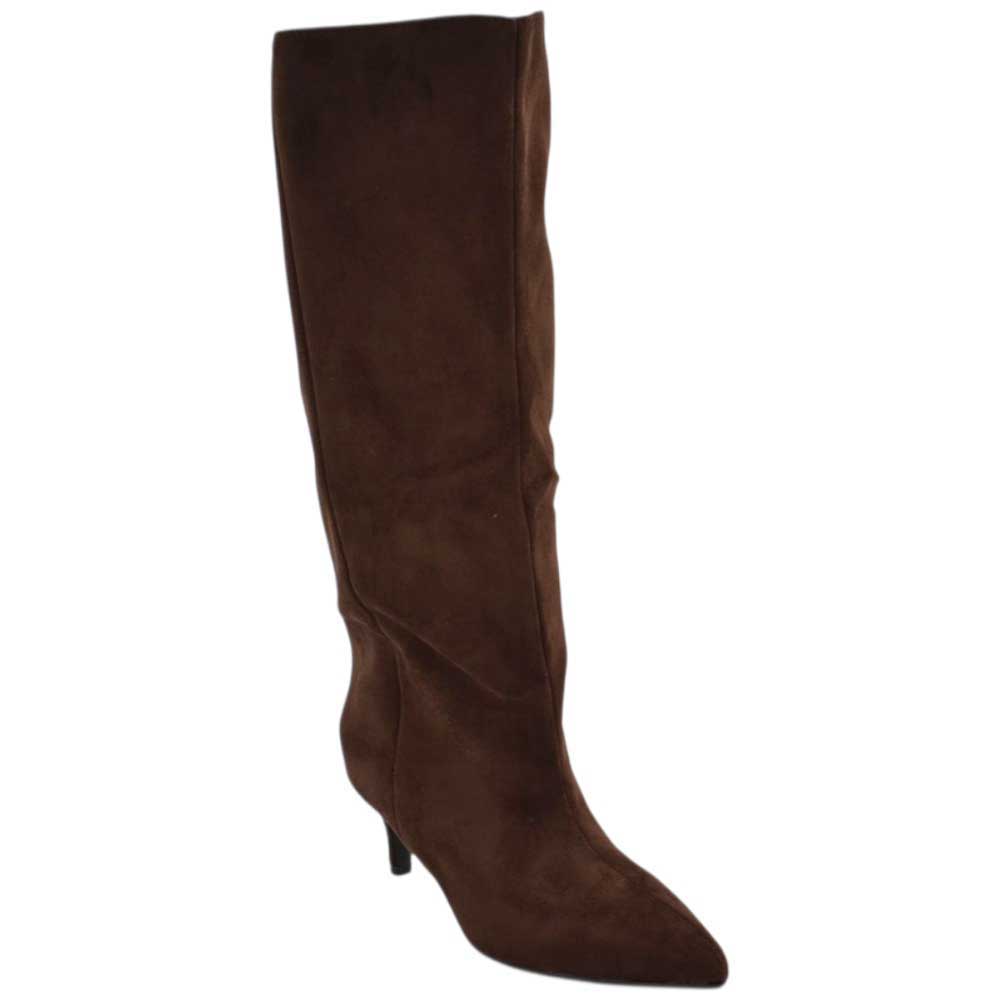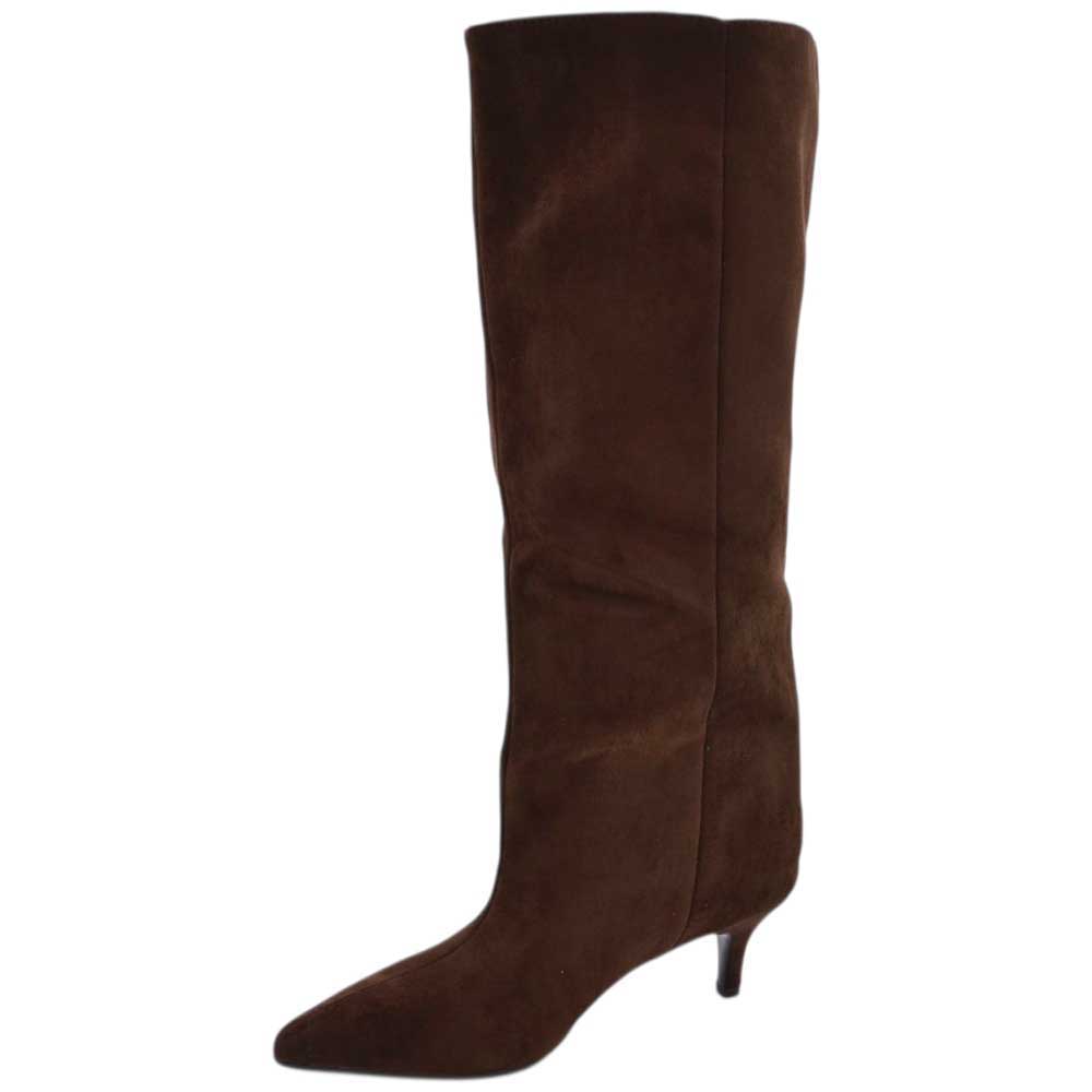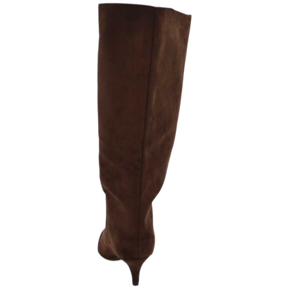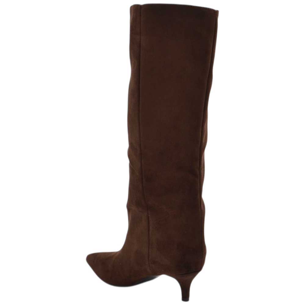 Stivali Slouchy in Camoscio Marrone a Punta con Tacco Basso kitten e gambale over trend