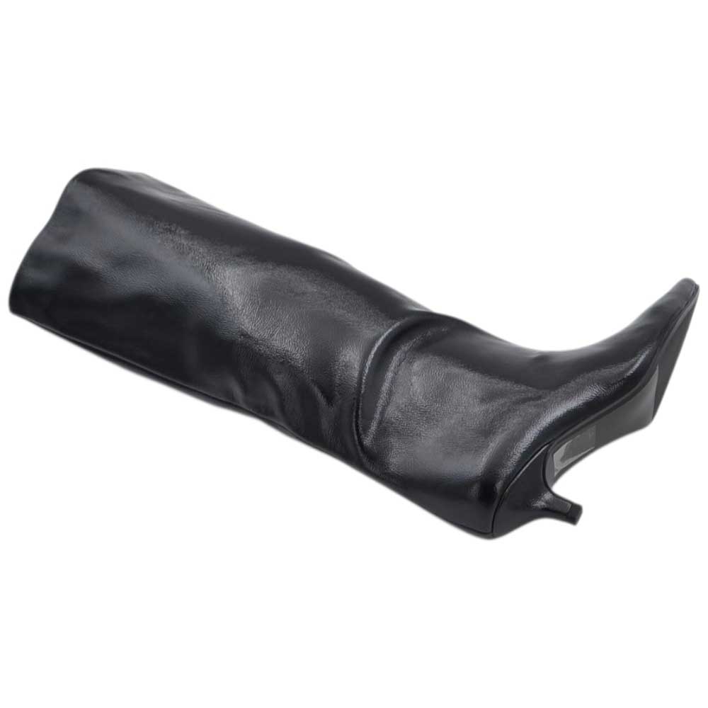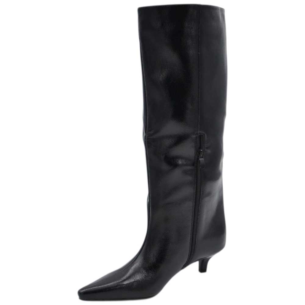 Stivali slouchy in vinile nero effetto wrap a punta con Tacco Basso stiletto gambale regular