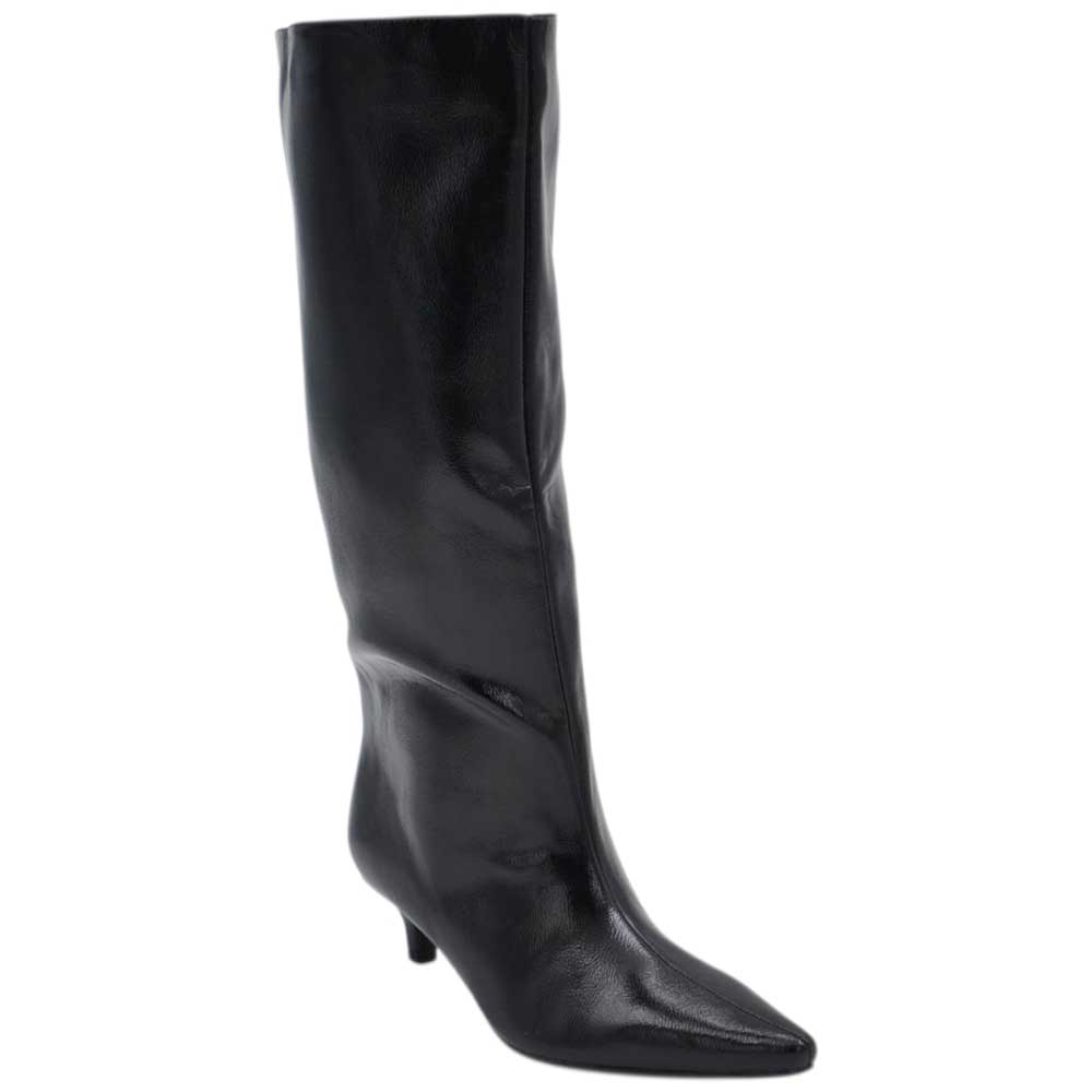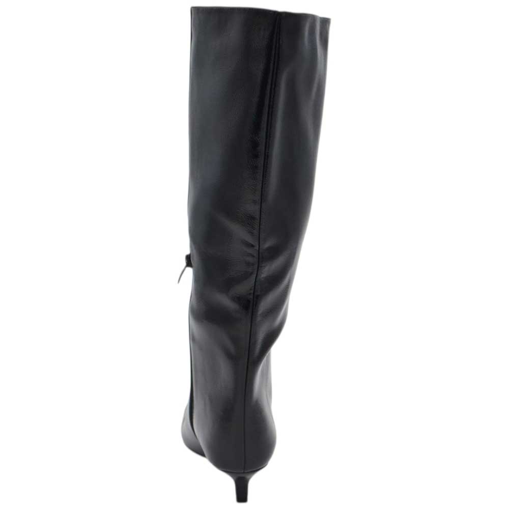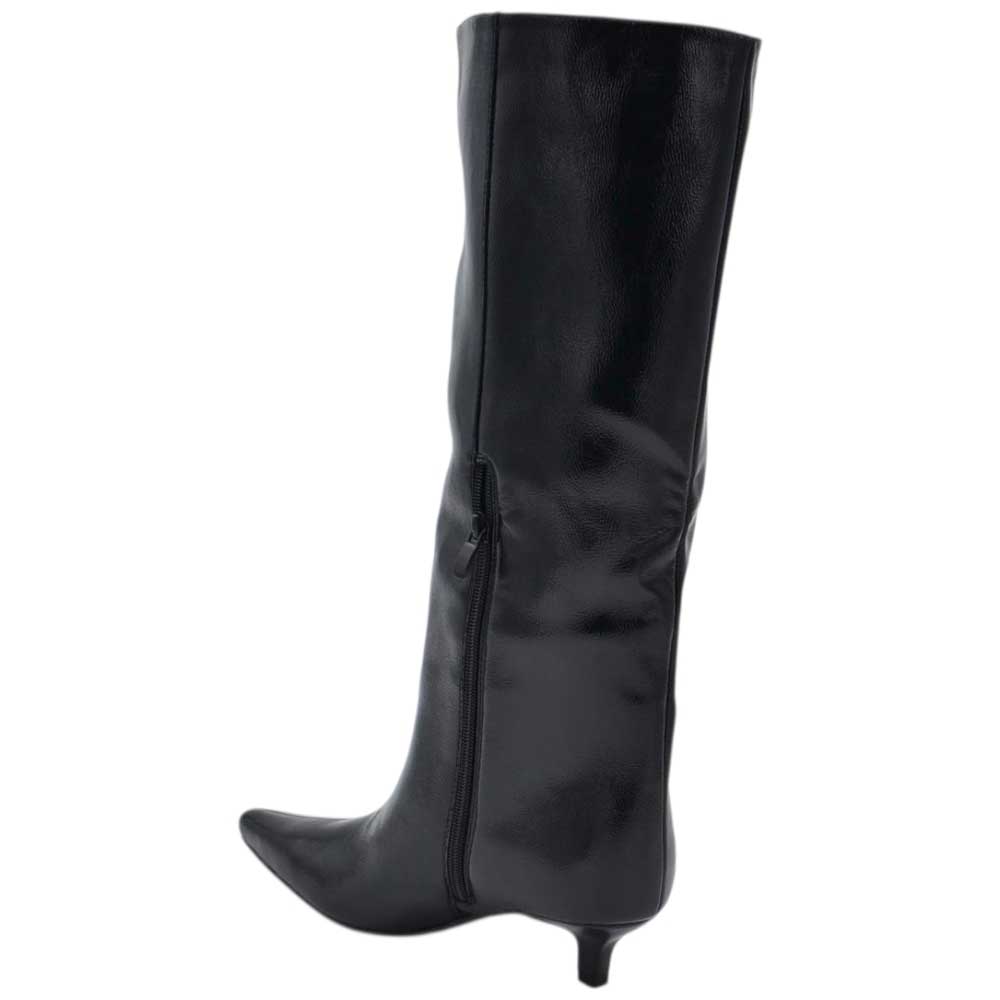 Il gambale morbido e la punta affusolata donano una silhouette sofisticata, mentre il tacco basso a stiletto garantisce comodità e femminilità in ogni passo.