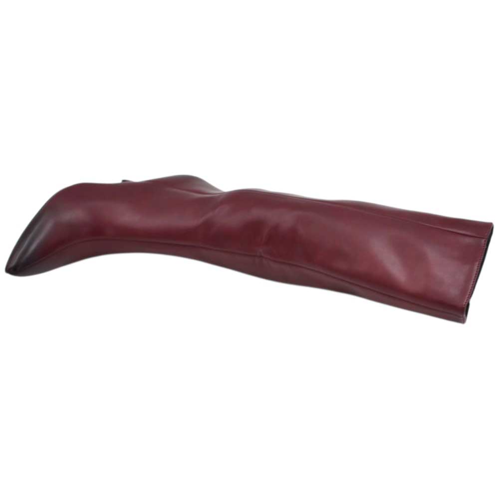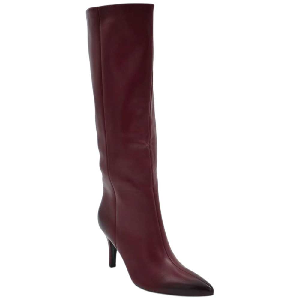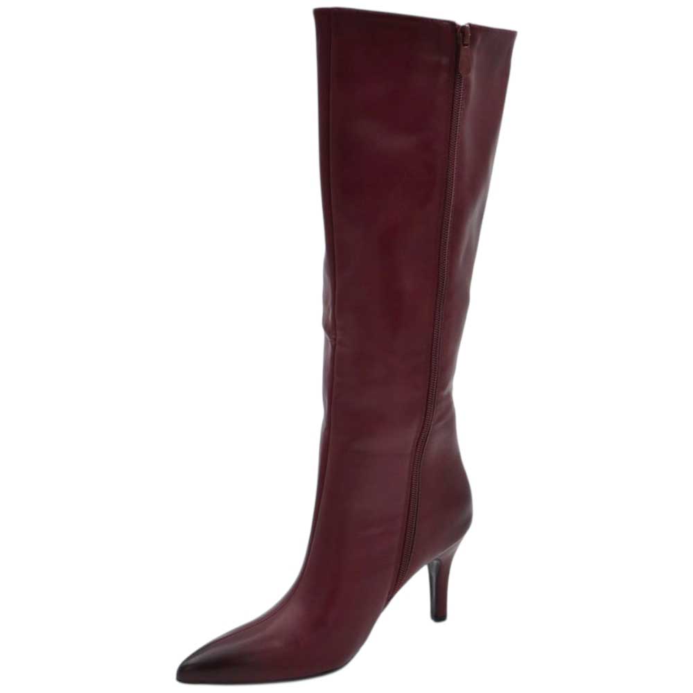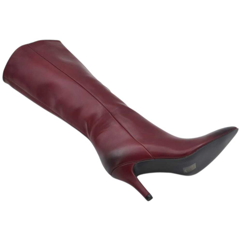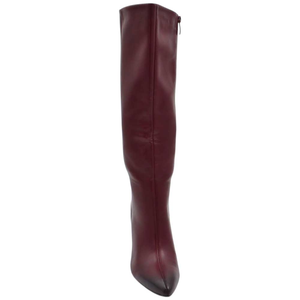 Stivali alti donna al ginocchio in pelle bordeaux a punta tacco a spillo 9 cm zip lunga aderente moda linea Basic