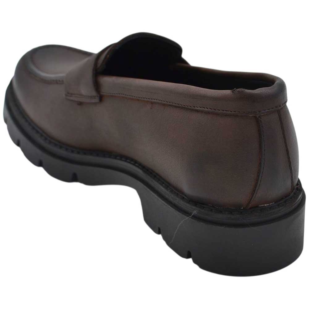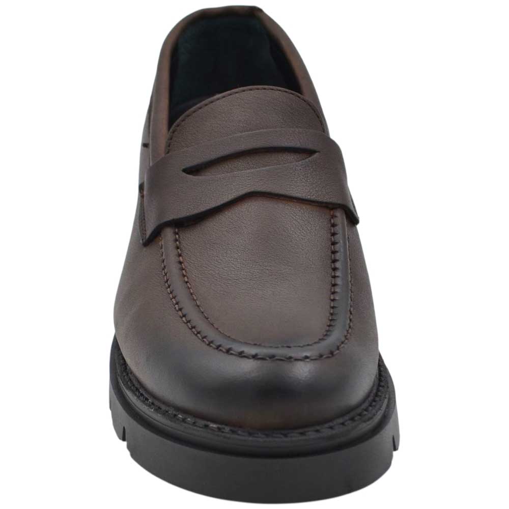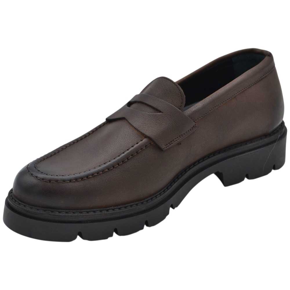 Scarpe uomo mocassino con bendina marrone spazzolato in vera pelle di nappa business fondo gomma roccia alto