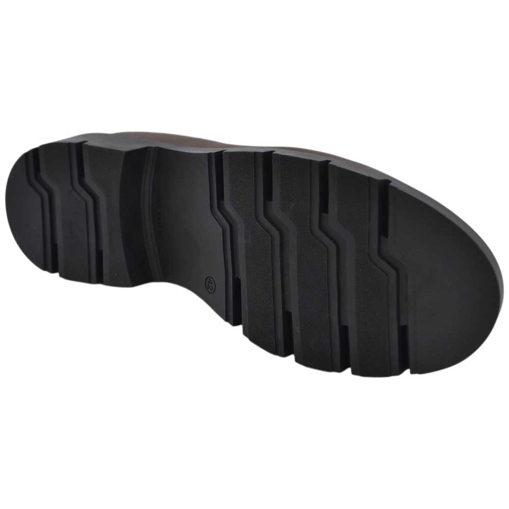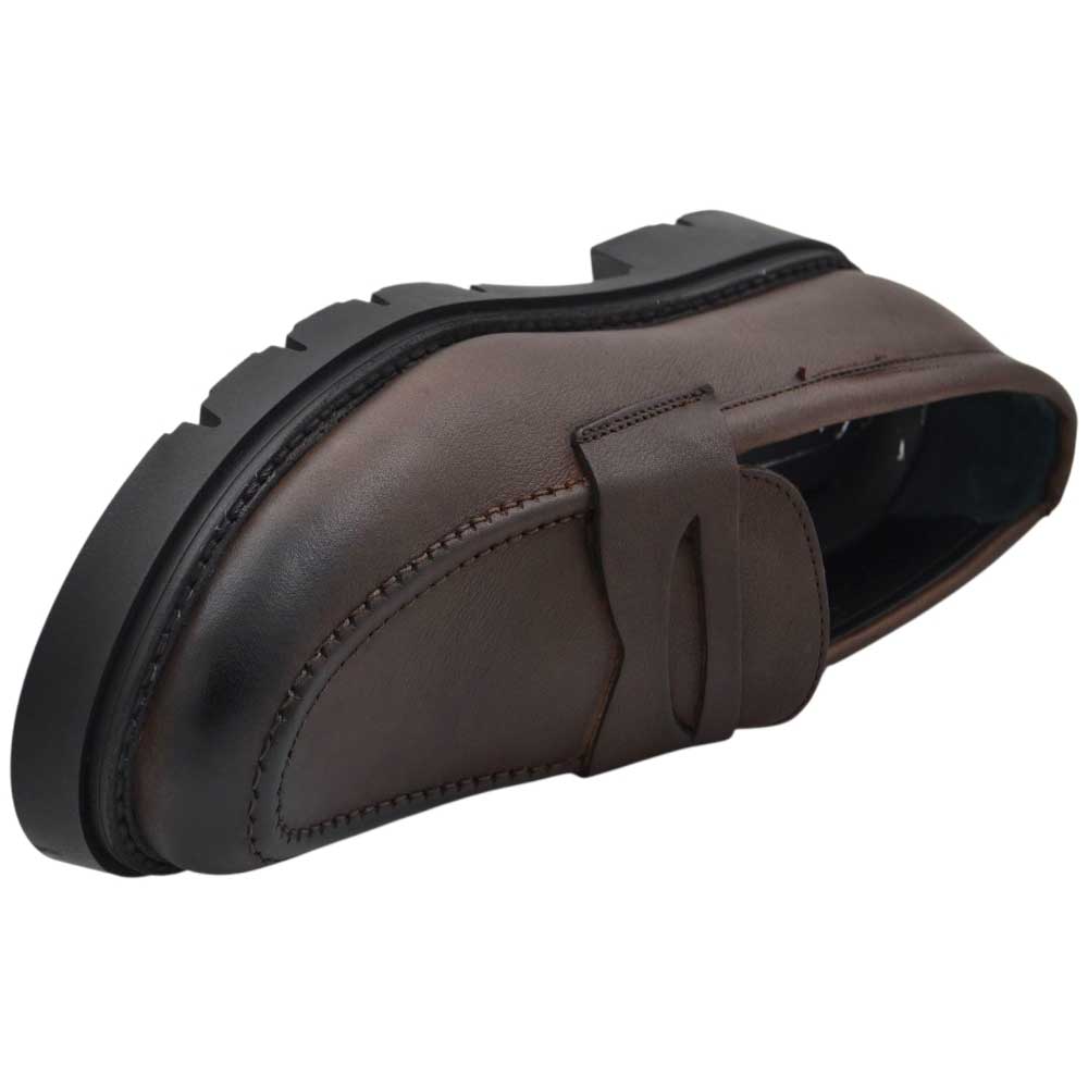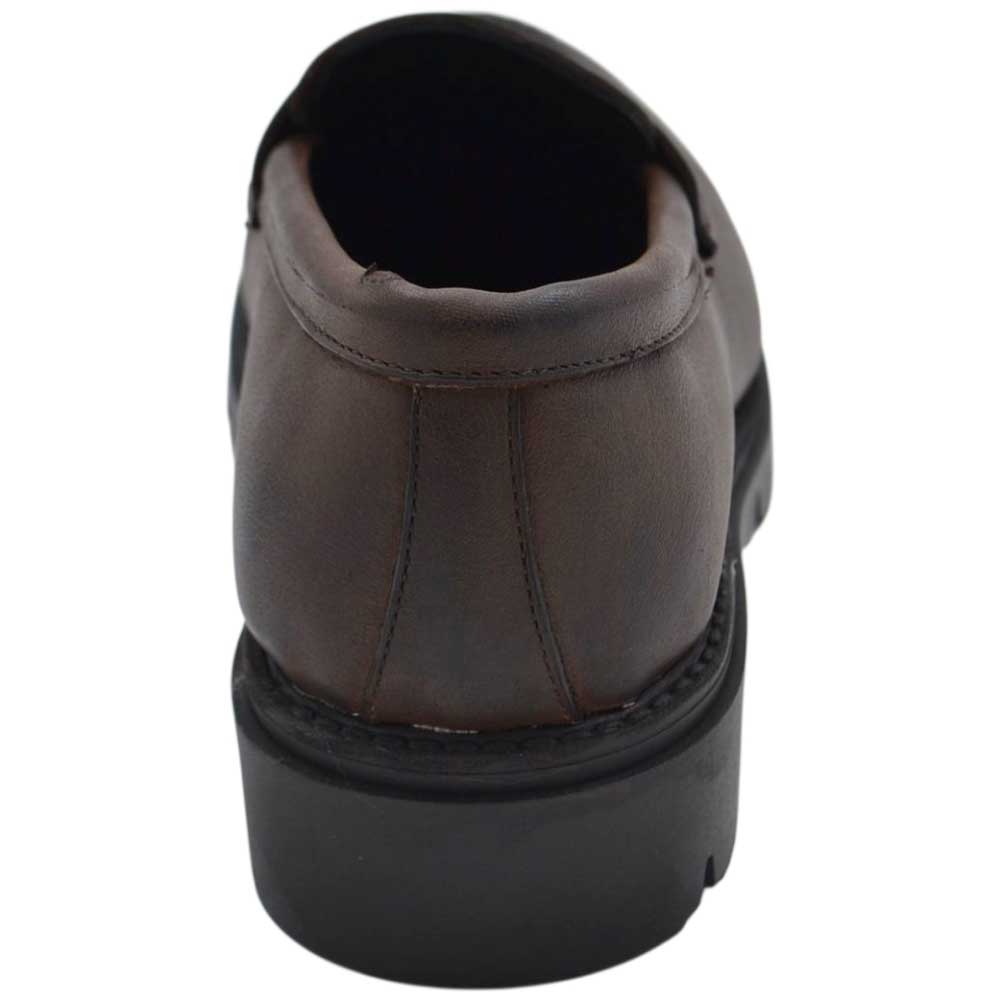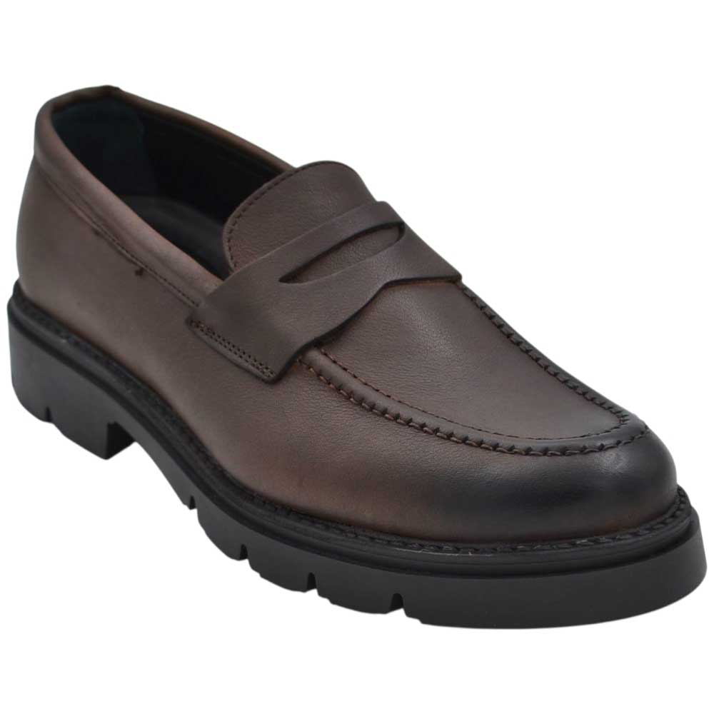 Scarpe uomo mocassino con bendina marrone spazzolato in vera pelle di nappa business fondo gomma roccia alto