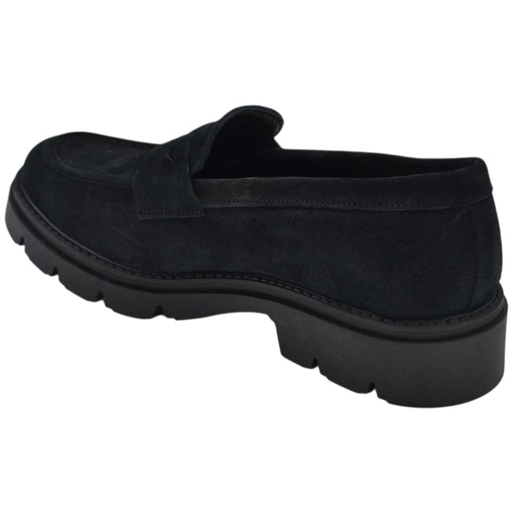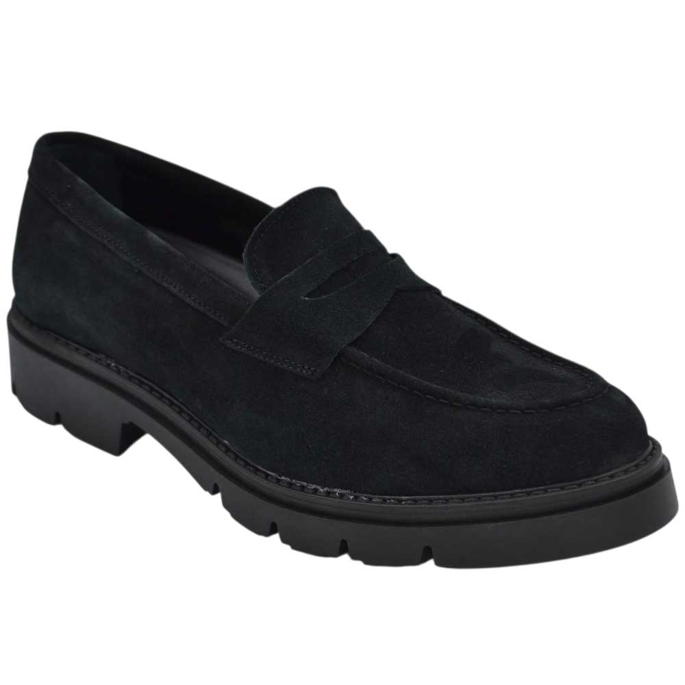 Scarpe uomo mocassino con bendina blu in vera pelle scamosciata business fondo gomma roccia alto