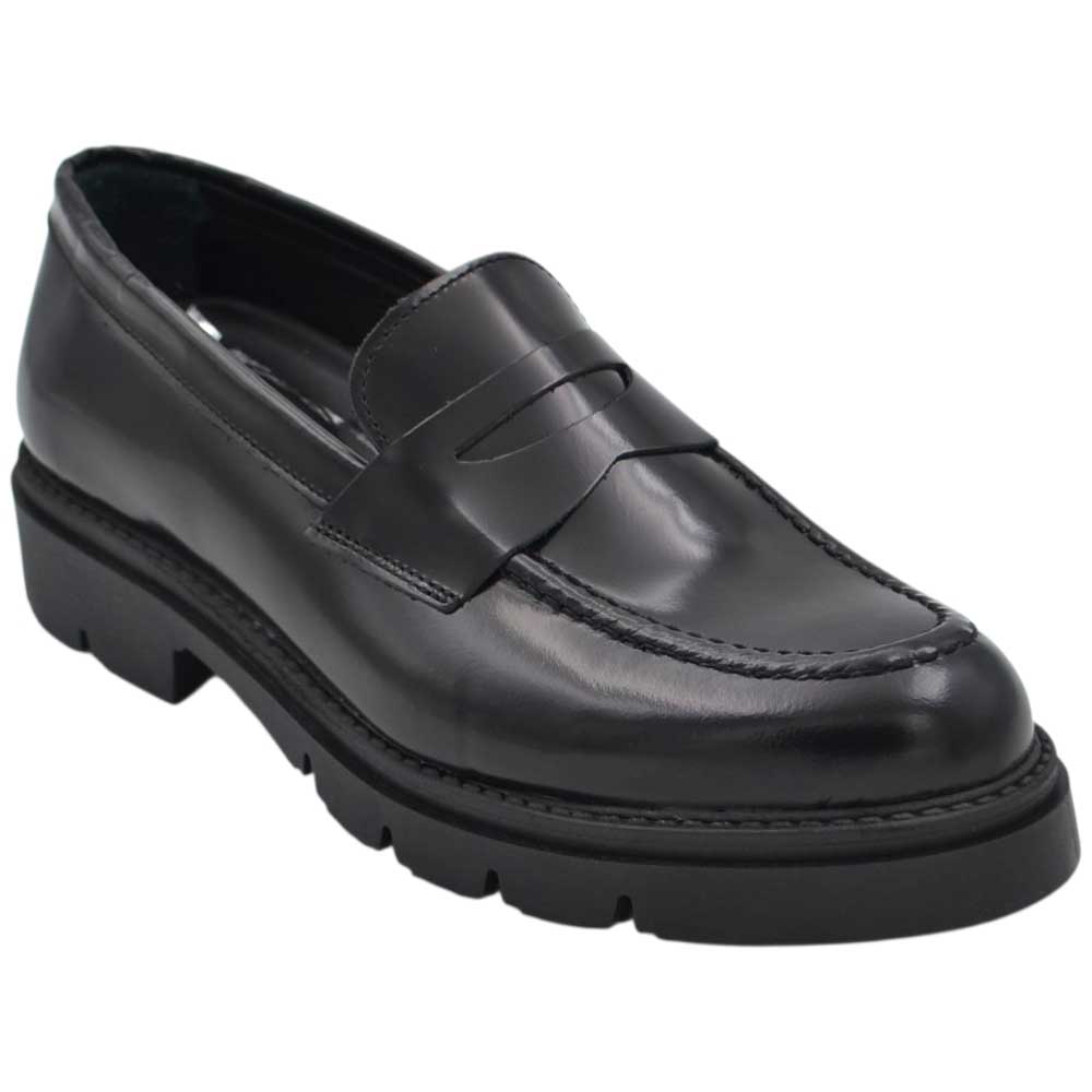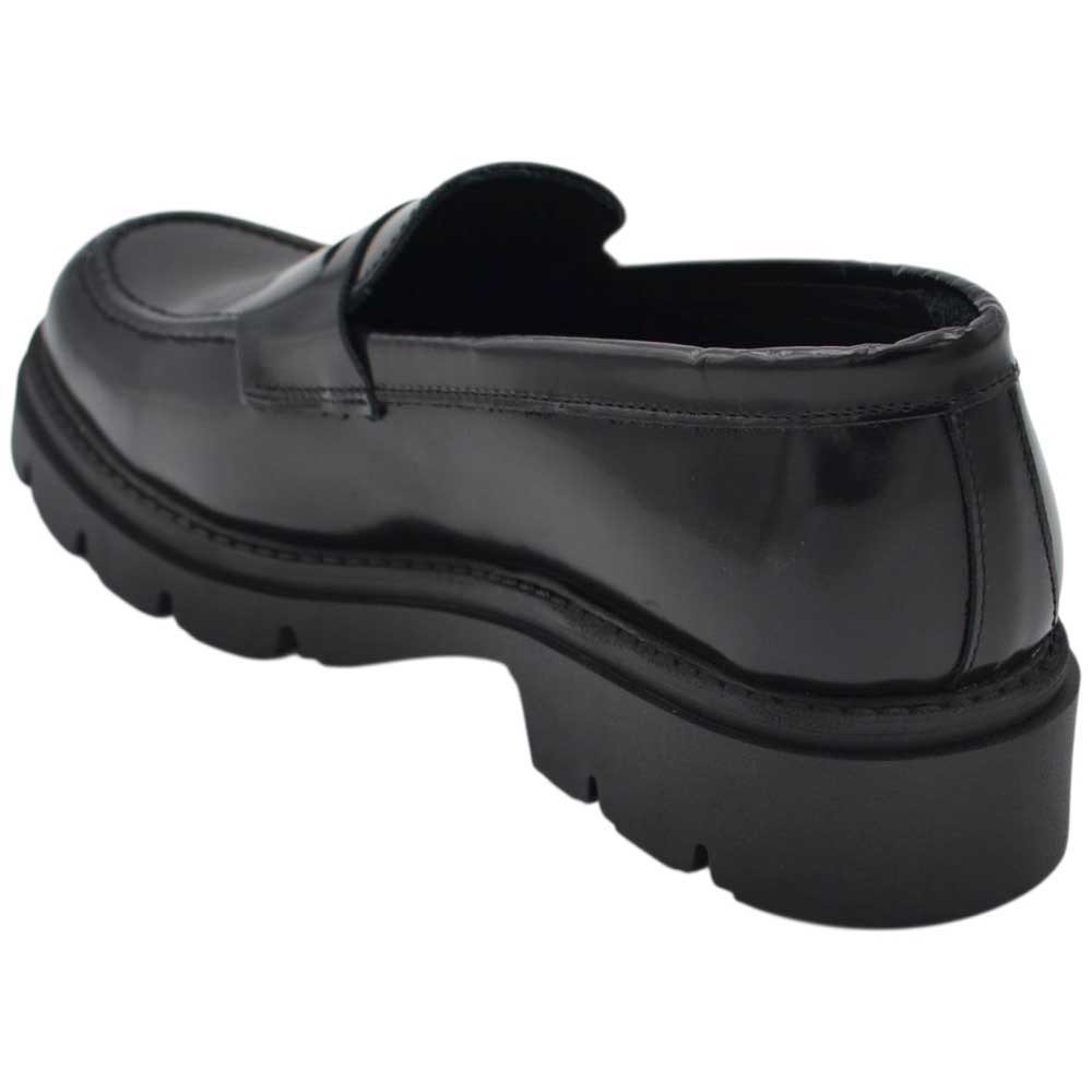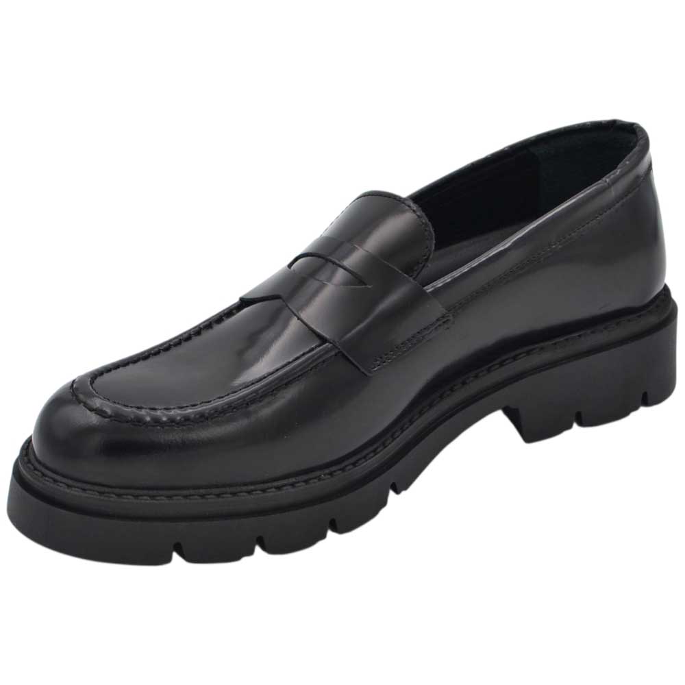 Scarpe uomo mocassino con bendina nero spazzolato in vera pelle abrasivato business fondo gomma roccia alto