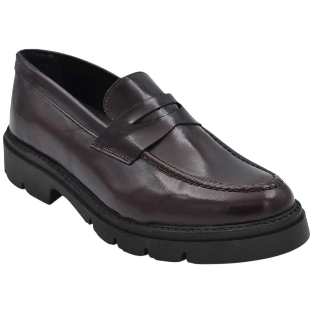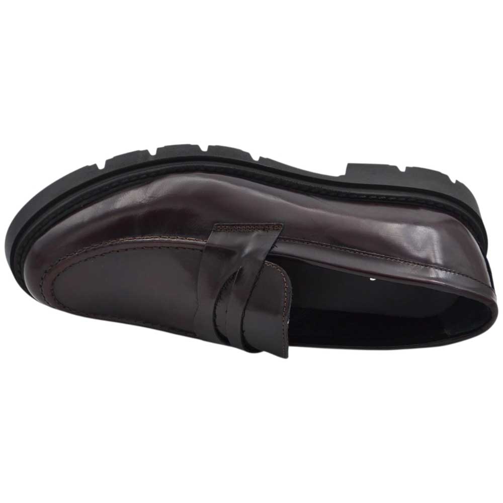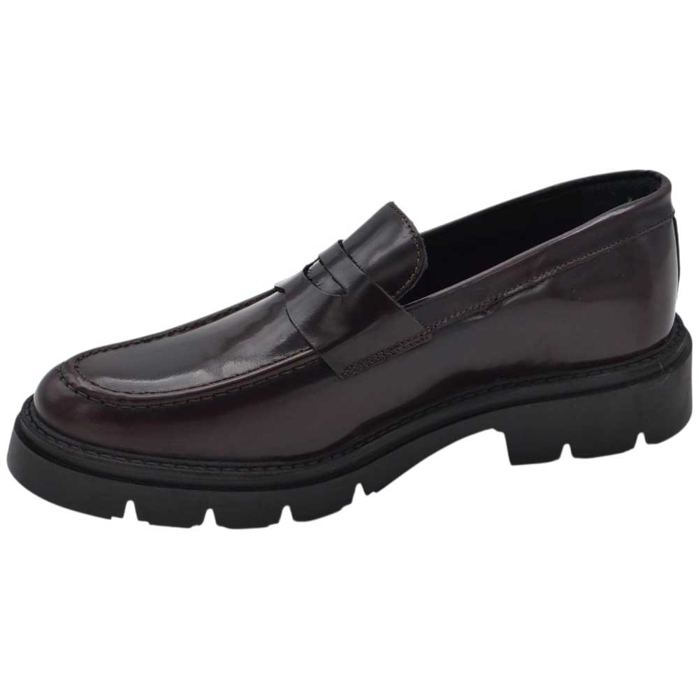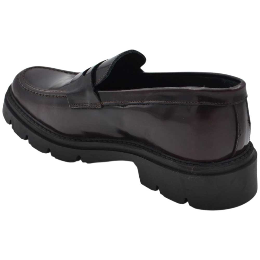 Scarpe uomo mocassino con bendina bordeaux spazzolato in vera pelle abrasivato business fondo gomma roccia alto