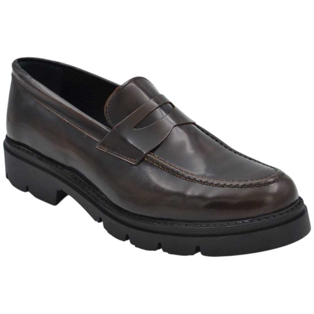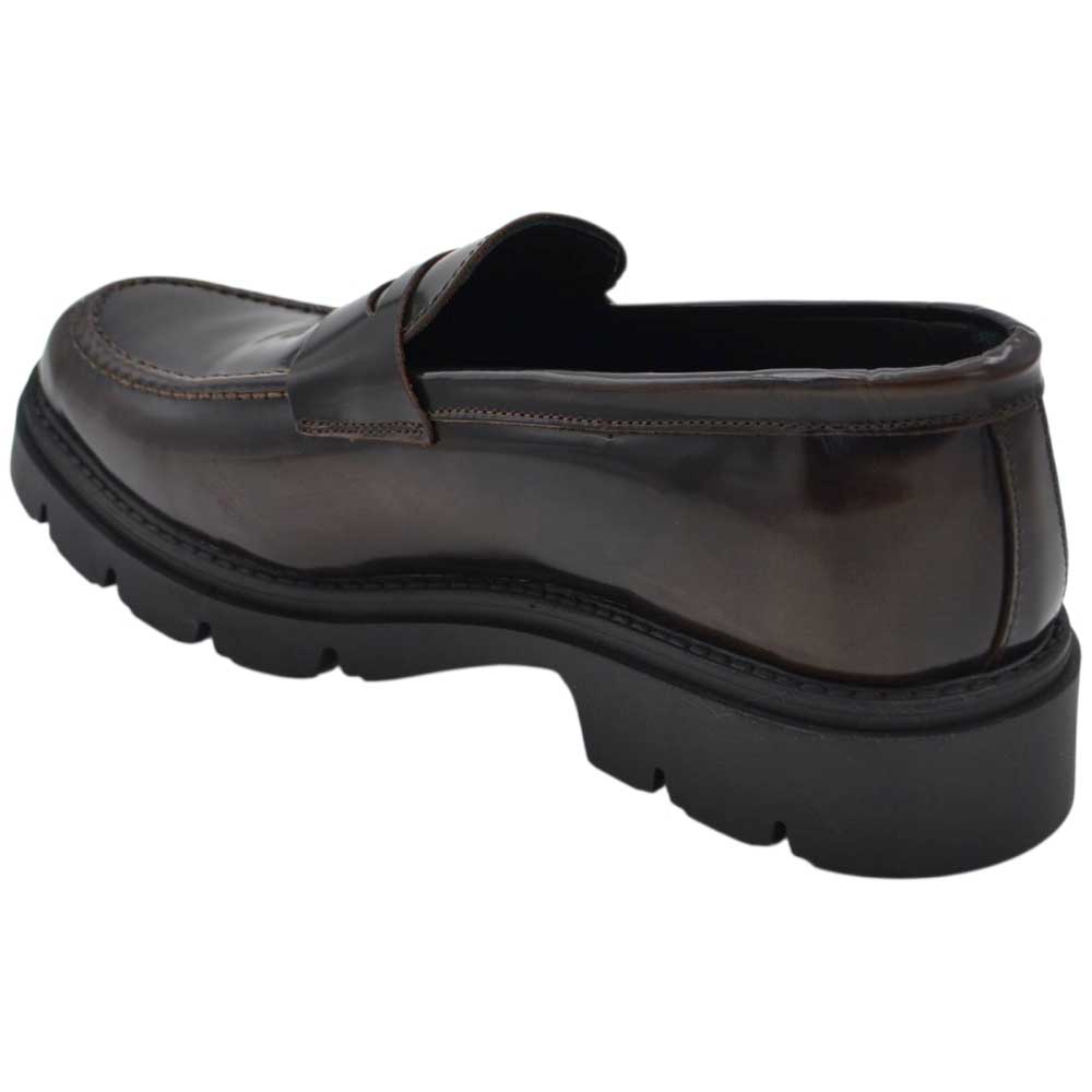 Scarpe uomo mocassino con bendina marrone spazzolato in vera pelle abrasivato business fondo gomma roccia alto