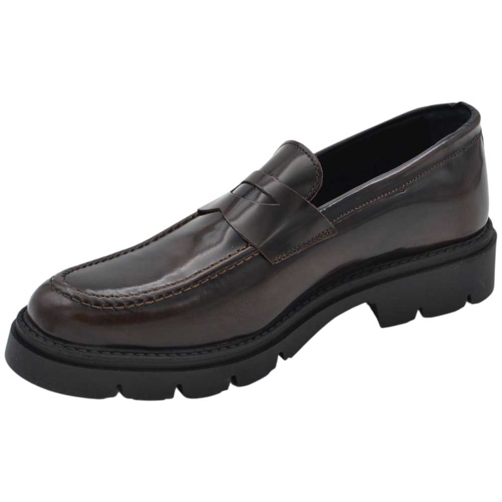 Scarpe mocassino uomo vera pelle abrasiva marrone liscio con fondo cuoio sottile light classico sporti made in Italy.