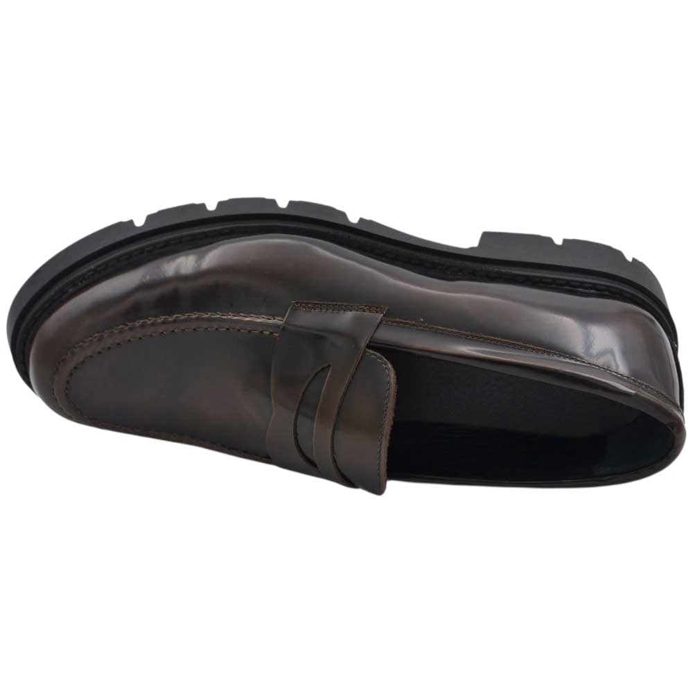 Scarpe uomo mocassini inglese college vera pelle nappa marrone con bendina made in italy fondo gomma.