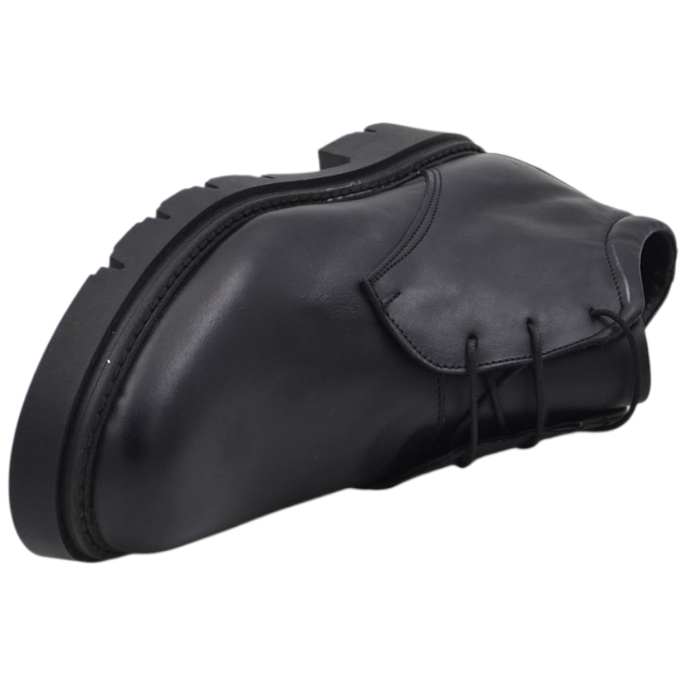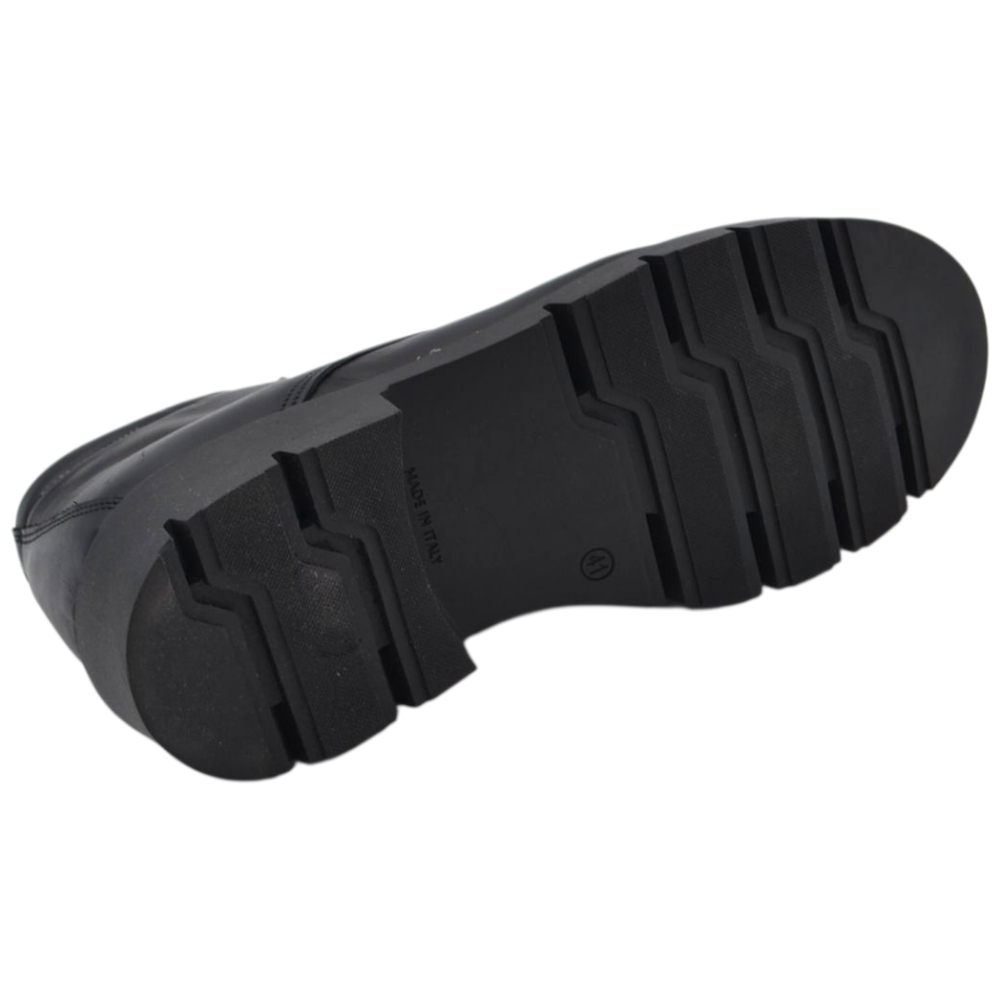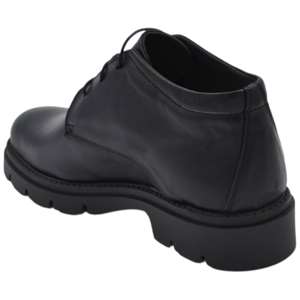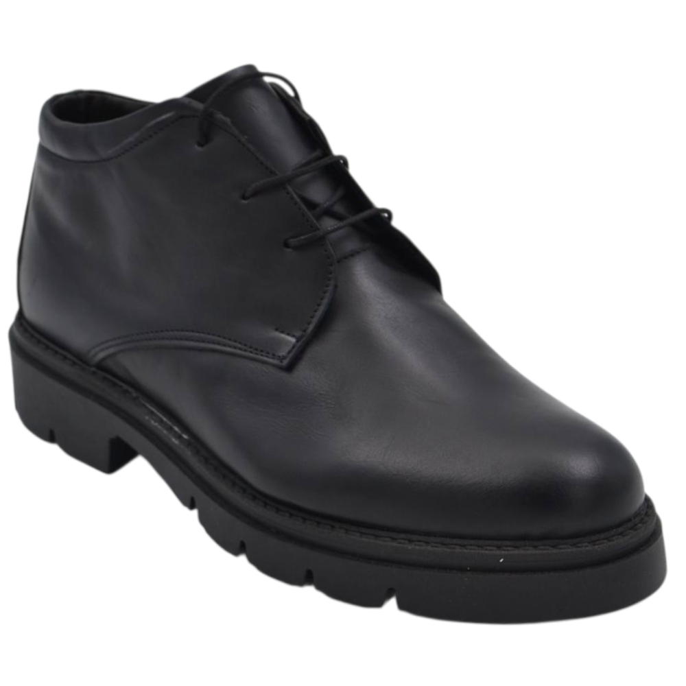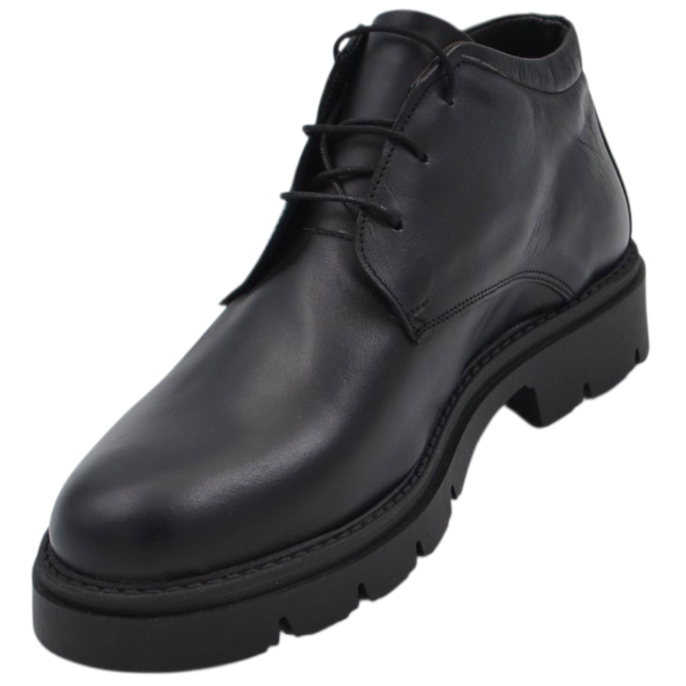Scarpe uomo polacchini nero spazzolato in vera pelle di nappa business fondo gomma roccia alto
