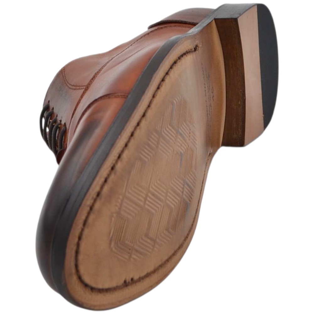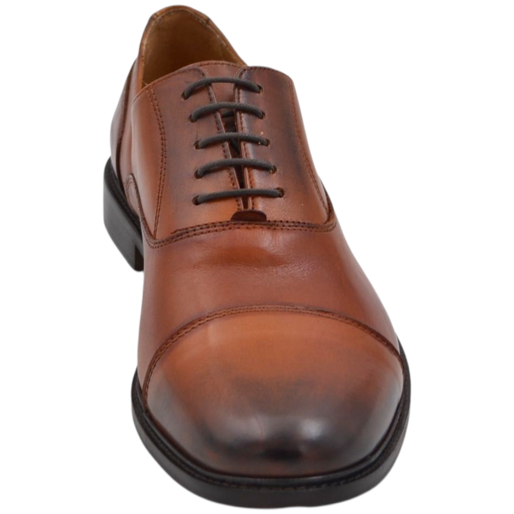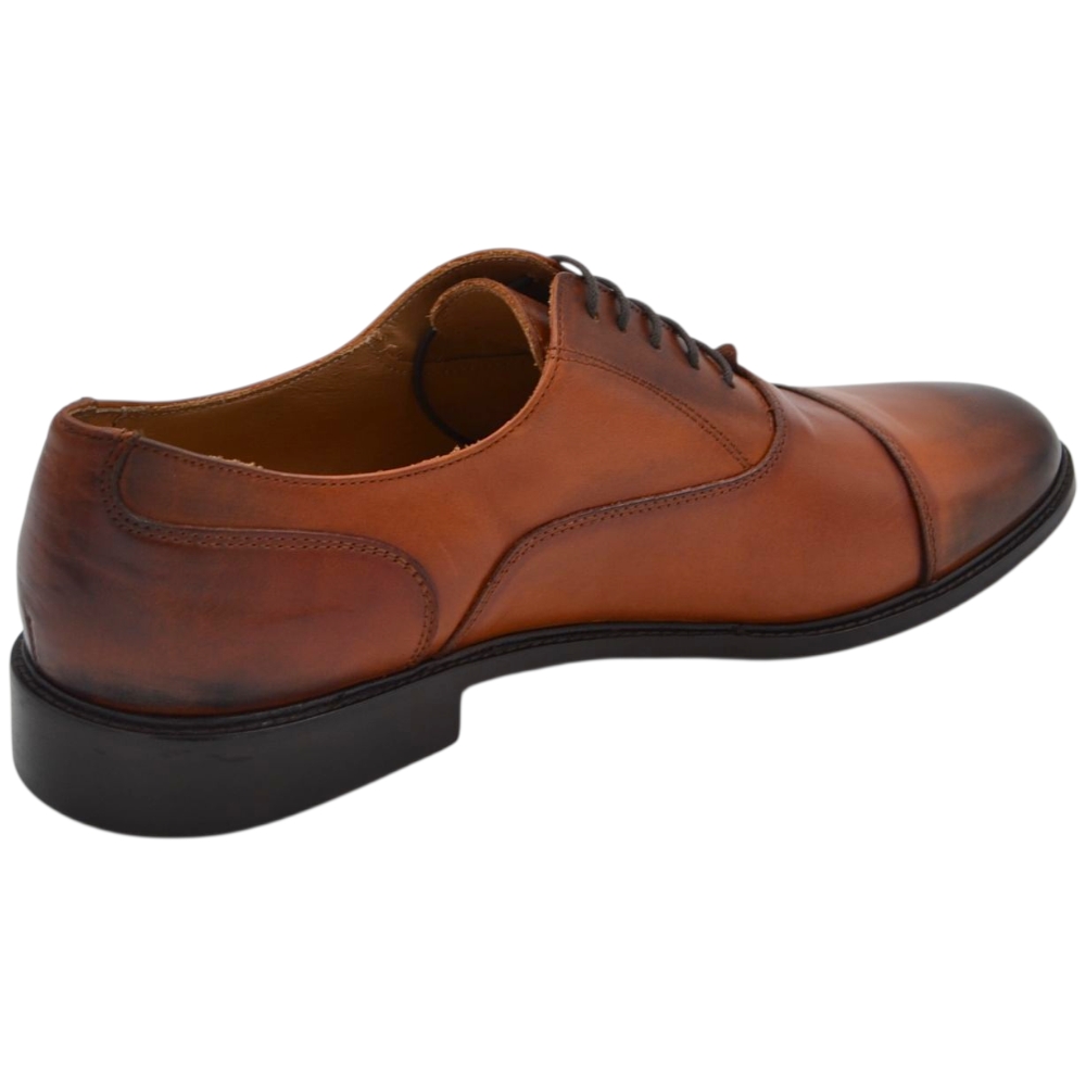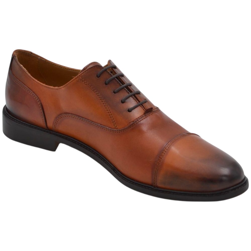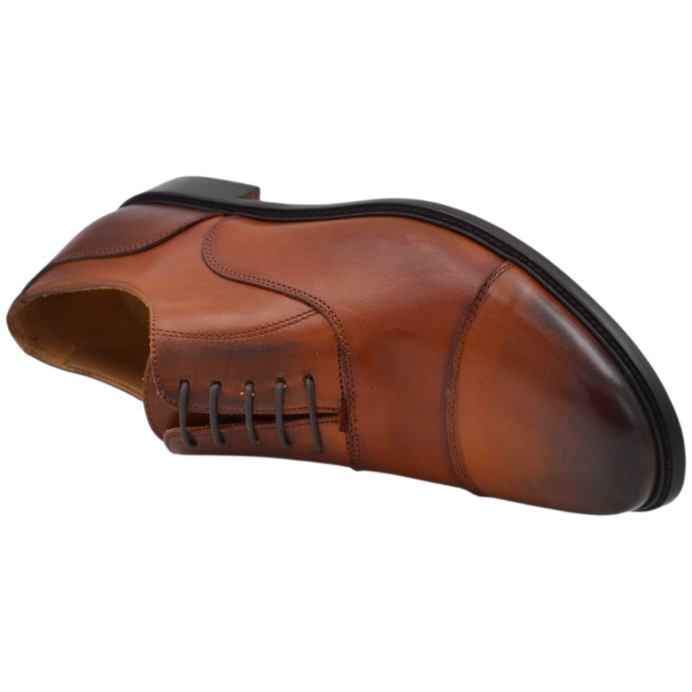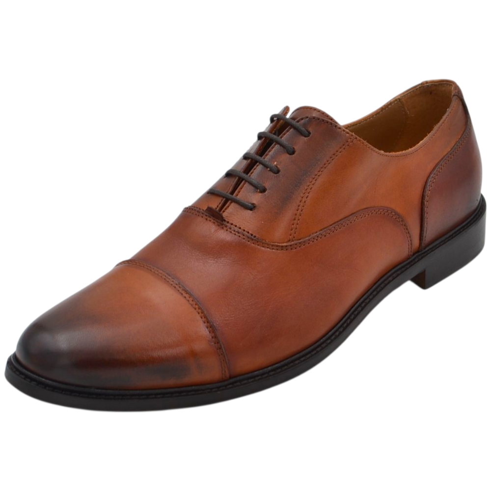 Scarpe uomo classica stringata con fondo cuoio e antiscivolo vera pelle cuoio con effetto vintage mezza punta cerimonia