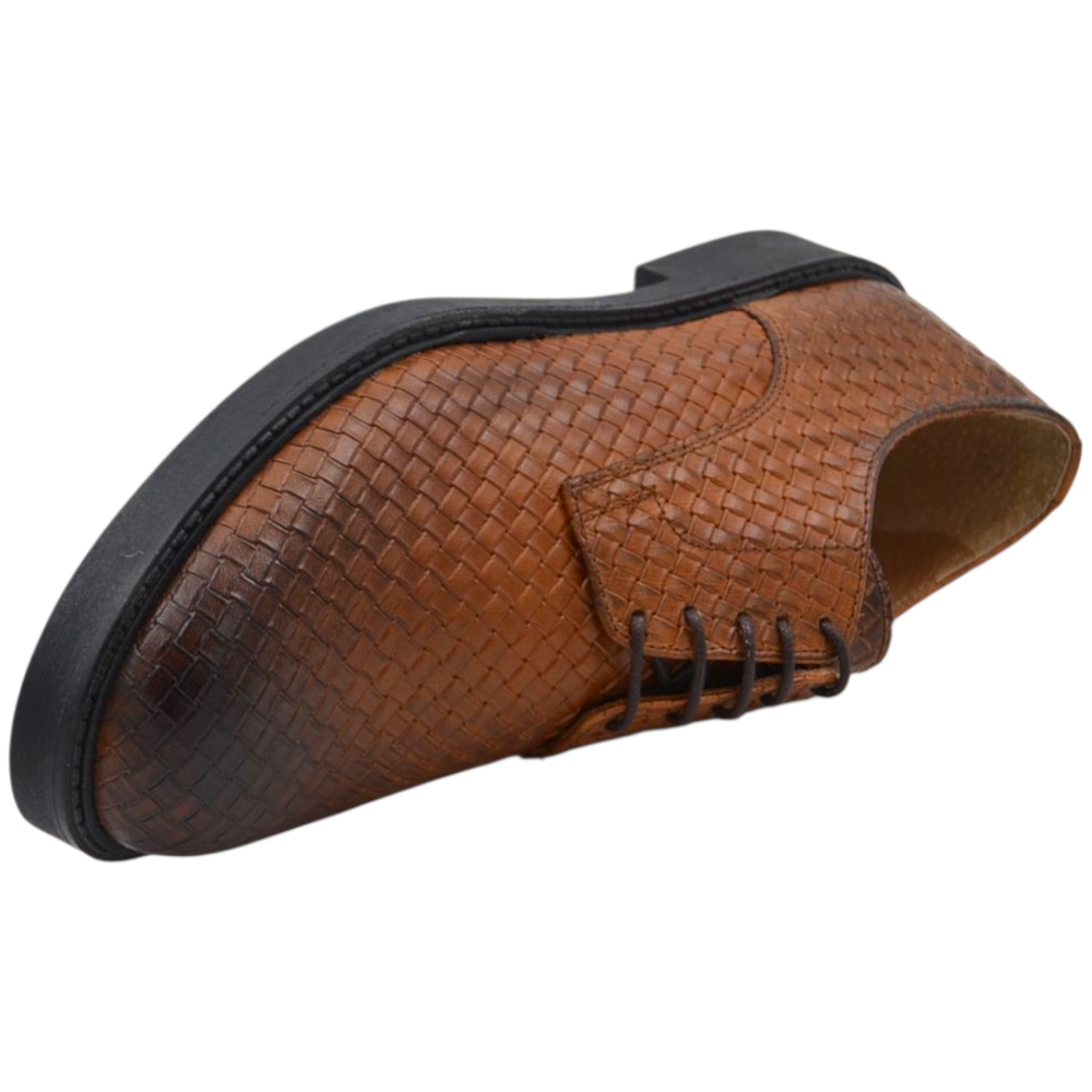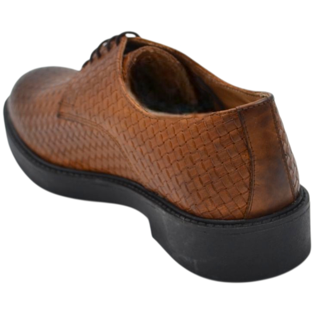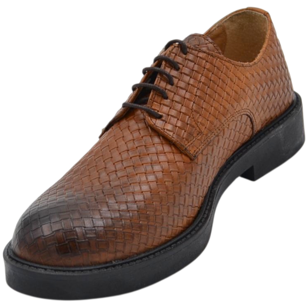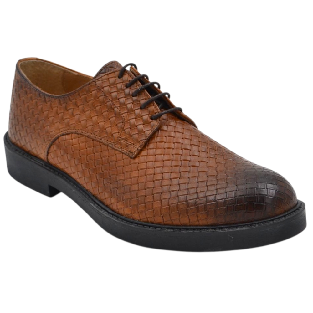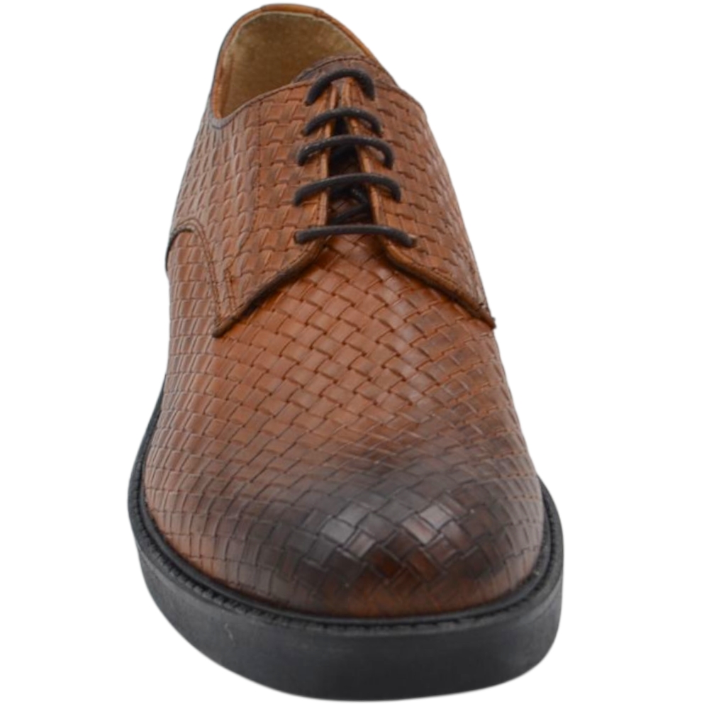 Scarpe uomo derby intrecciato stampato cuoio in vera pelle made in italy business fondo gomma alto