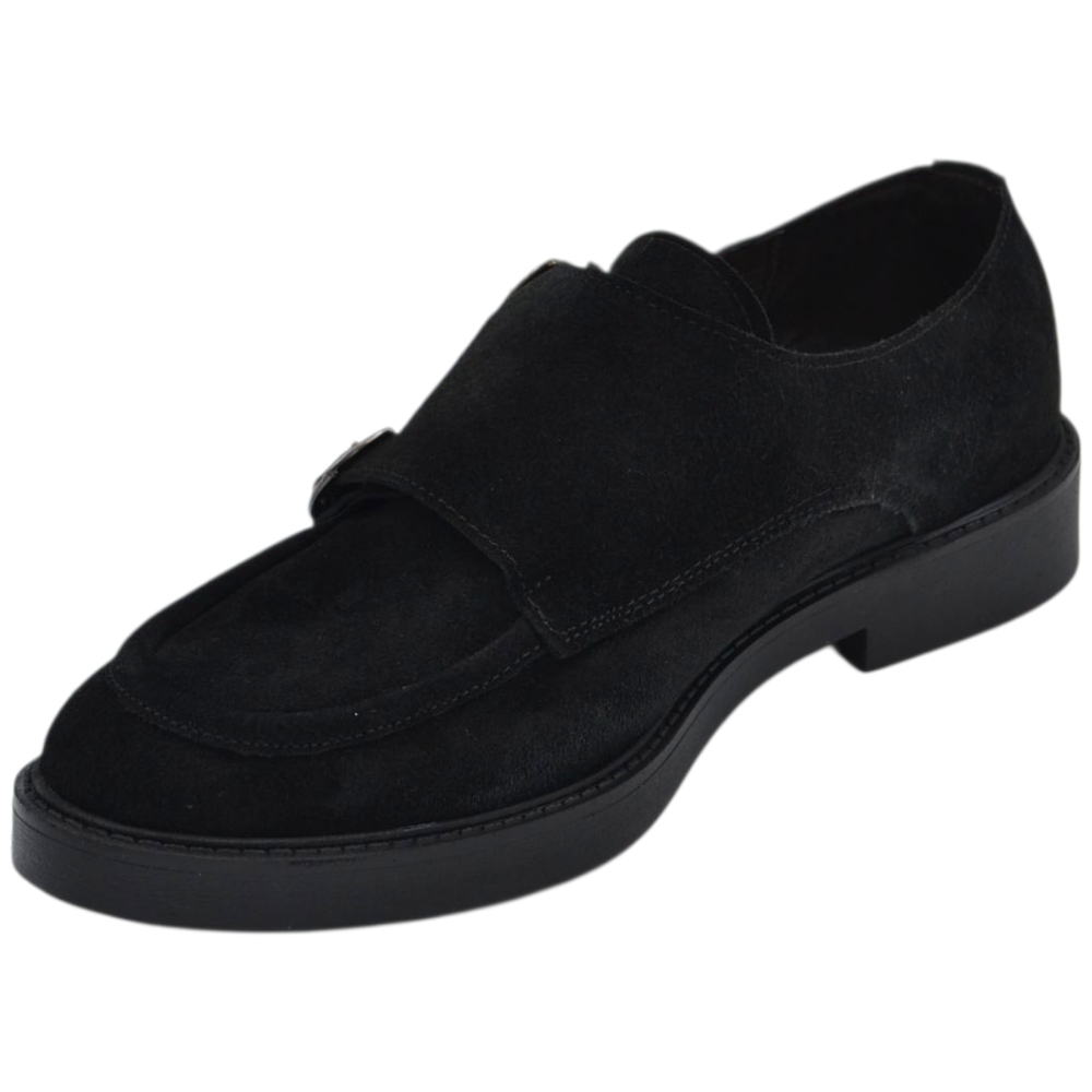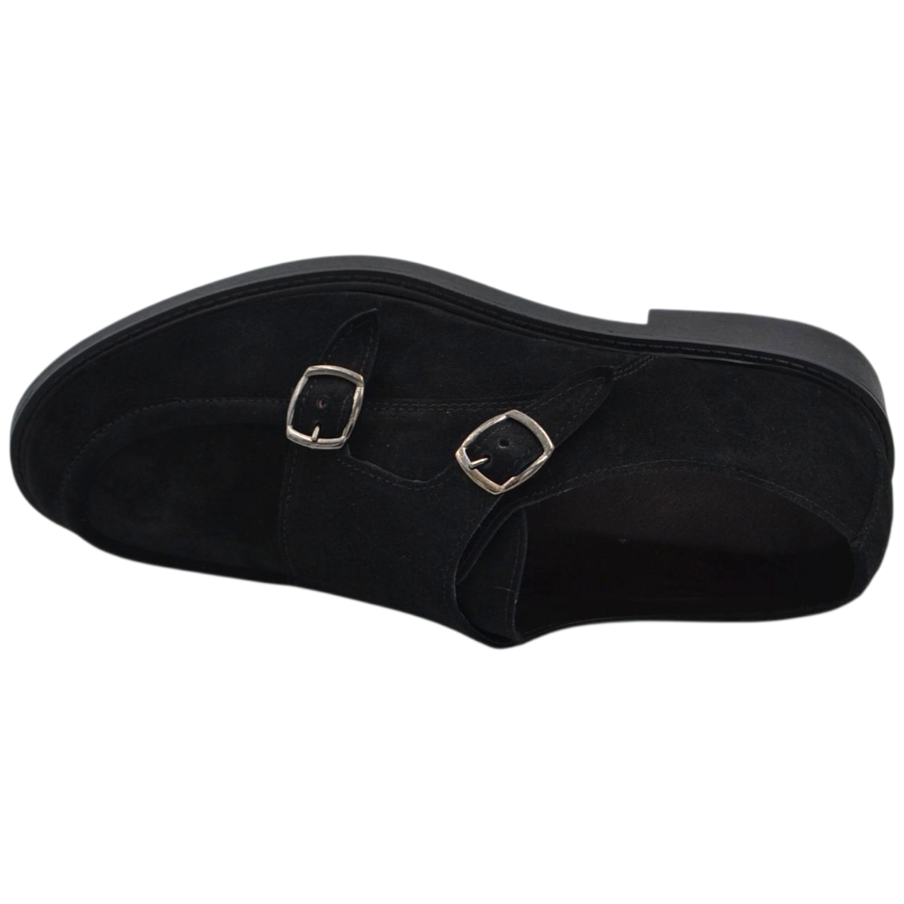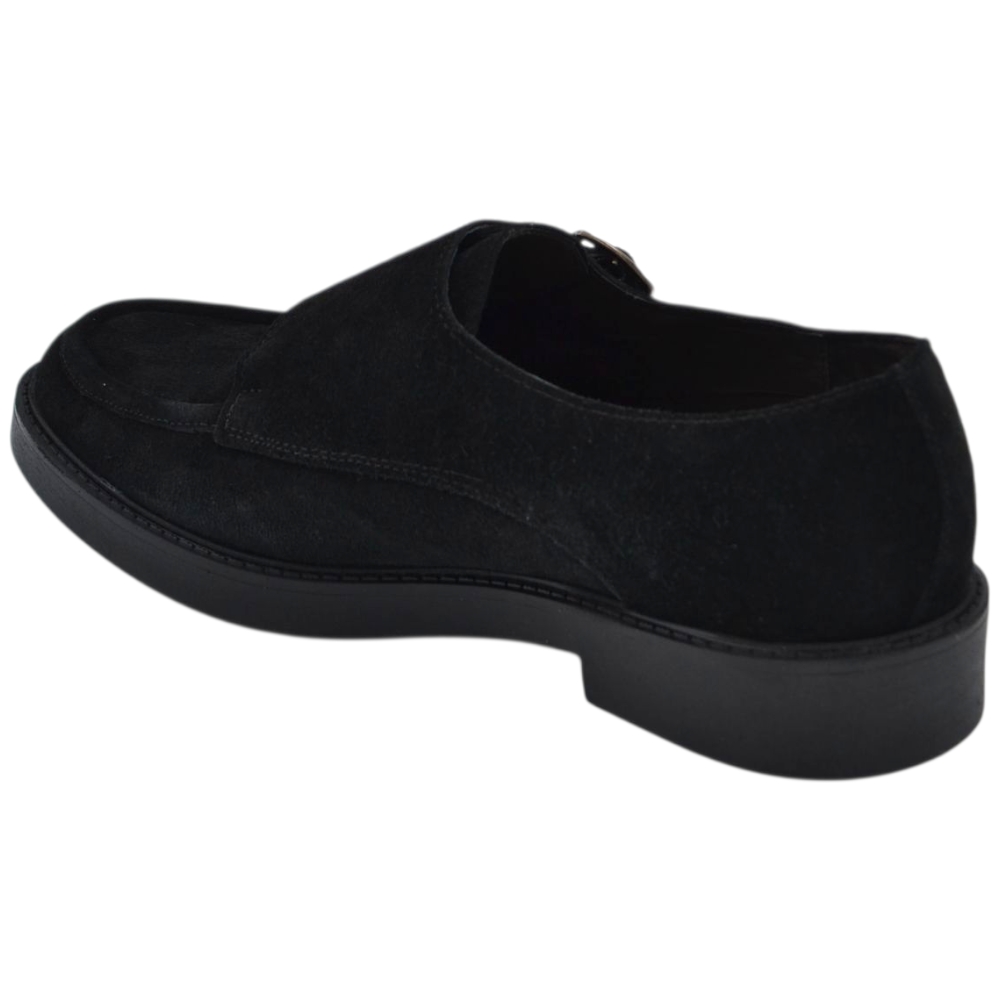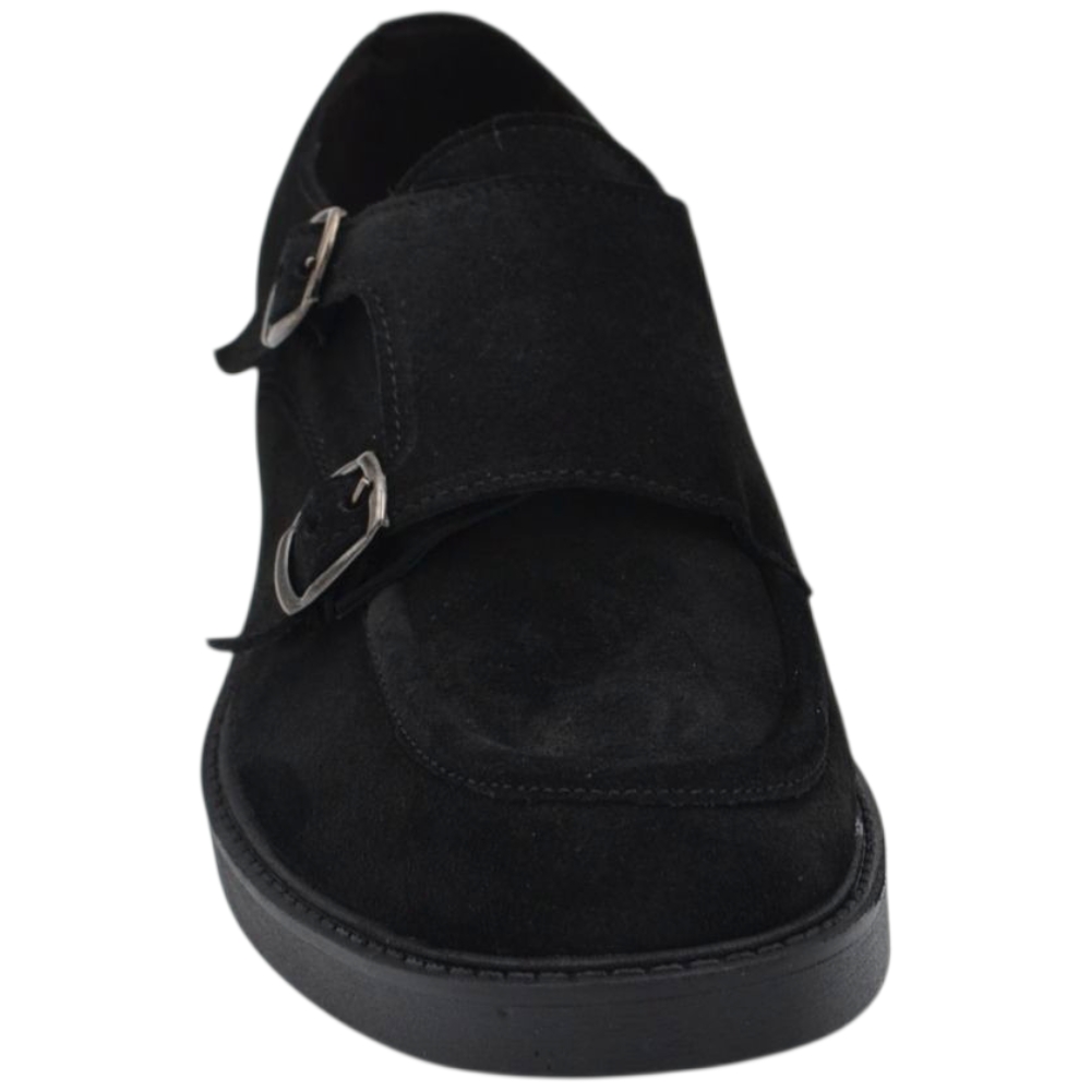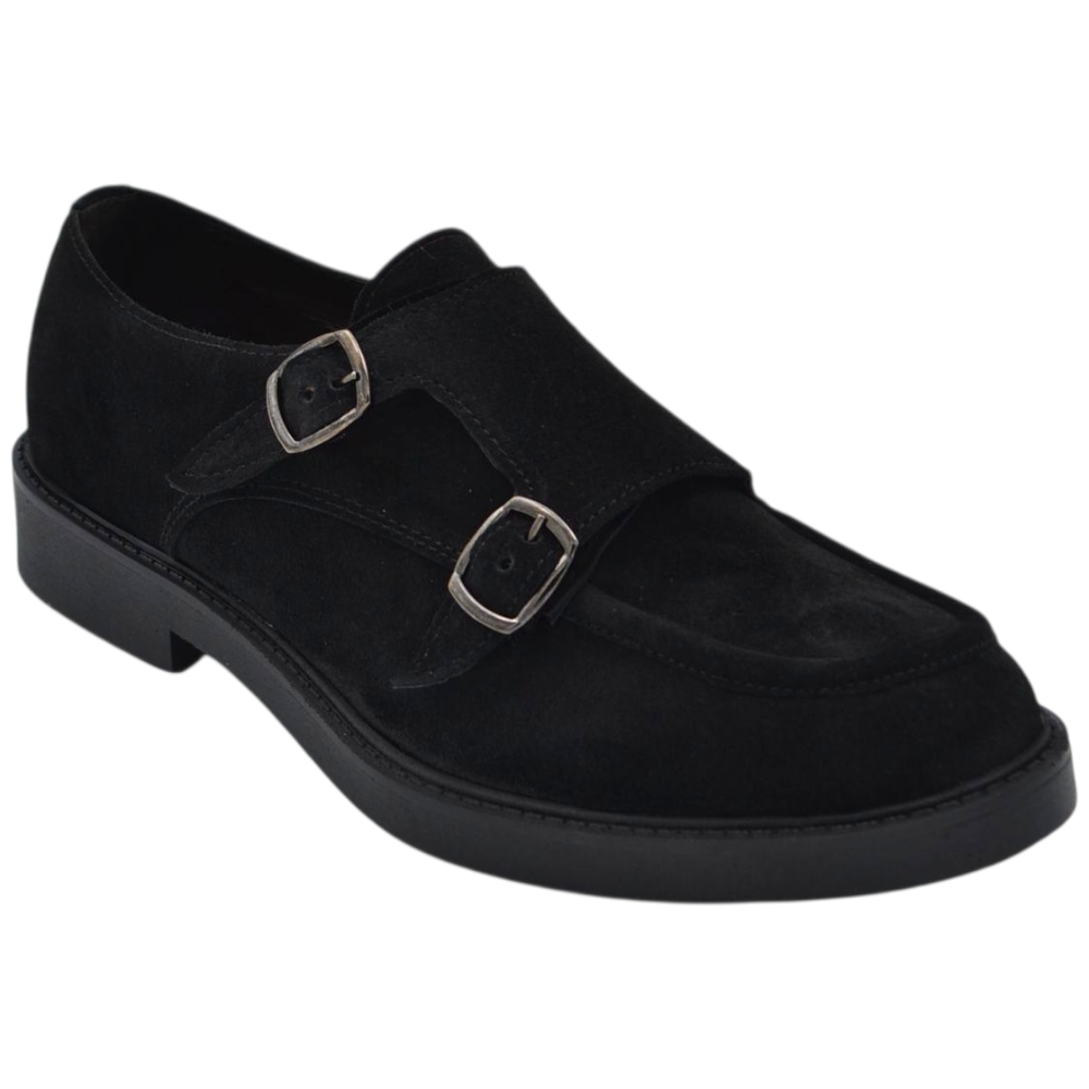 Scarpe uomo doppia fibbia eleganti in vera pelle camoscio nero con bordo fondo ultralight antiscivolo handmade in italy.