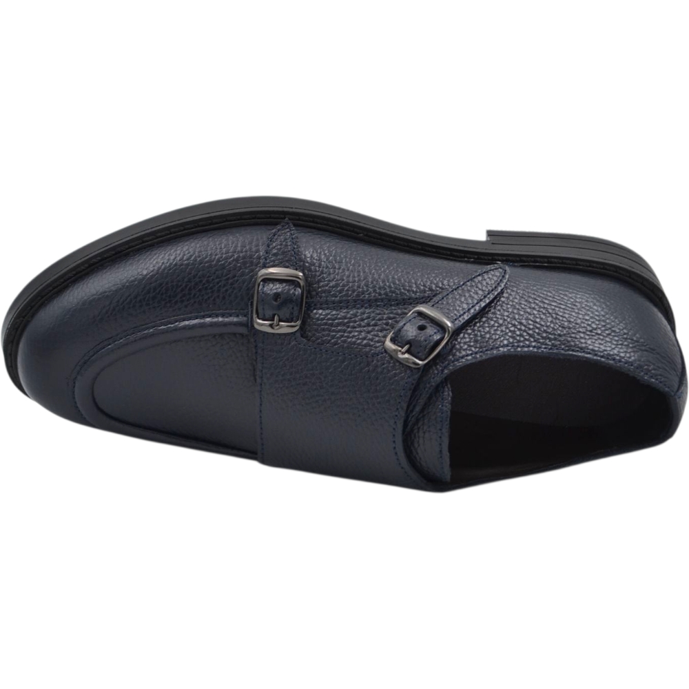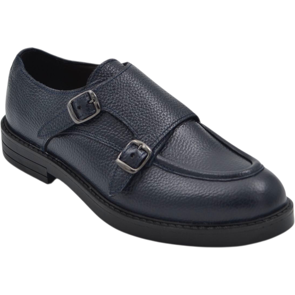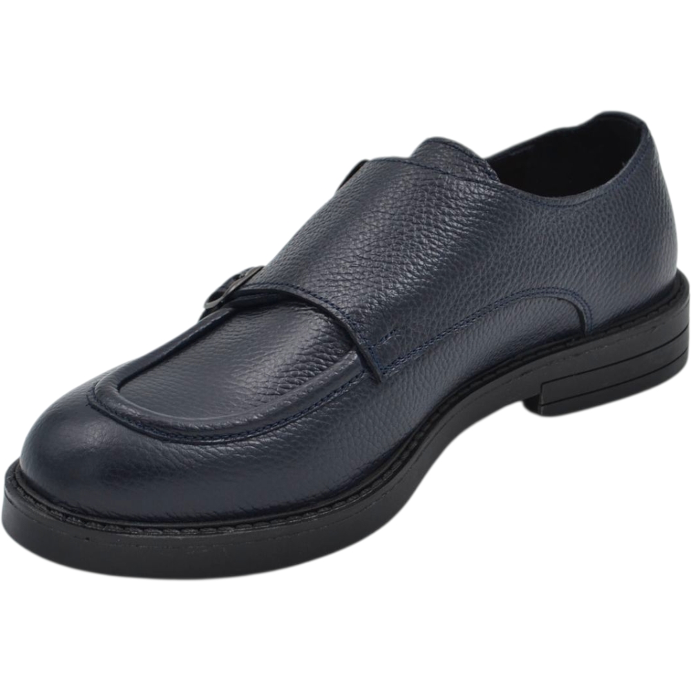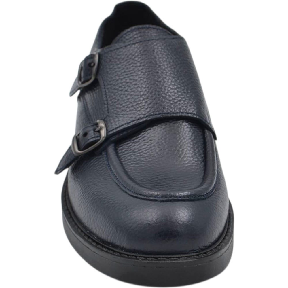 Scarpe uomo doppia fibbia eleganti in vera pelle bottolata blu fondo gomma businessman handmade in italy