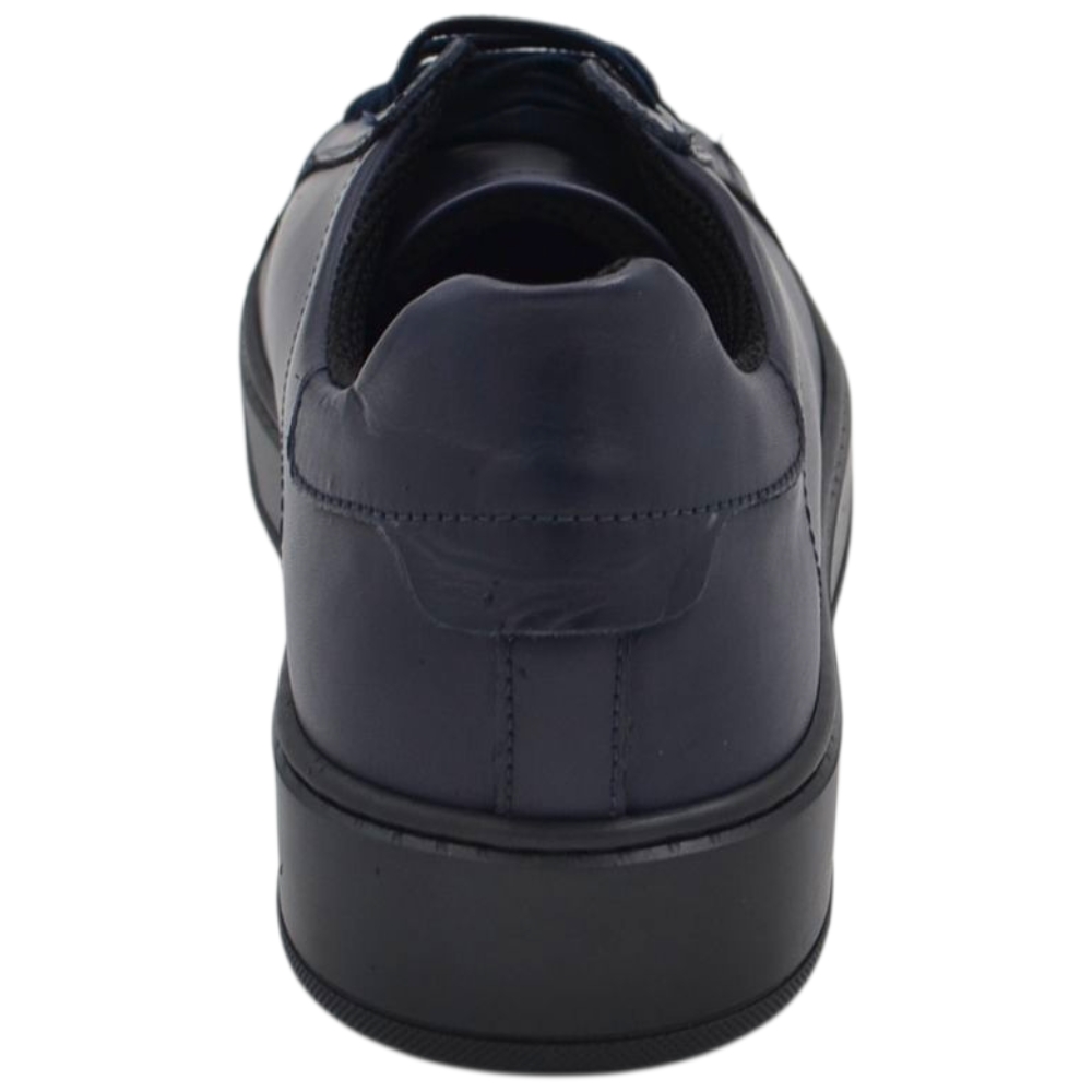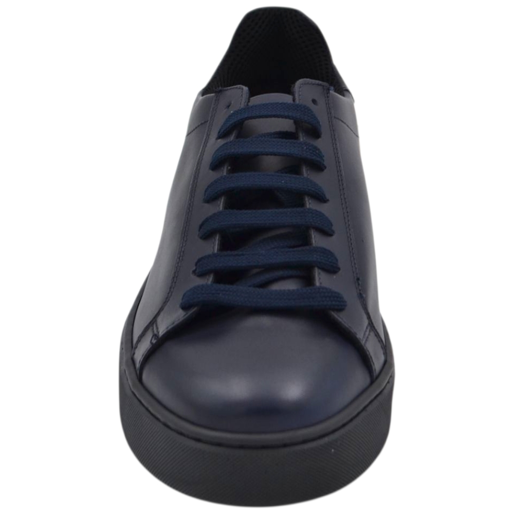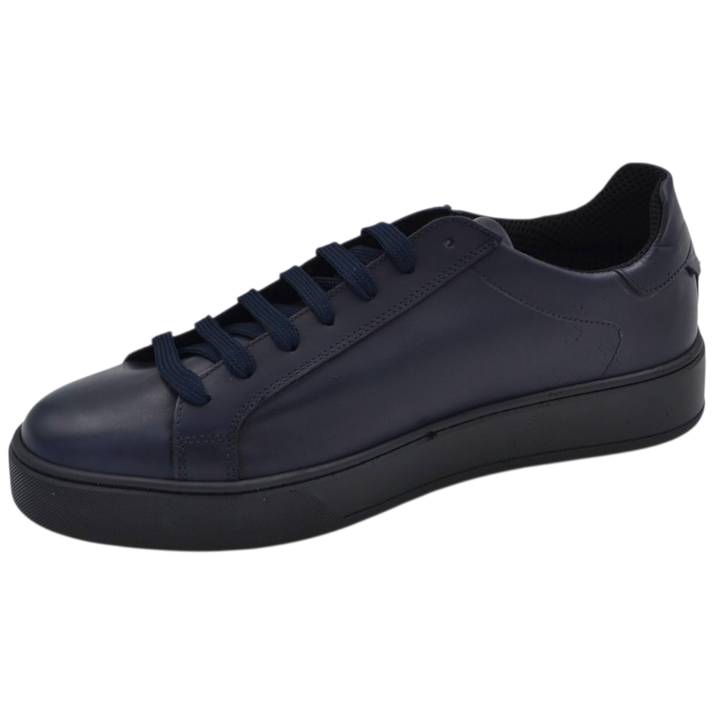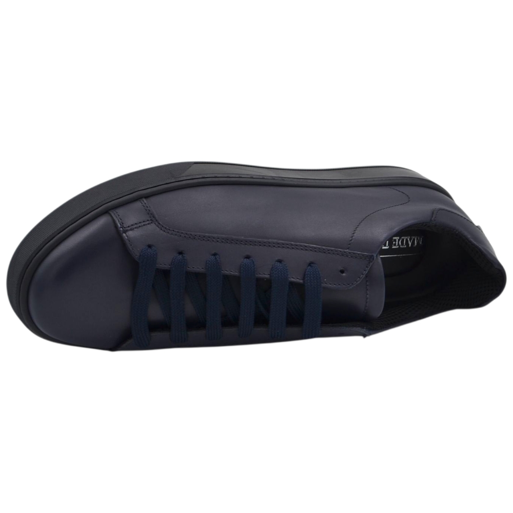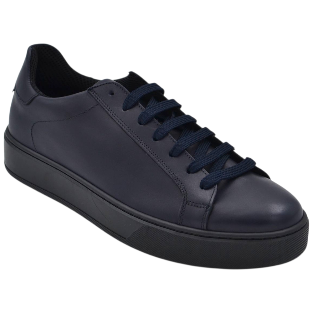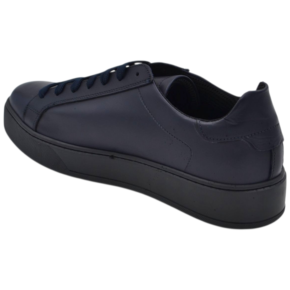 Sneakers uomo bassa in vera pelle vitello liscia blu con fondo alto in gomma eva lacci casual made in Italy